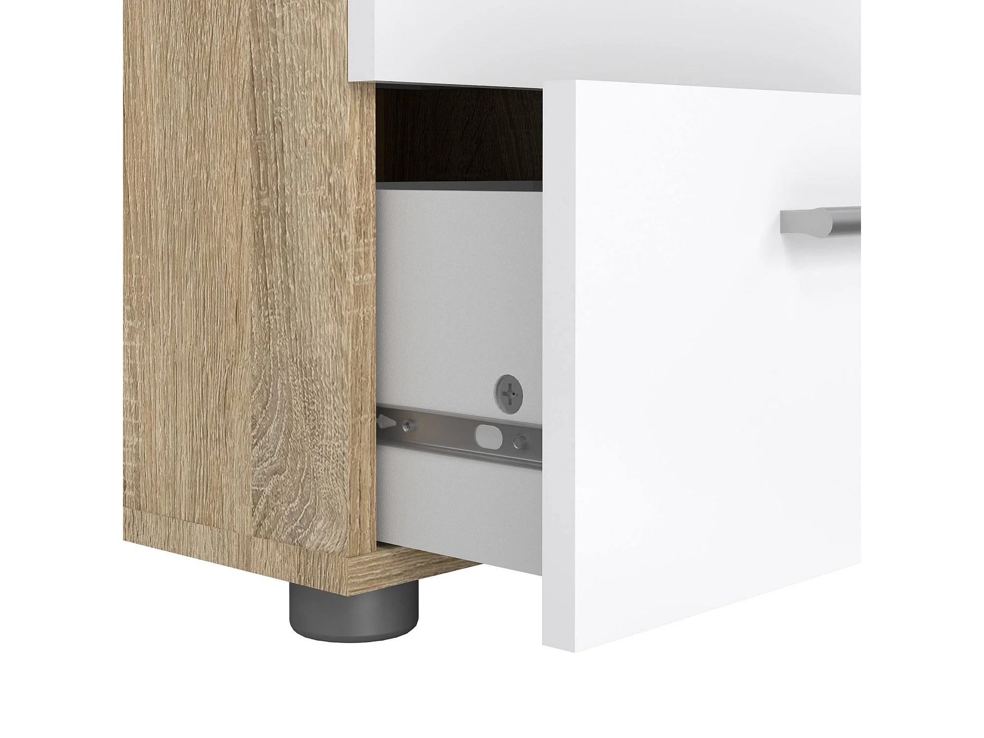 Druotol nachtkastje, Lage ladekast, Nachtkastje, Bedplank, 40x40 h42 cm, Eiken en Wit