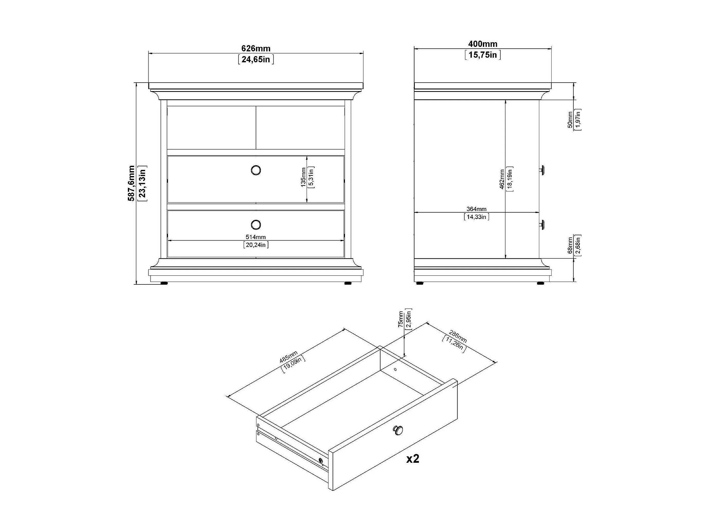 Dsabell nachtkastje, Lage ladekast, Nachtkastje, Bedplank, 63x40 h59 cm, Grijs