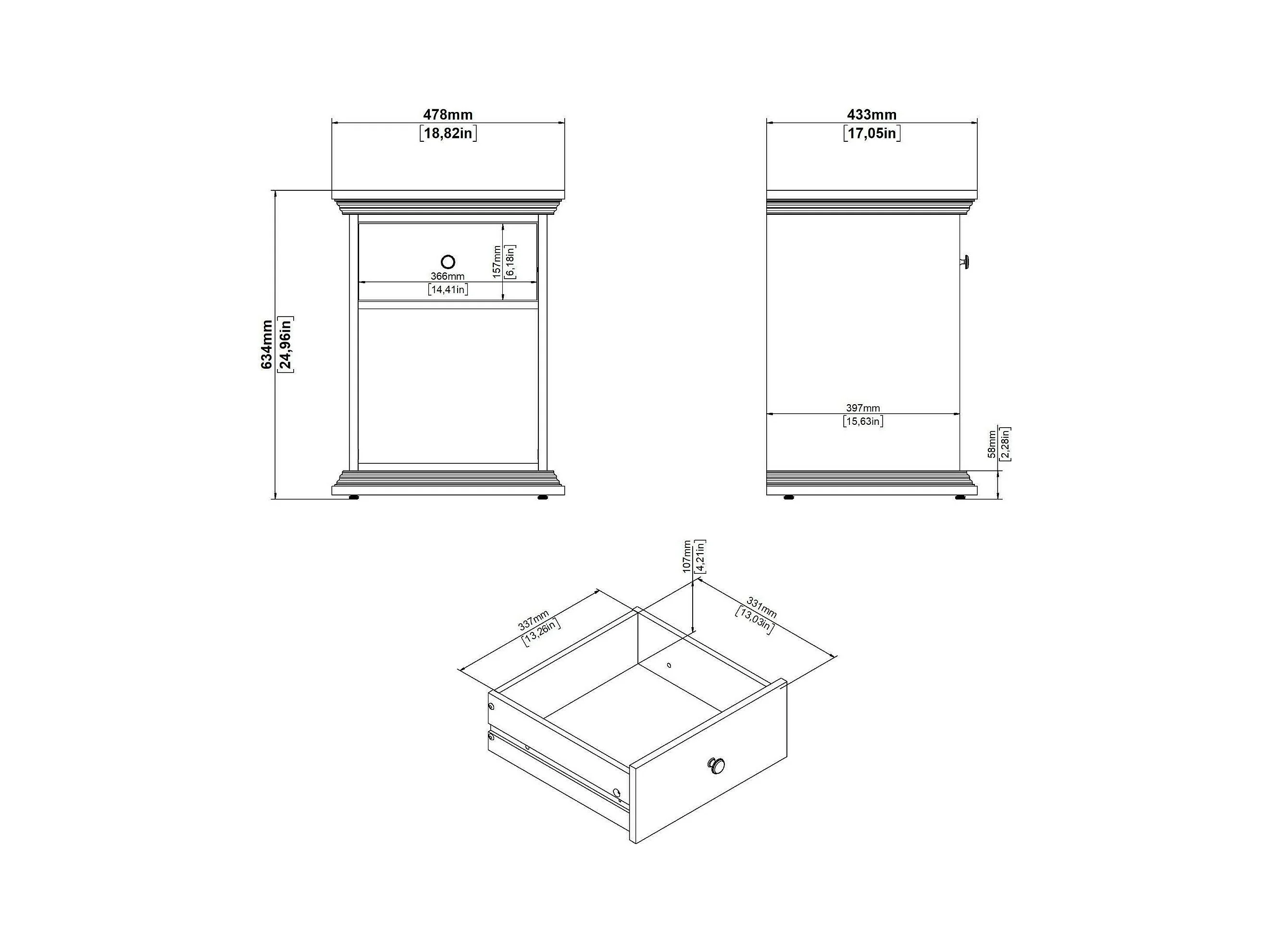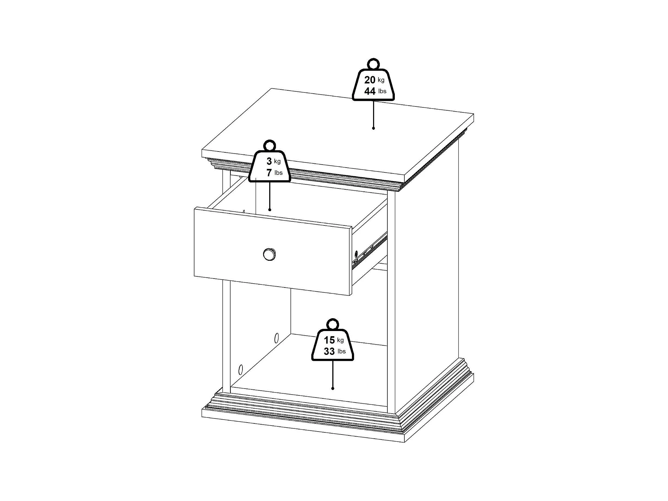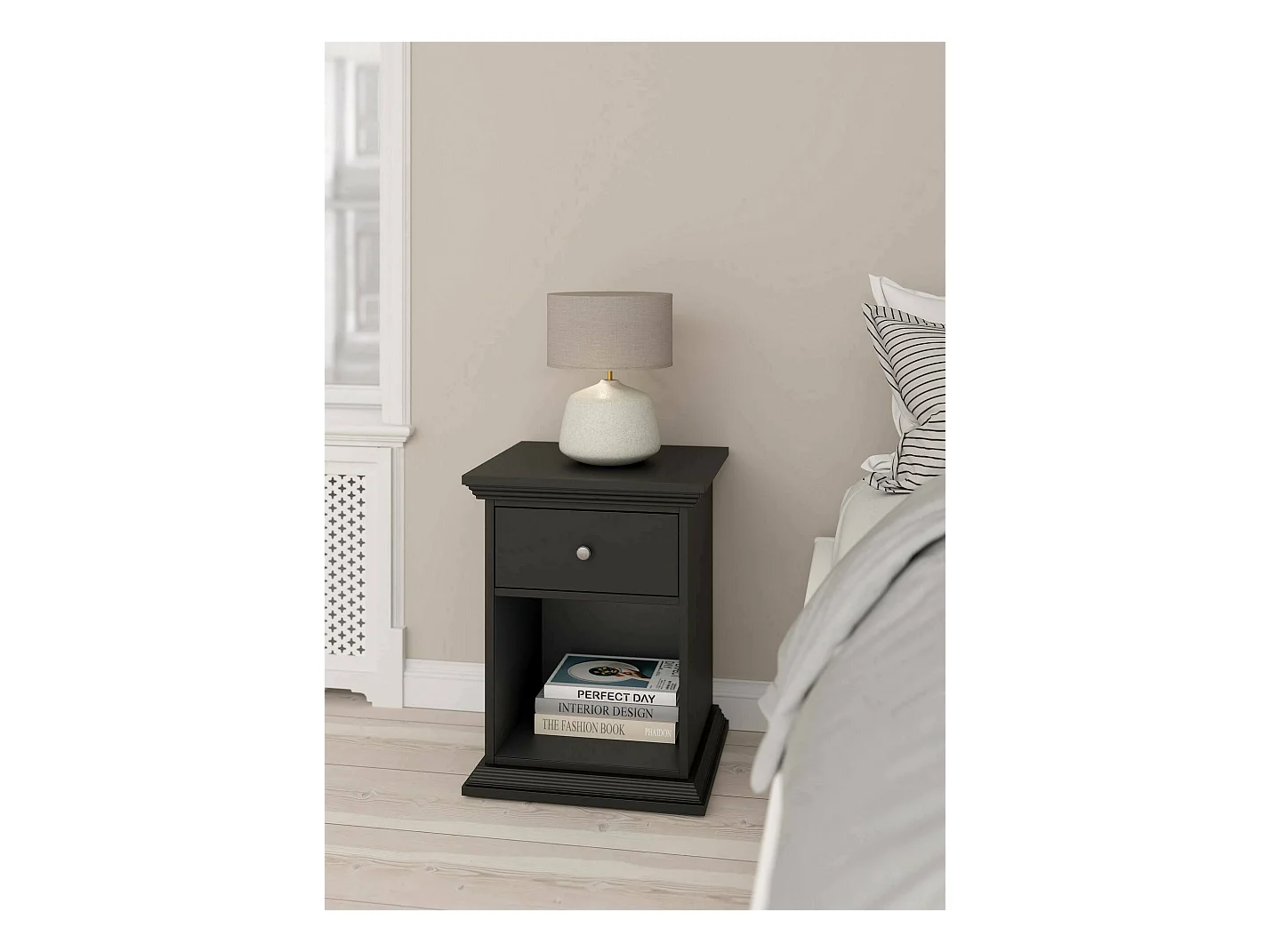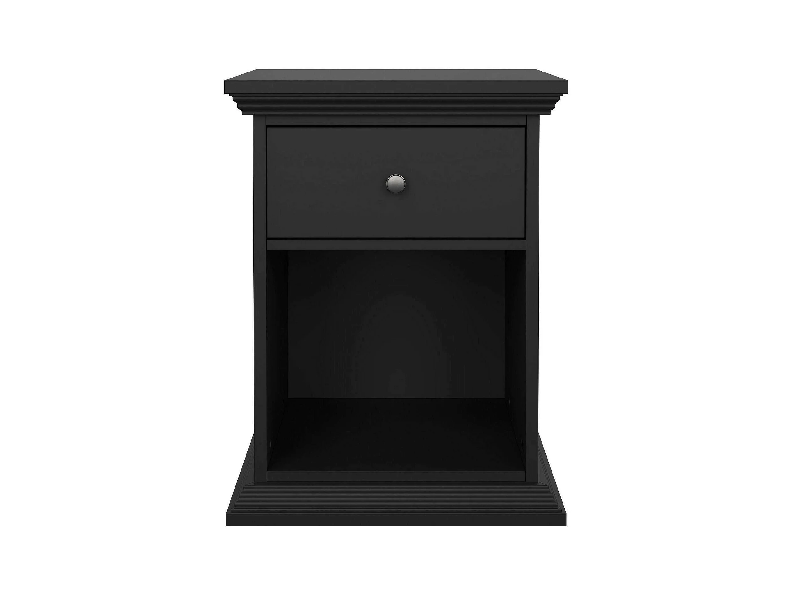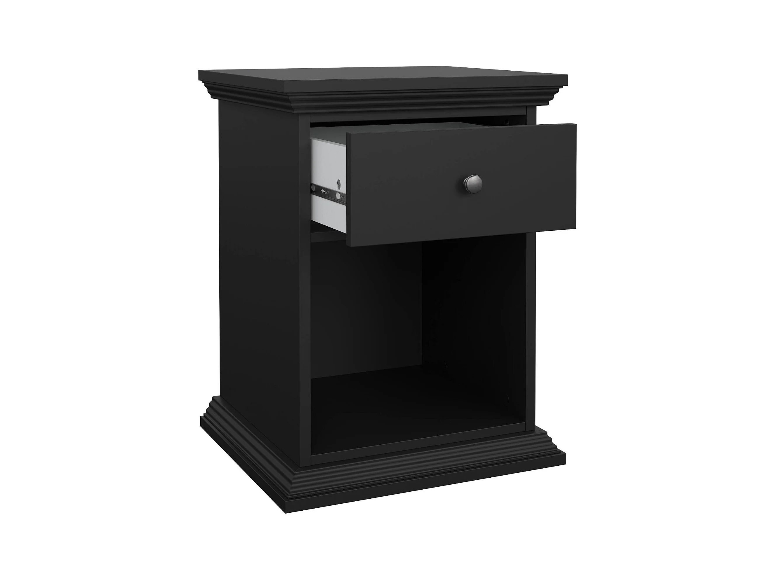 Drull nachtkastje, Lage ladekast, Nachtkastje, Bedplank, 44x38 h54 cm, Zwart
