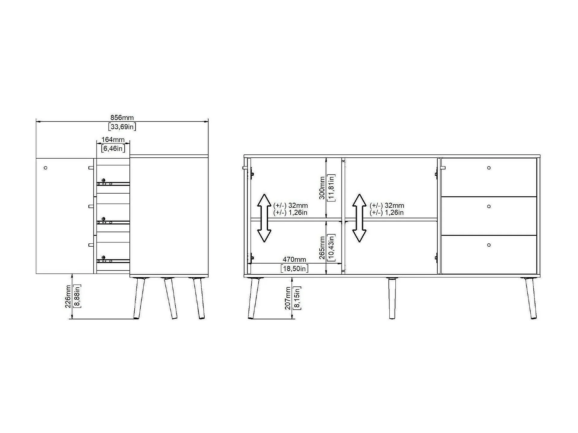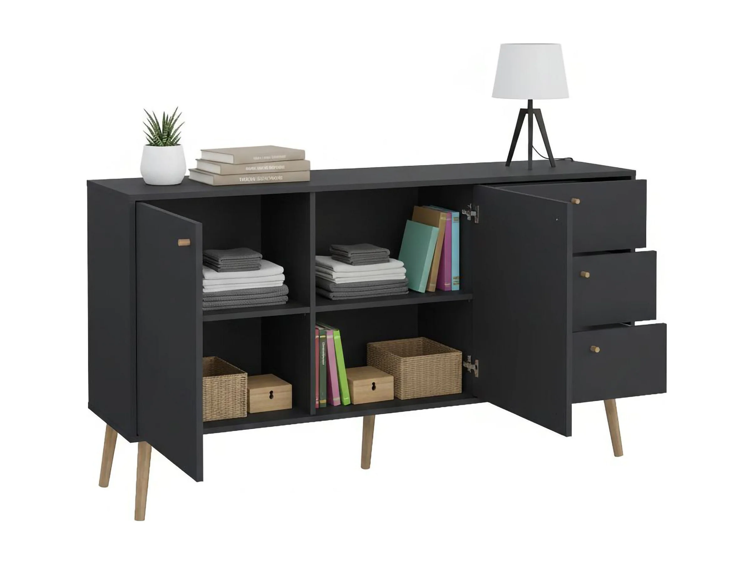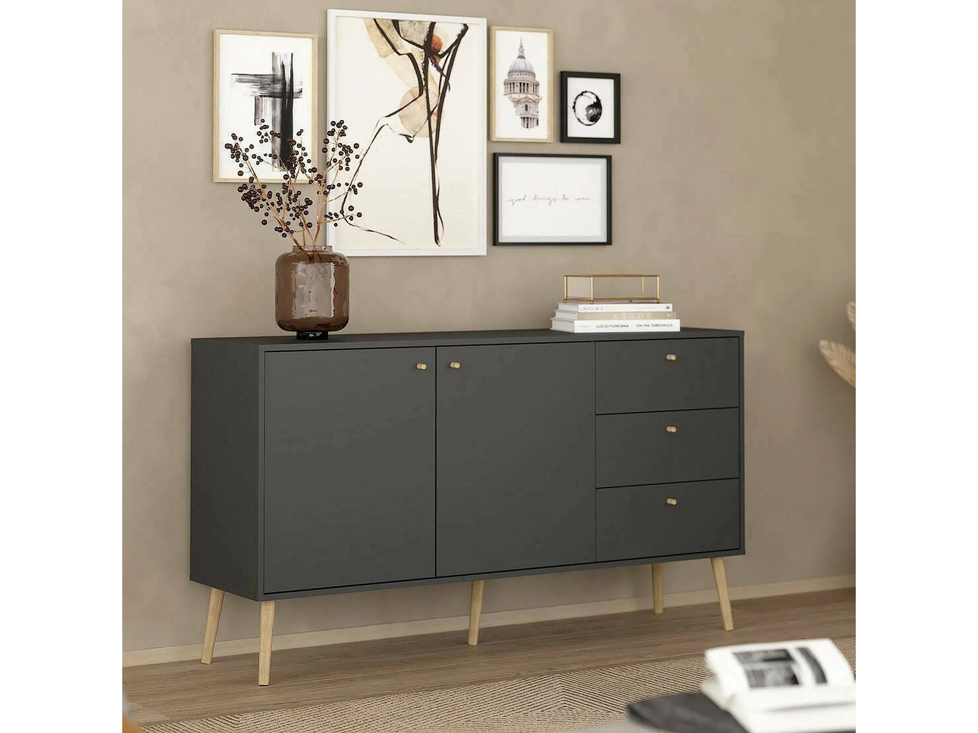 Dsann dressoir, Woonkamerbuffet, Woonkamerdressoir, Keukenkast, 147x39 h82 cm, Grijs