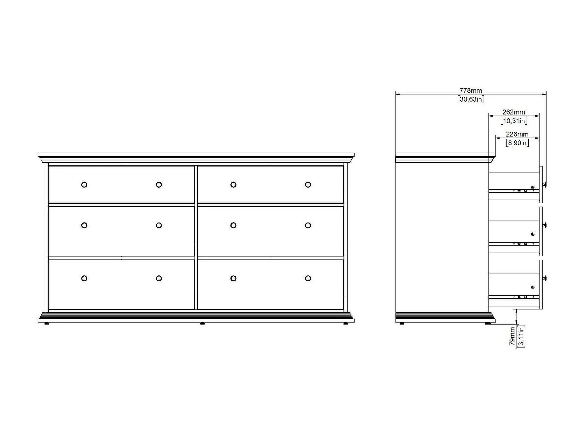 Rye Ladekast breed 6 laden matzwart, walnoot decor.