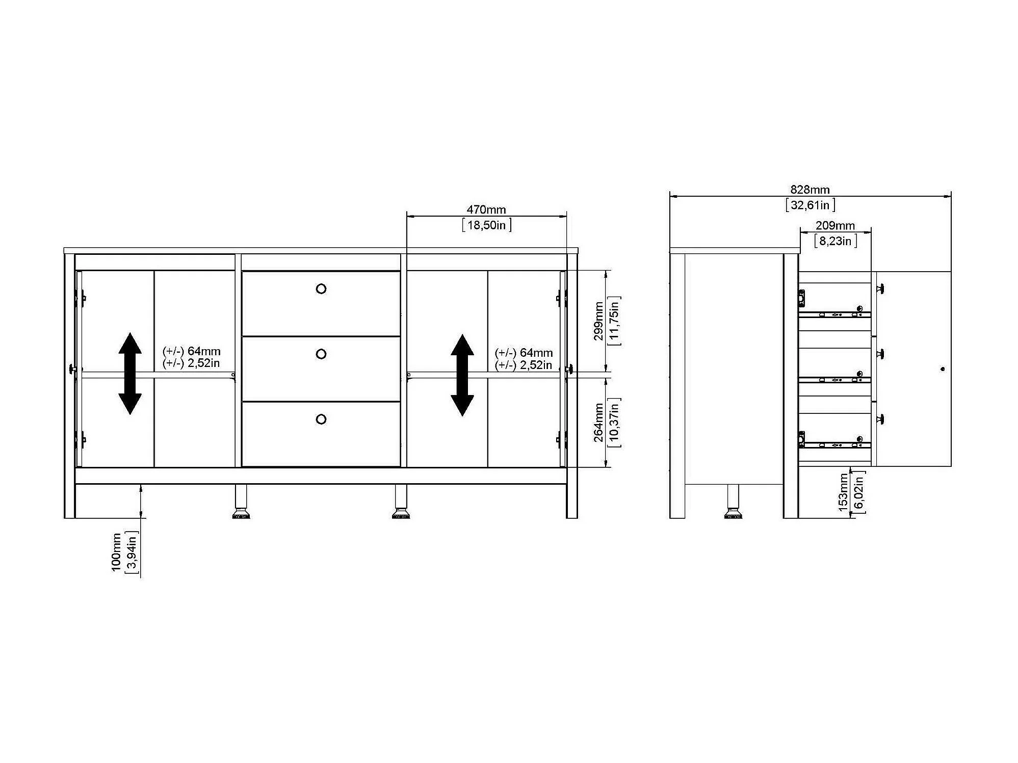 Dsaracc dressoir, Woonkamerbuffet, Woonkamerdressoir, Keukenkast, 151x38 h80 cm, Zwart