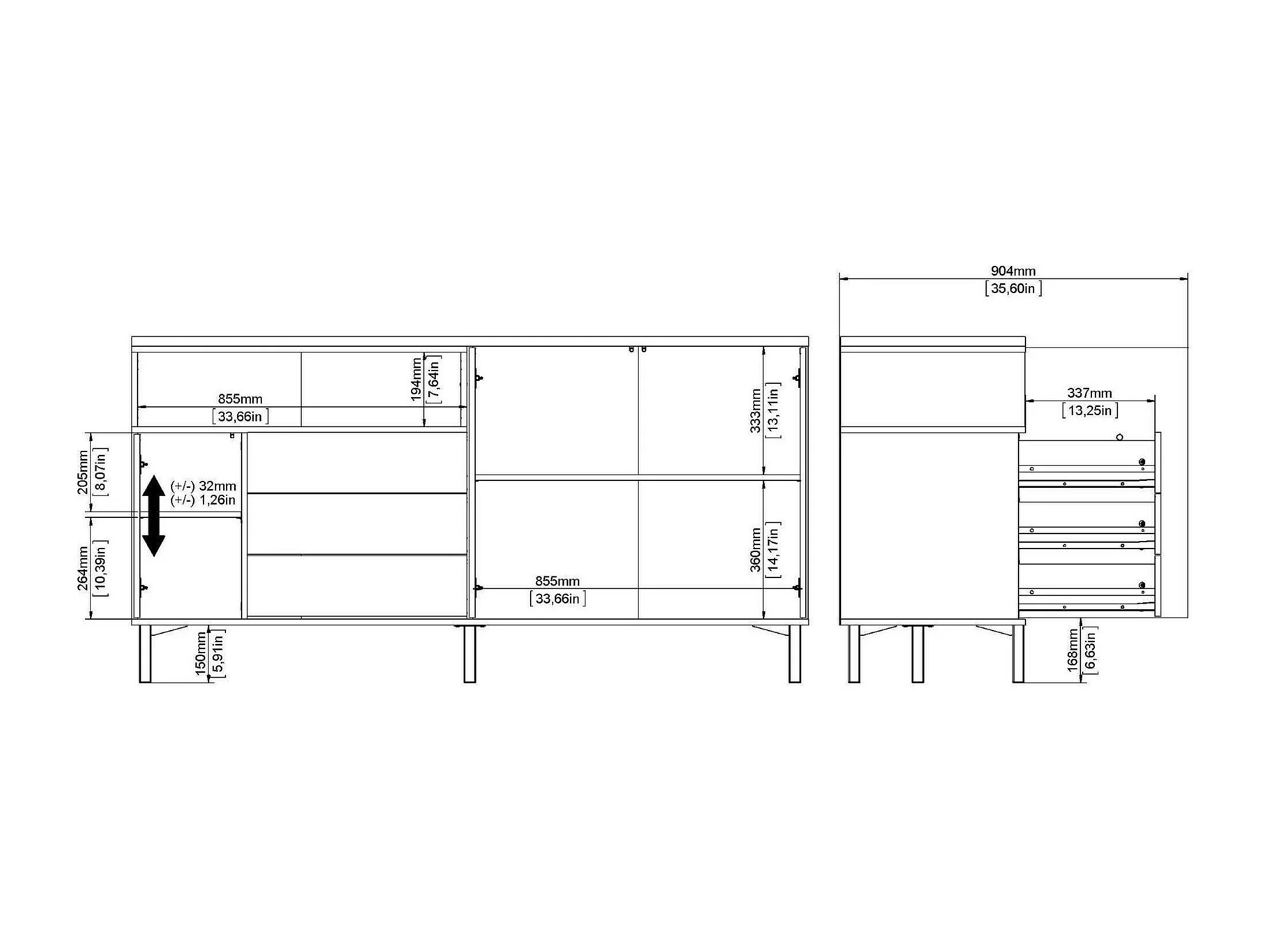 Dsaracc dressoir, Woonkamerbuffet, Woonkamerdressoir, Keukenkast, 151x38 h80 cm, Wit