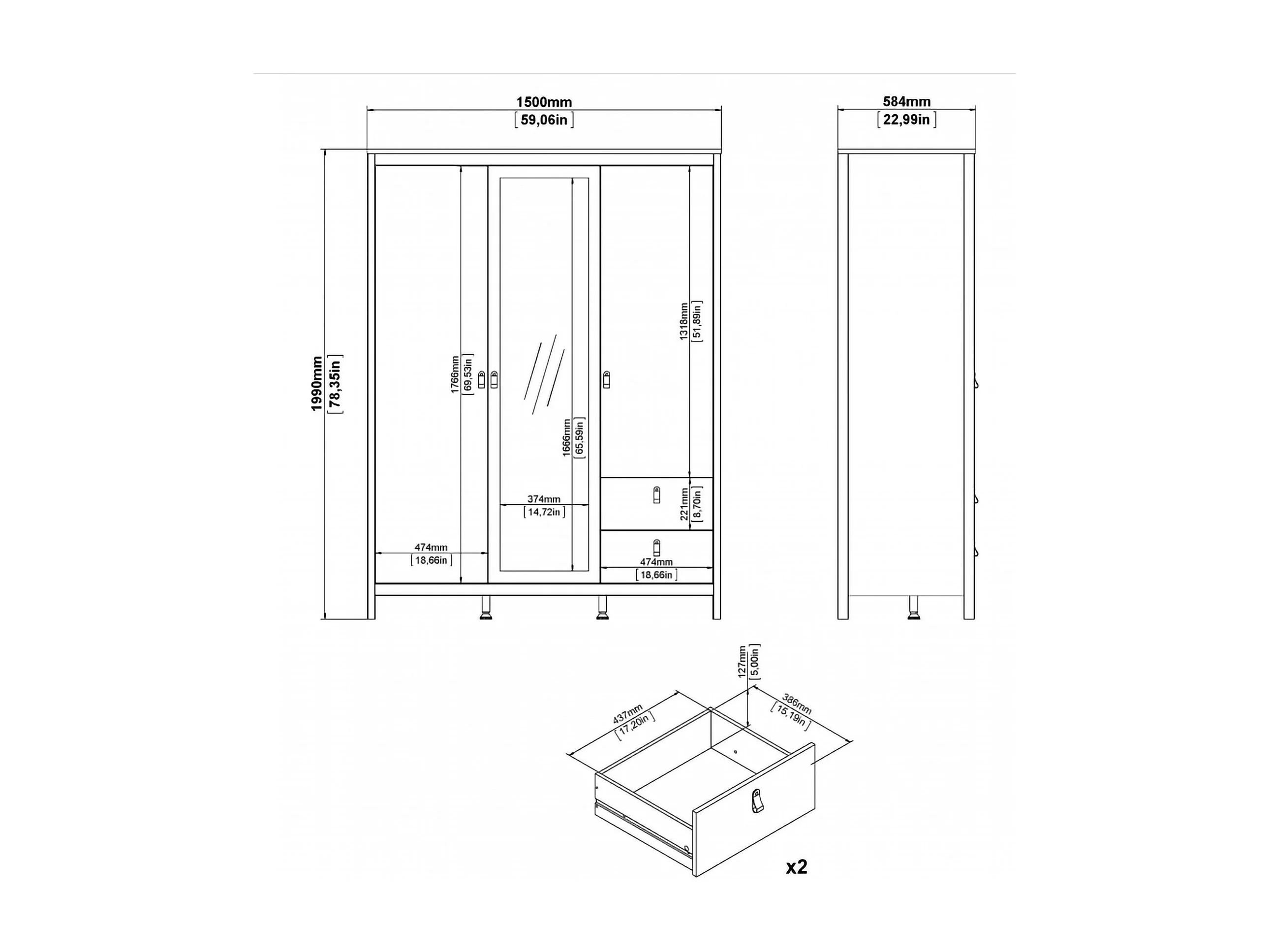 Dselvagg 3-deurskast, Slaapkamermeubel, Inloopkast, Kledingkast, 150x58 h199 cm, Zwart