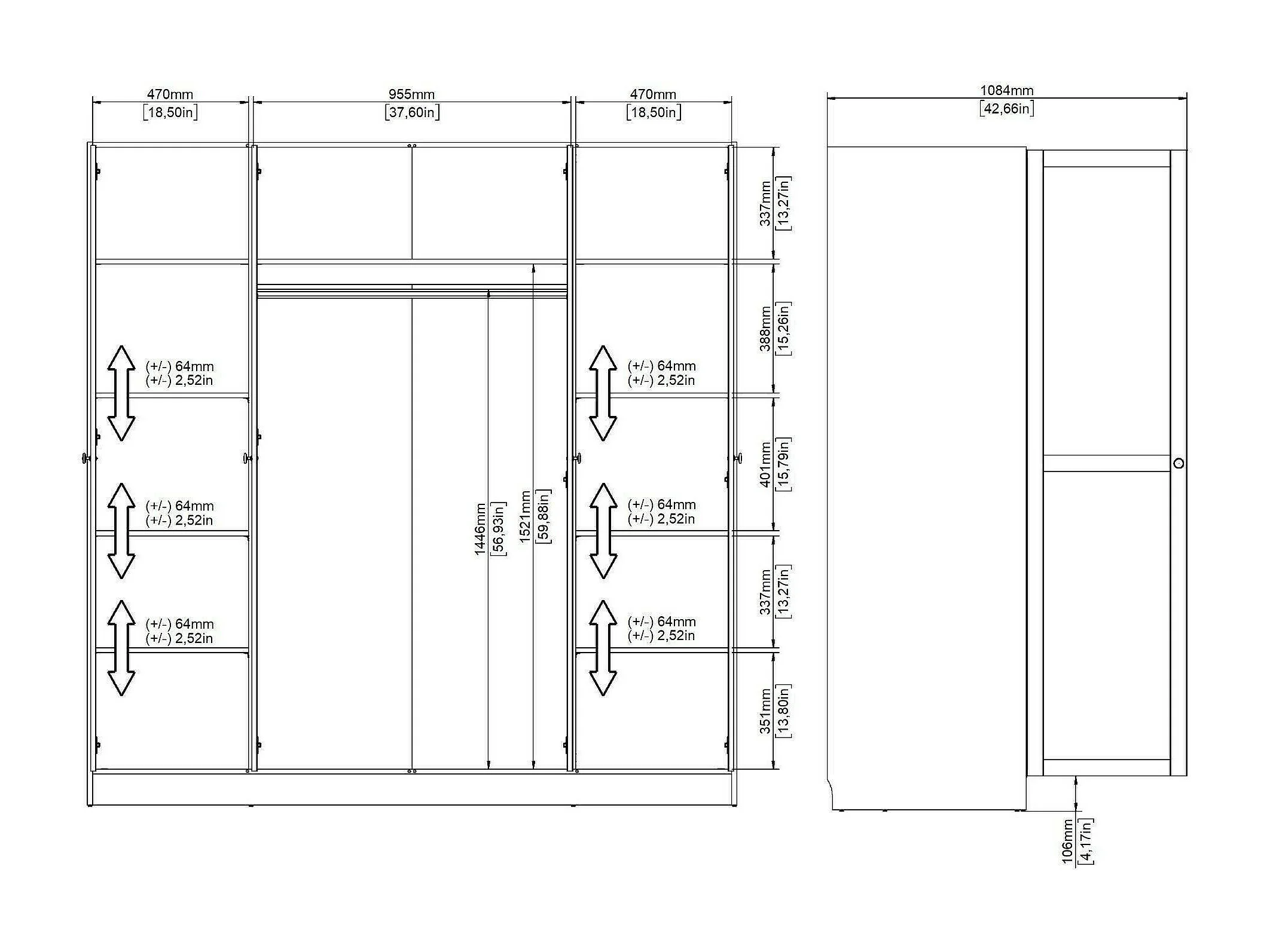 Dserr grote kledingkast, Slaapkamermeubel, Inloopkast, Kledingkast, 196x62 h200 cm, Wit