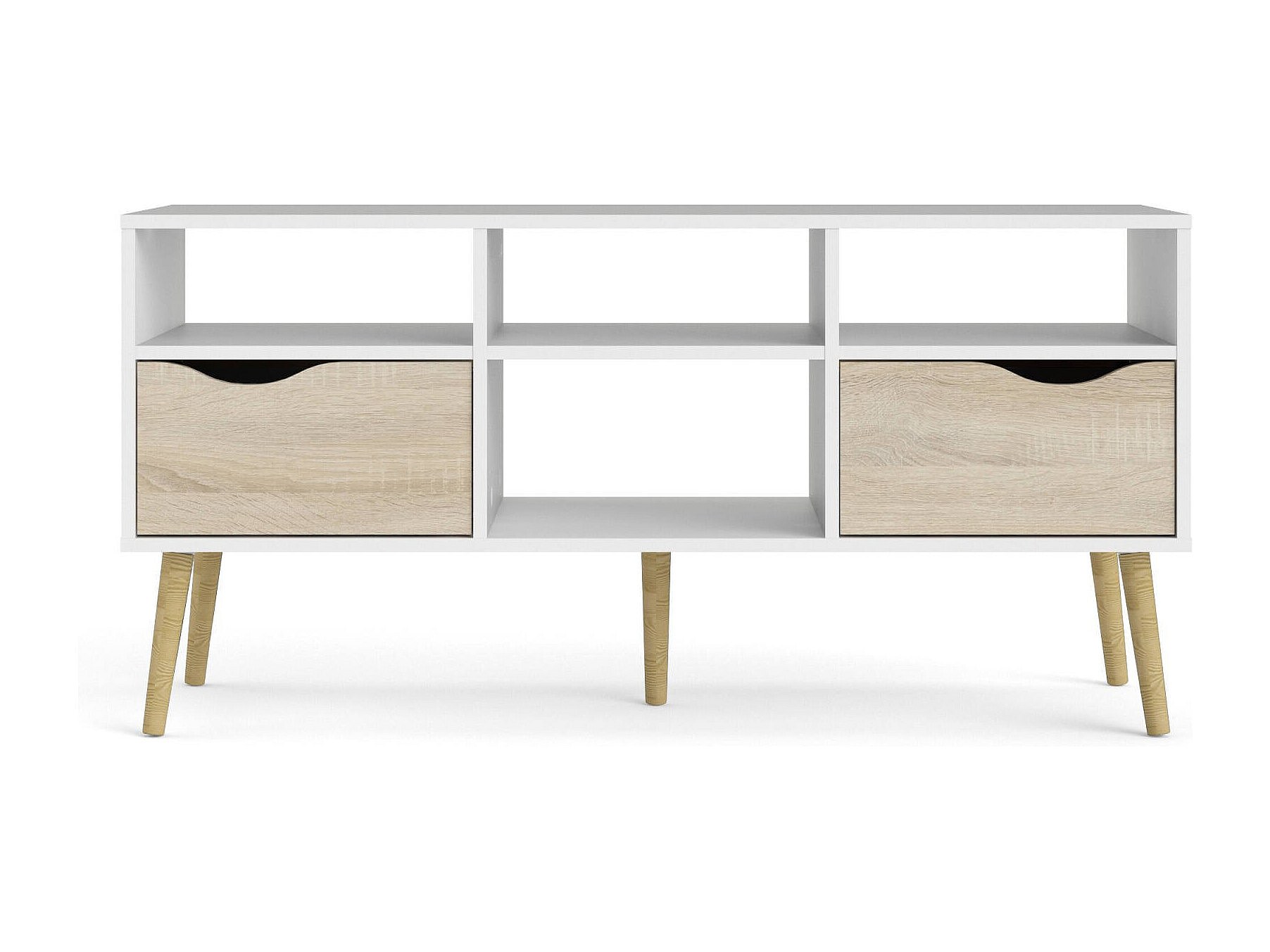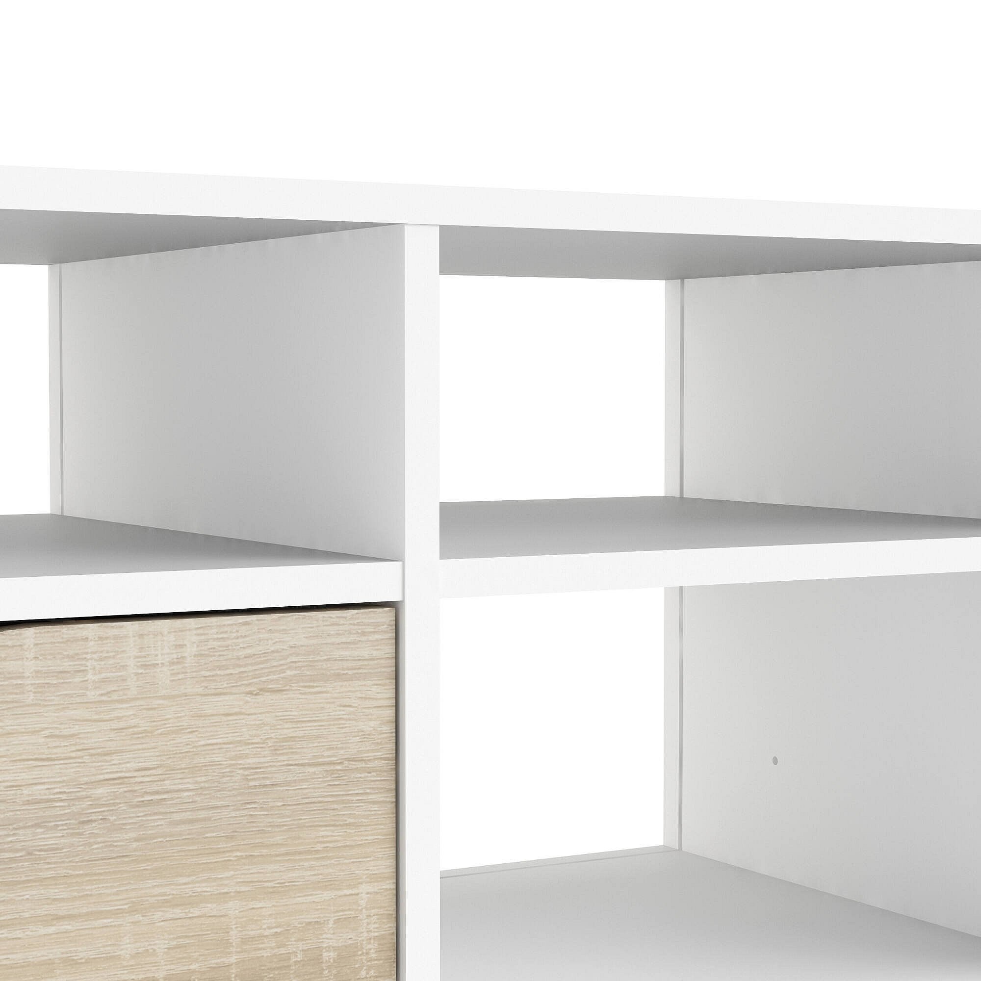 Dtesse TV-meubel, Woonkamerdressoir, Lage tv-kast, Voorzien van wandbasis, 117x39 h57 cm, Wit en Eiken