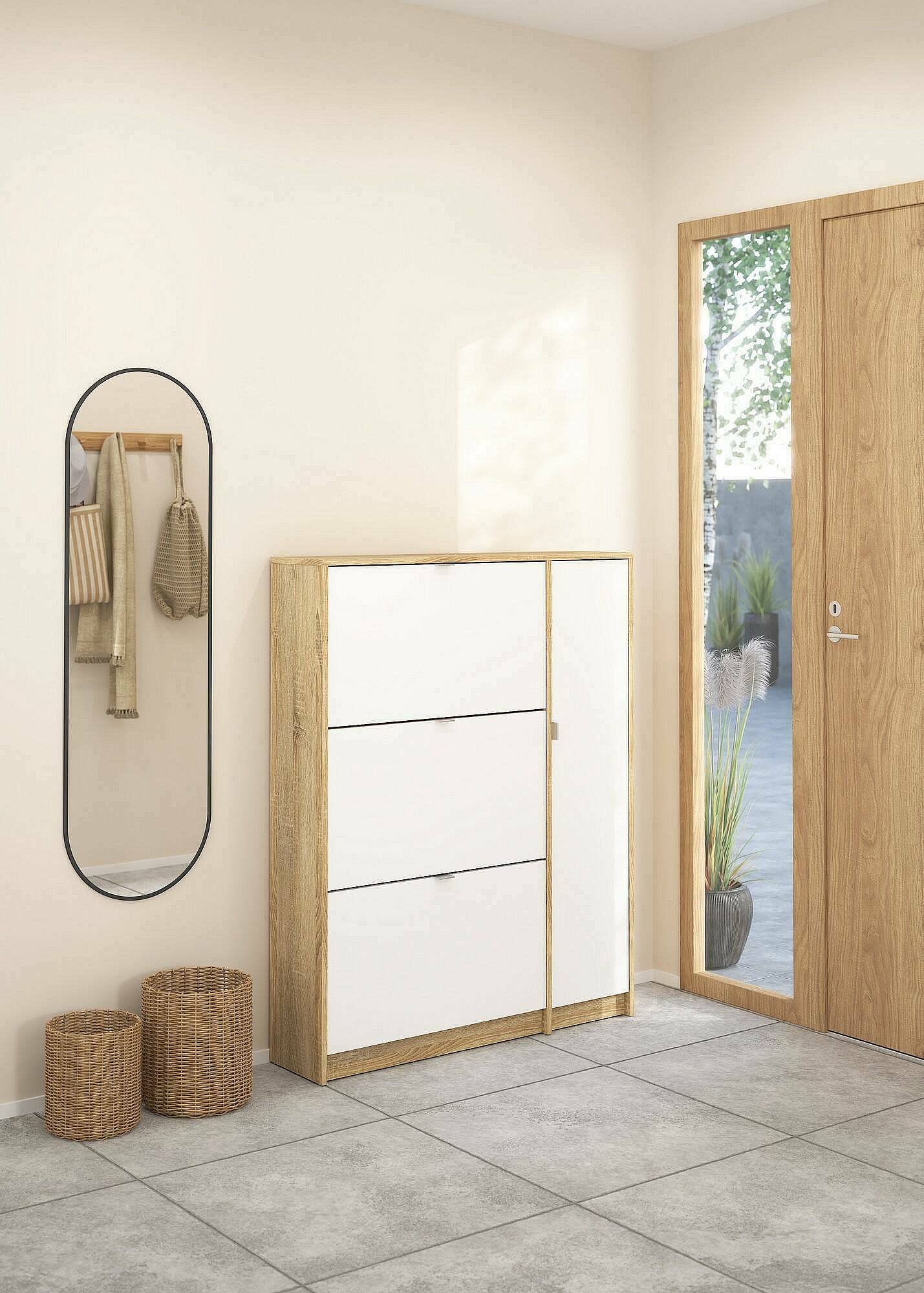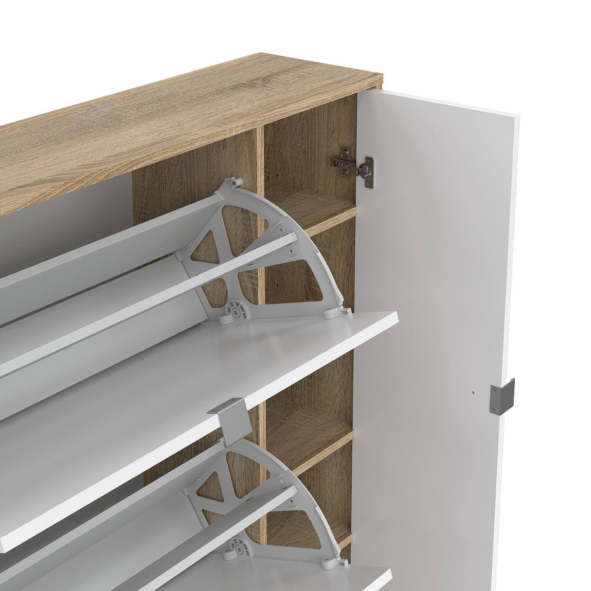 Dtour schoenenrek, Schoenenkast, Multifunctionele entreekast, Schoenenkast, 99x24 h124 cm, Eiken en Wit