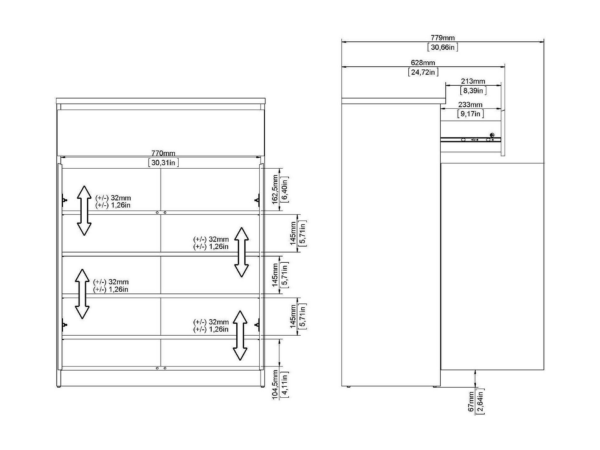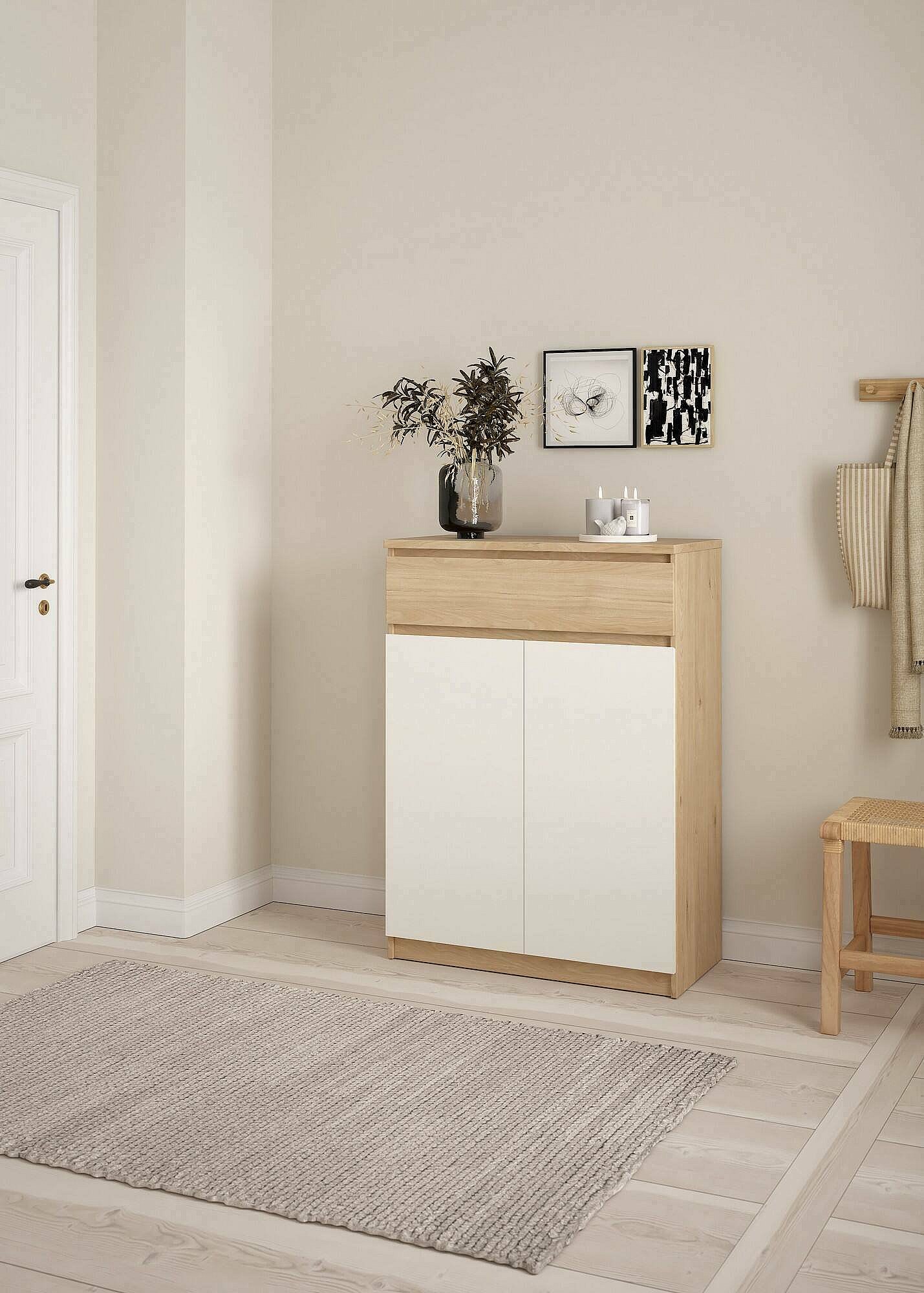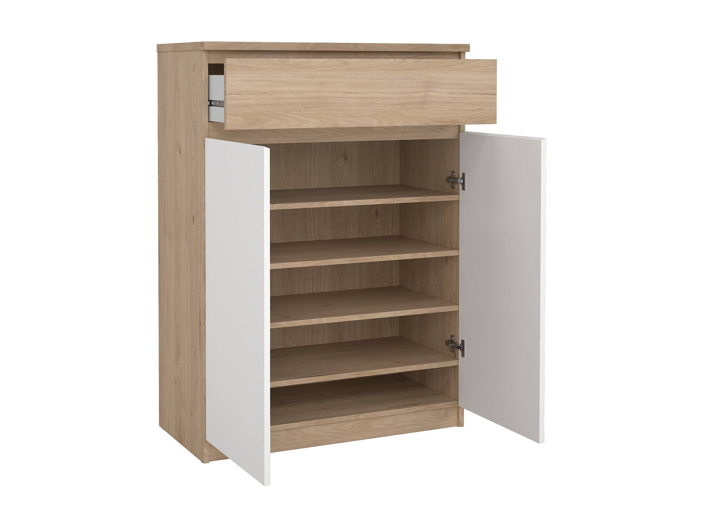 SCHOENENREK - Schoenenrek, multifunctionele inkomkast, schoenenkast, 80x40 h111 cm, eiken en wit. STRUCTUUR EN GEBRUIK - Modern en ruimtebesparend schoenenrek, ideaal voor het opbergen van elk type schoenen - Multifunctioneel, elegant en functioneel meubelstuk, perfect voor plaatsing in de entree, gang, wasruimte, badkamer, kast, garage, slaapkamer , balkon, terras of entree - Multifunctionele kast, ook perfect voor het opbergen van voorwerpen en gereedschap - Praktisch en netjes schoenenrek, een comfortabel toevluchtsoord voor uw schoenen, ontworpen om de orde en elegantie in uw entree te behouden. KWALITEIT EN DESIGN - Meubelartikel met een modern en elegant design, perfect voor het inrichten van een eigentijdse en lichte omgeving - Ideaal voor wie op zoek is naar functionaliteit en ruimtebesparende oplossingen, dit product is perfect voor huizen en appartementen van elke grootte - Twee jaar garantie vanaf de datum van aankoop. TECHNISCHE EIGENSCHAPPEN - Veelzijdig meubelaccessoire, ontworpen voor eenvoudige integratie met ander meubilair - Duurzame verpakking, ontworpen voor e-commerce - Materiaal: melamine spaanplaat - Aanvullende informatie: EPA 40 CFR TSCA gecertificeerd artikel - Formaldehyde-afgifte voldoet aan IOS-richtlijnen /MAT/0181/EN 16819 - Gedemonteerd - Voorzien van montageset - Twee draaideuren - Eén lade - Wandbevestiging niet nodig - 15 paar insteekschoenen. AFMETINGEN IN CM - Schoenenrek: Lengte: 80,4 Breedte: 40 Hoogte: 111,3 - Extra afmetingen: Schoenenrek opening: 23,1 cm - Deuropening 38,4 cm