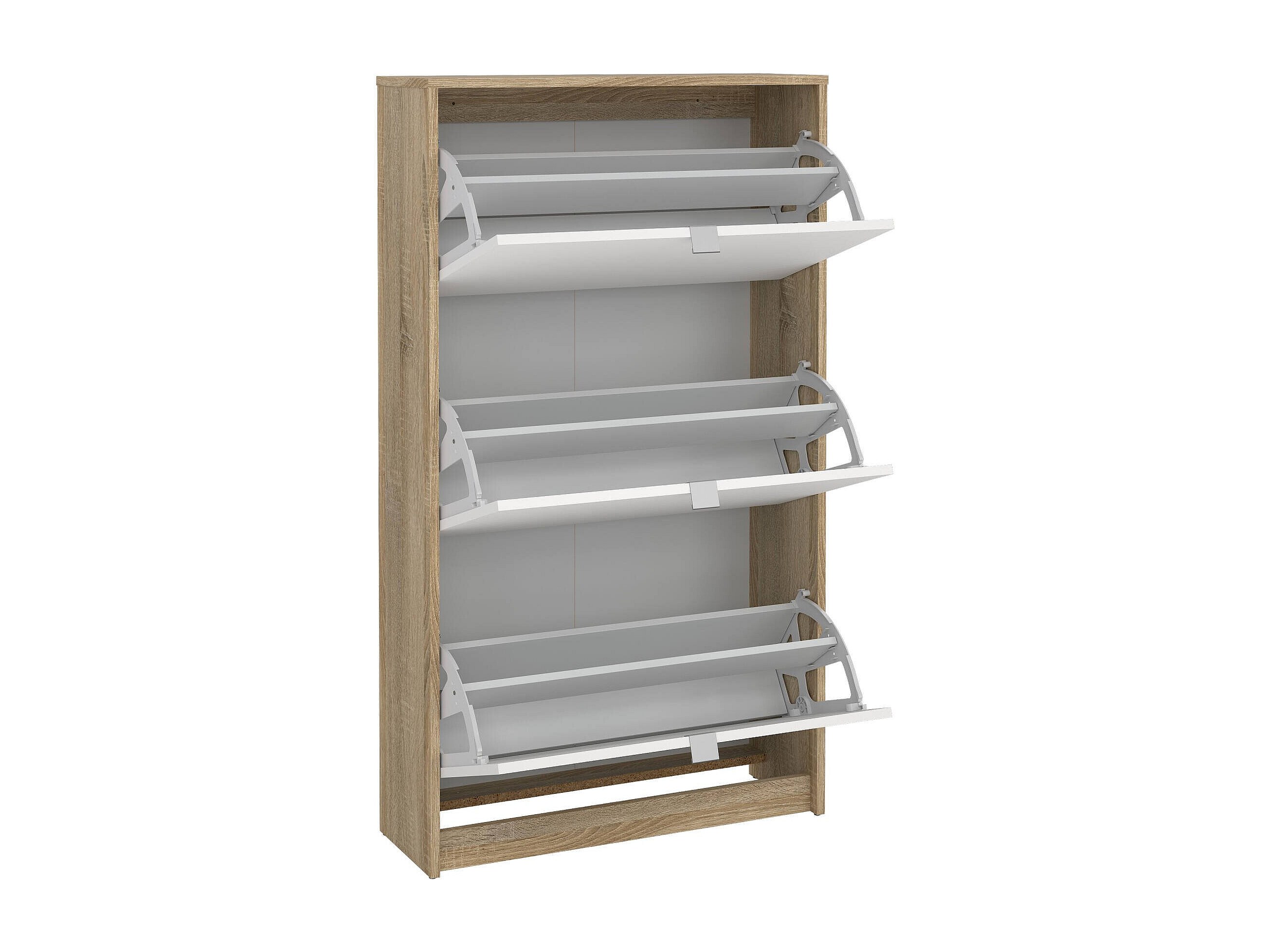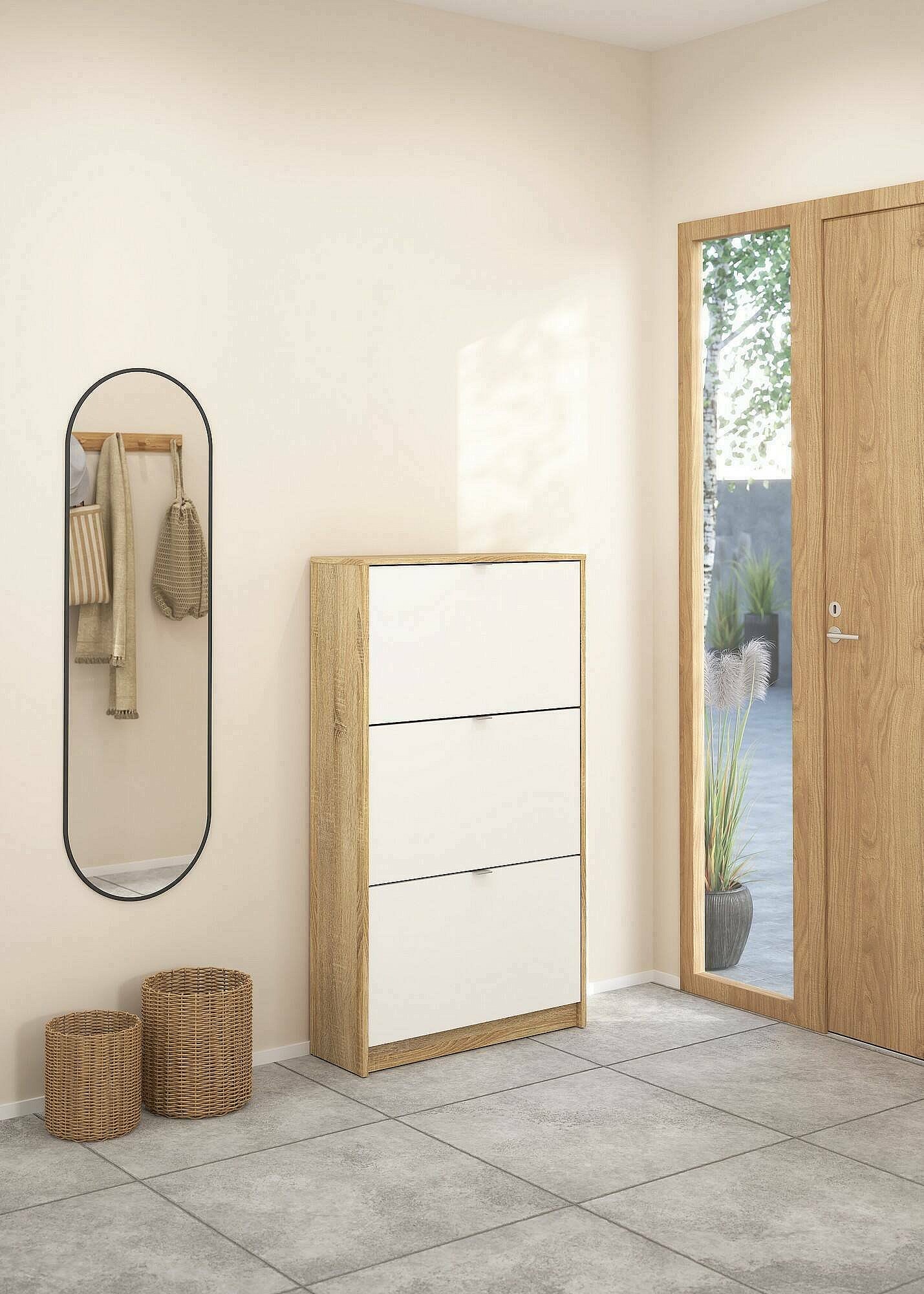 Dtresold schoenenrek, Schoenenkast, Multifunctionele entreekast, Schoenenkast, 70x24 h124 cm, Eiken en Wit