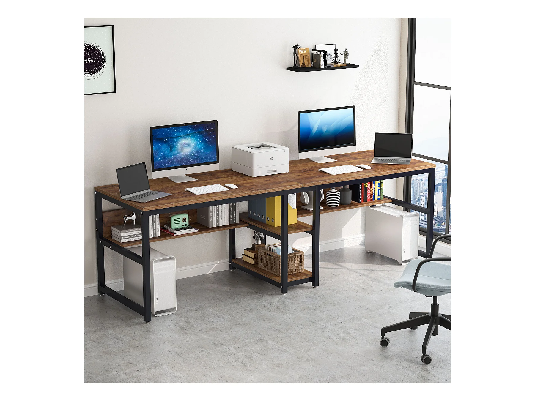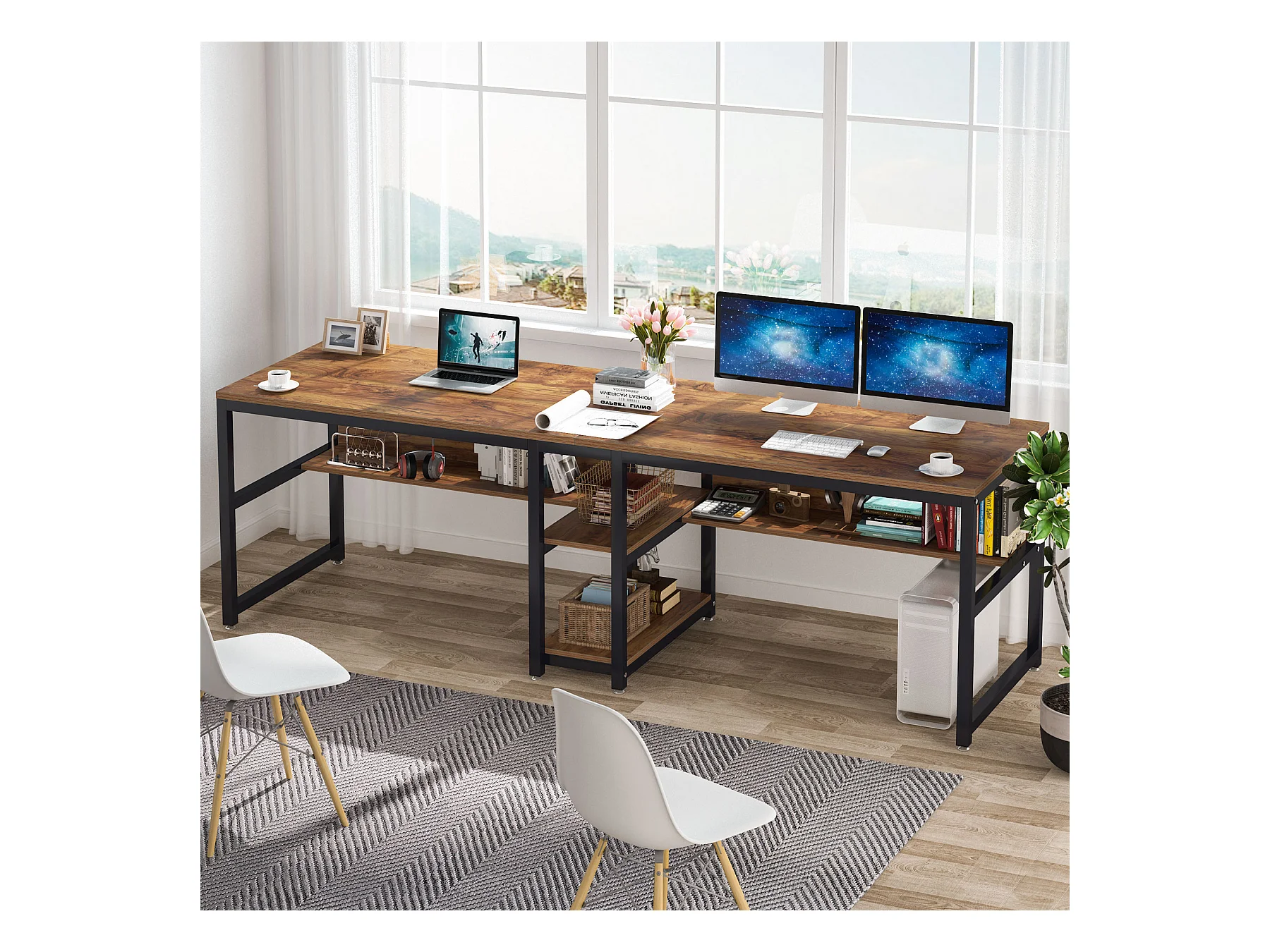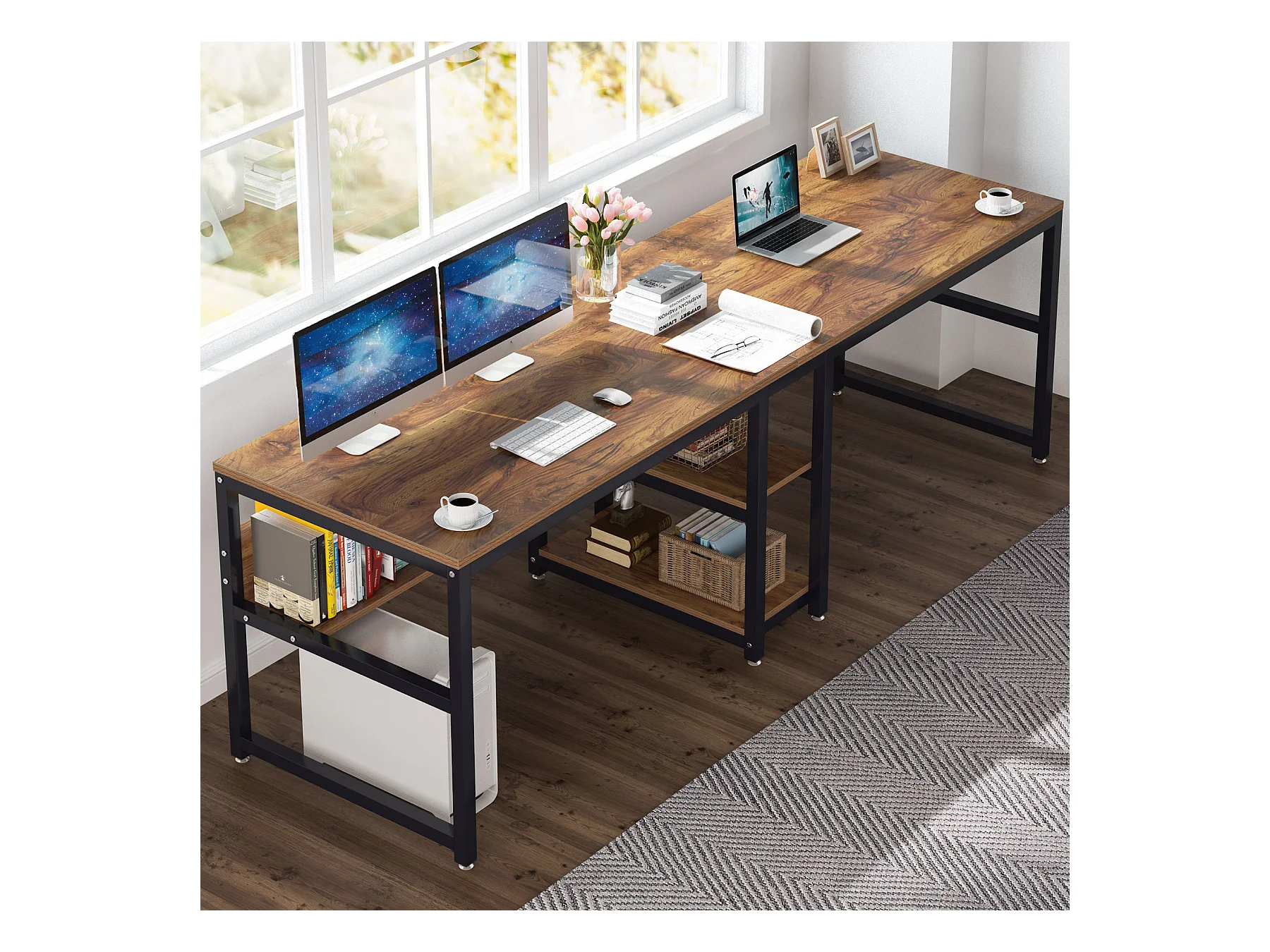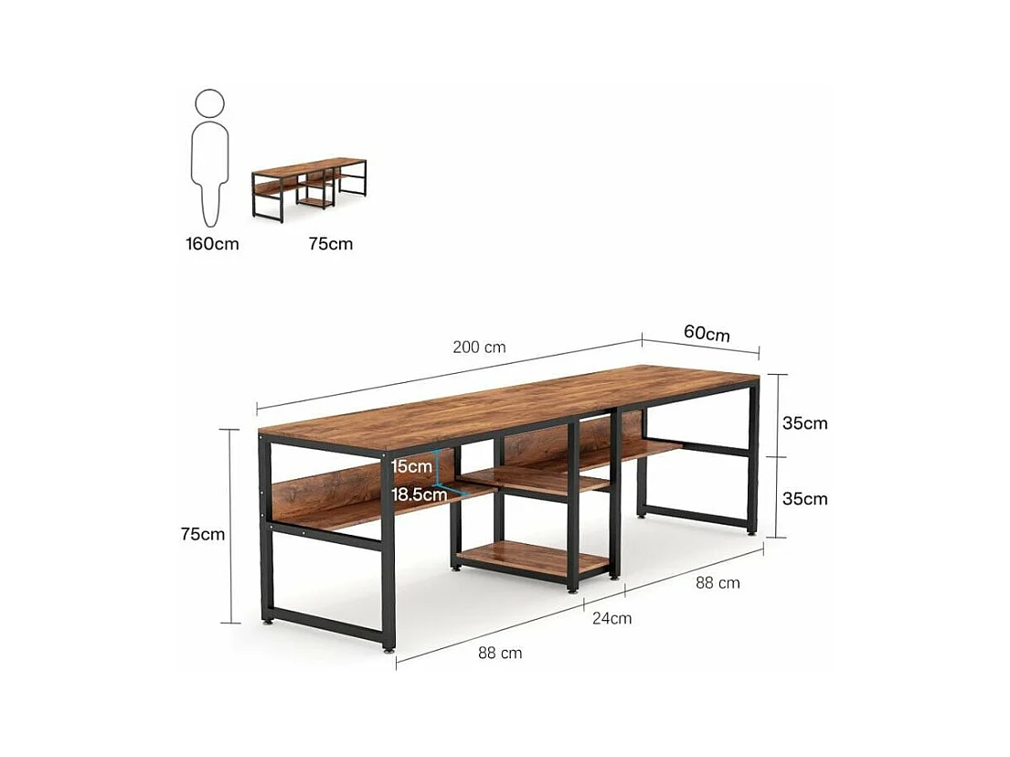Dubbel computerbureau van 200 cm voor twee personen, rustiek bureau met plank voor rustiek thuiskantoor