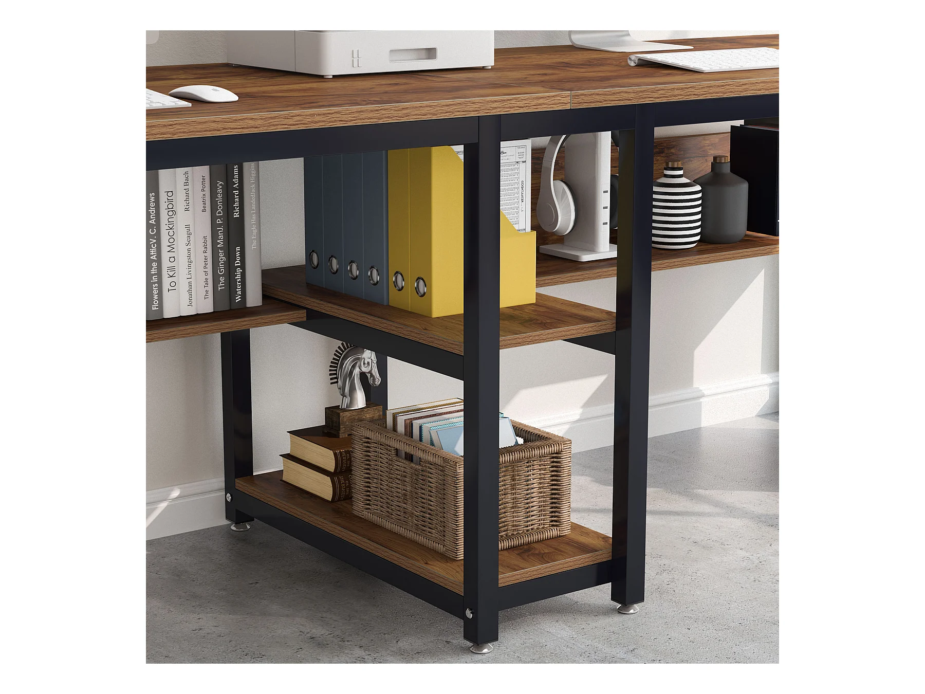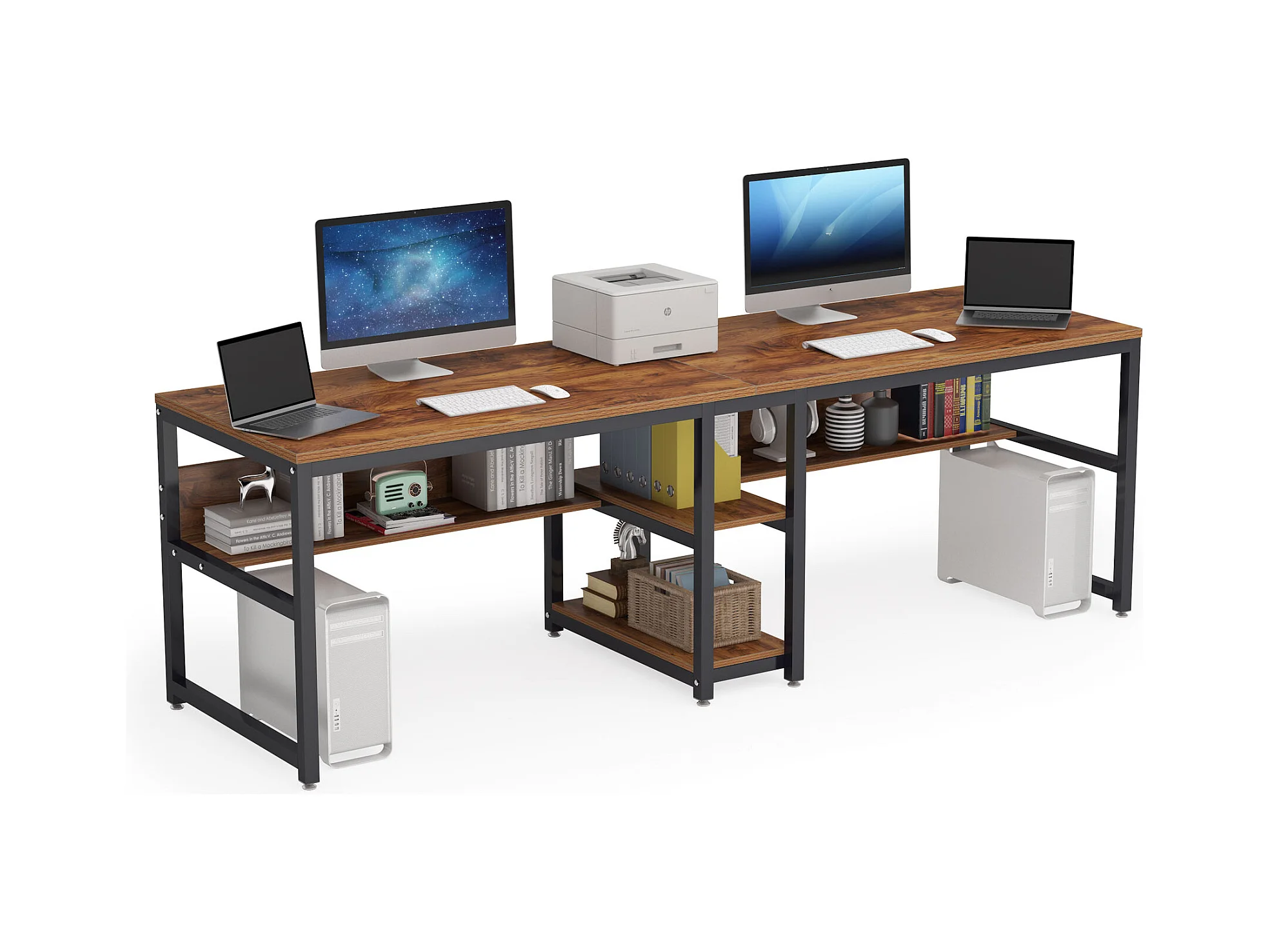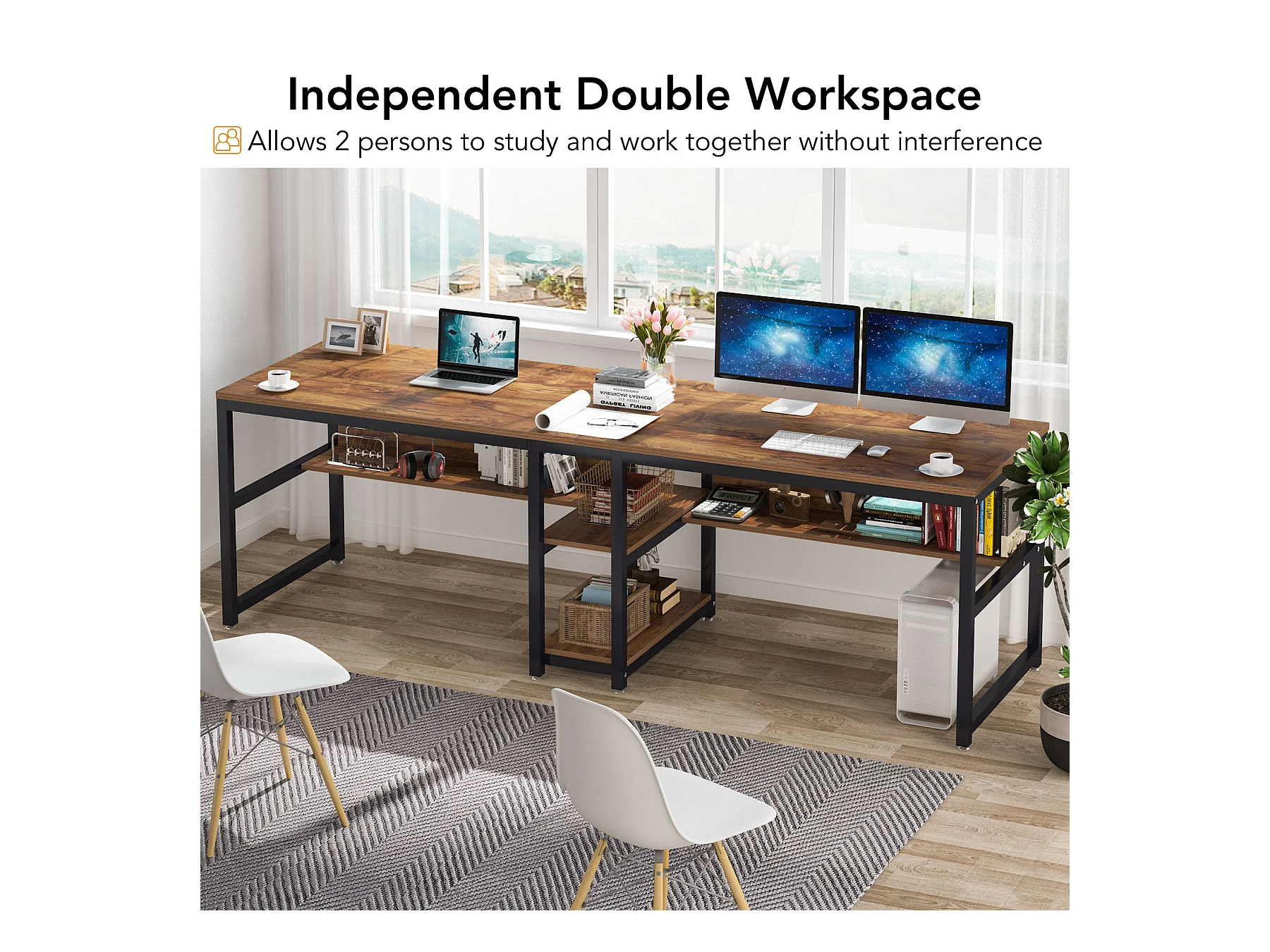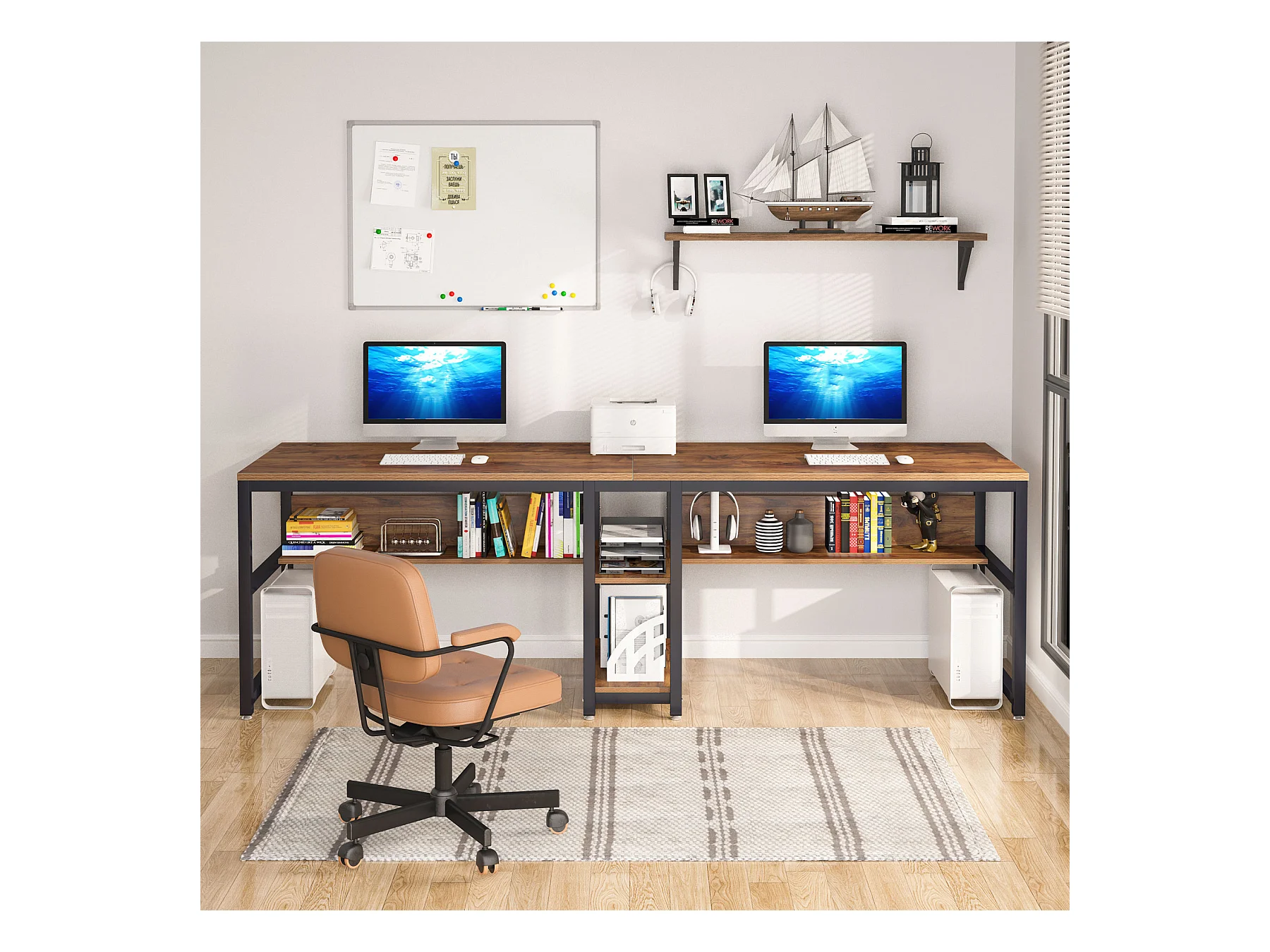 Dubbel computerbureau van 200 cm voor twee personen, rustiek bureau met plank voor rustiek thuiskantoor