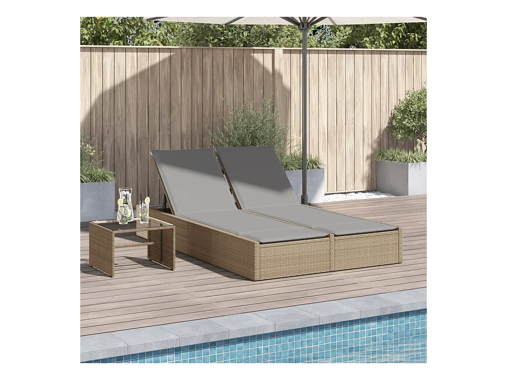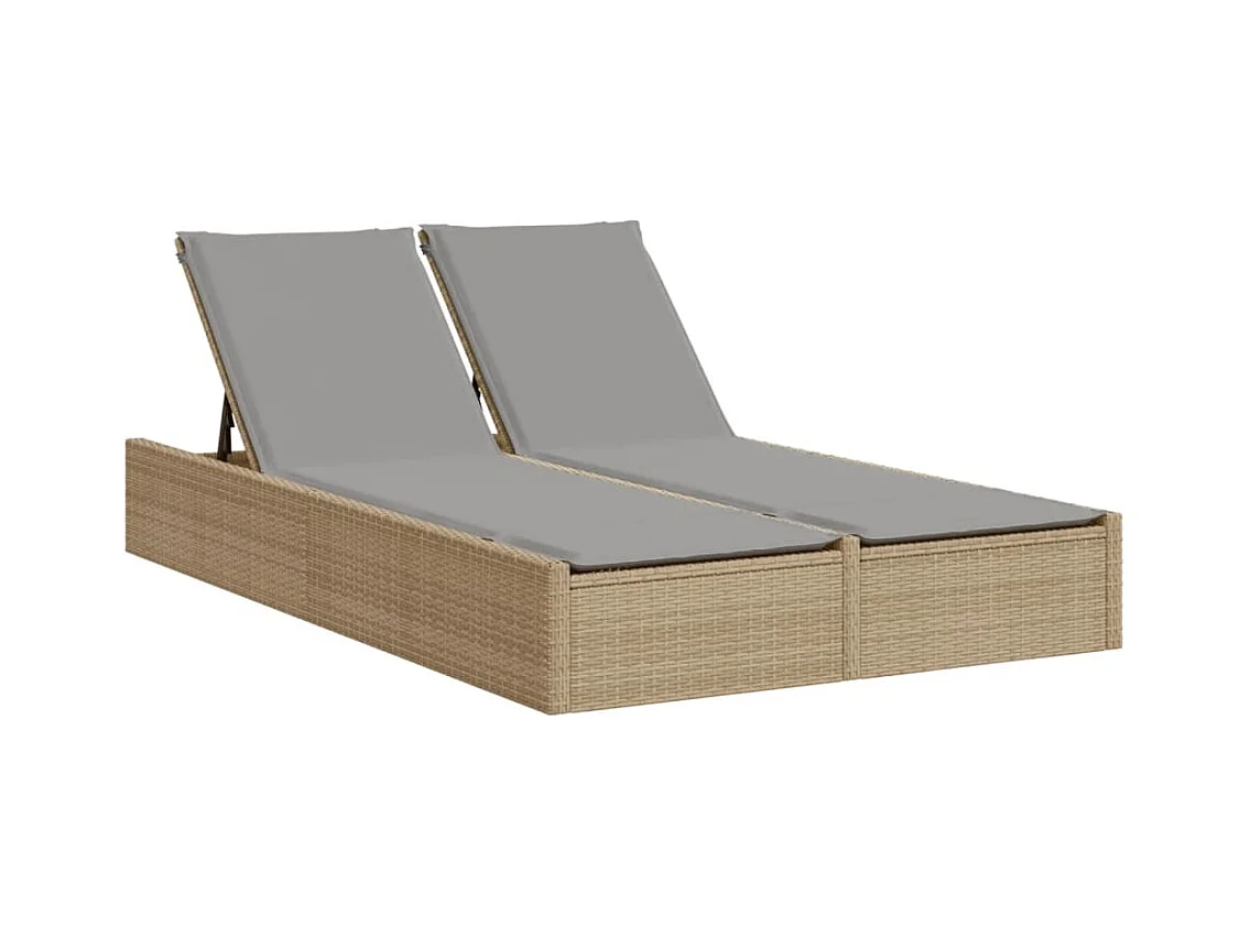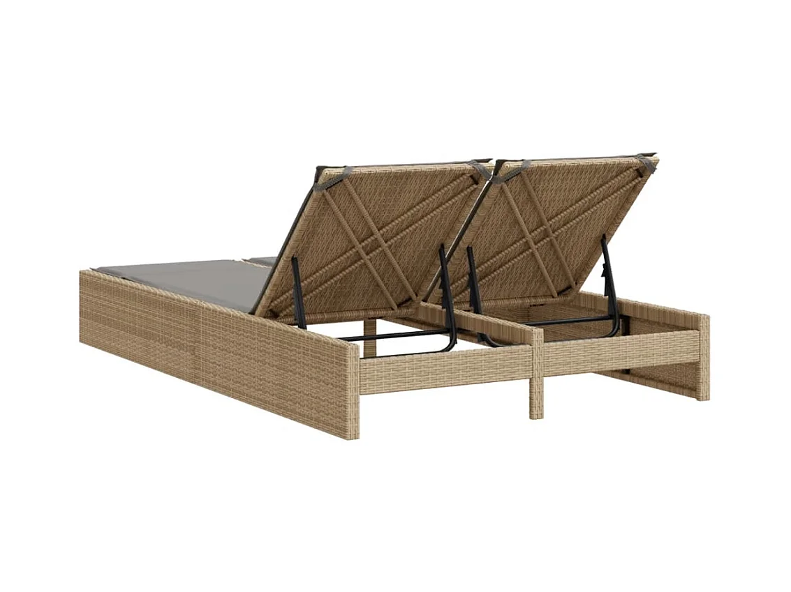 Dubbele chaise longue met beige kunsthars rieten kussens
