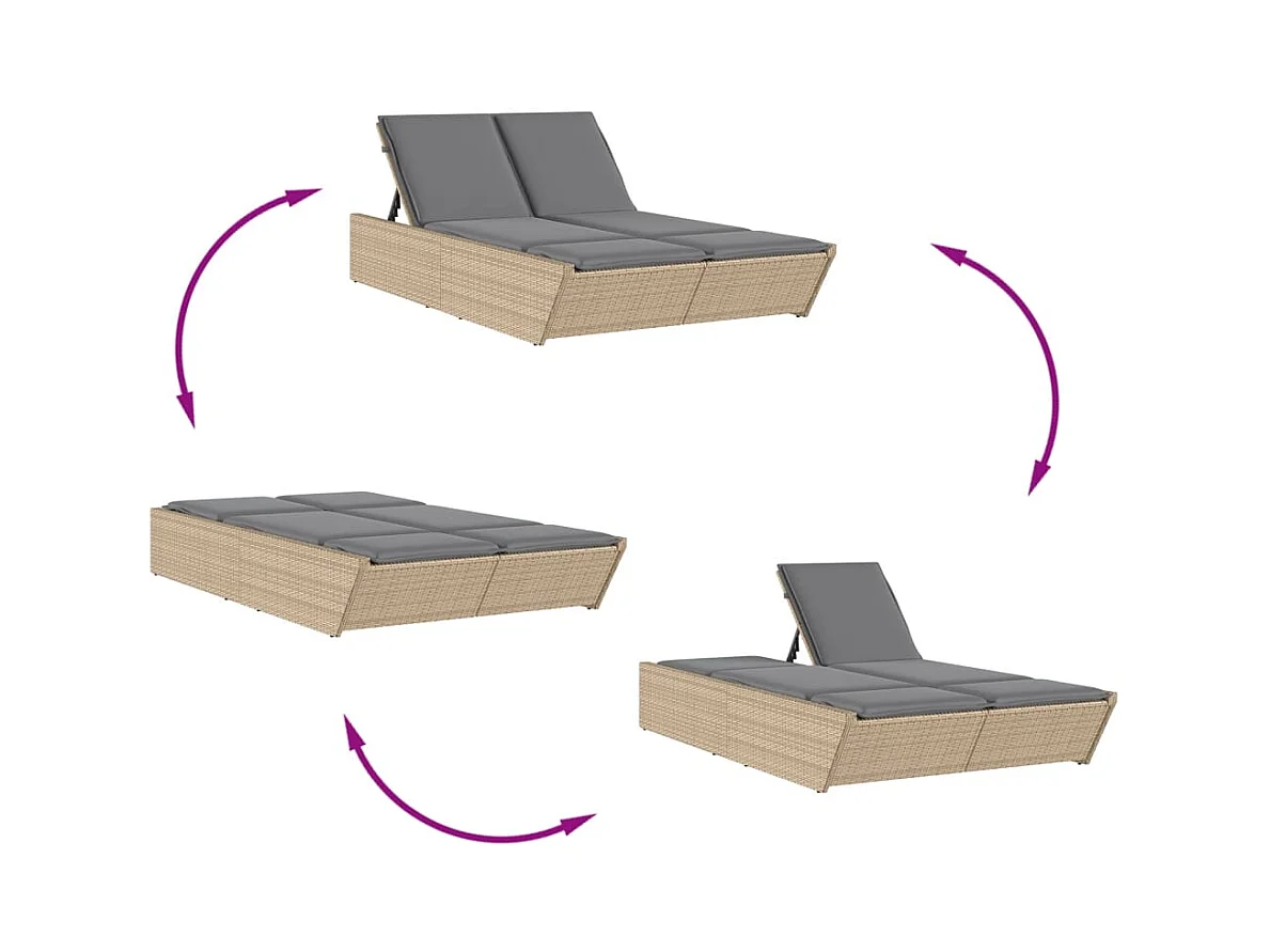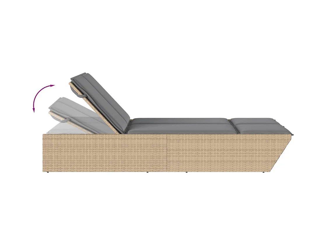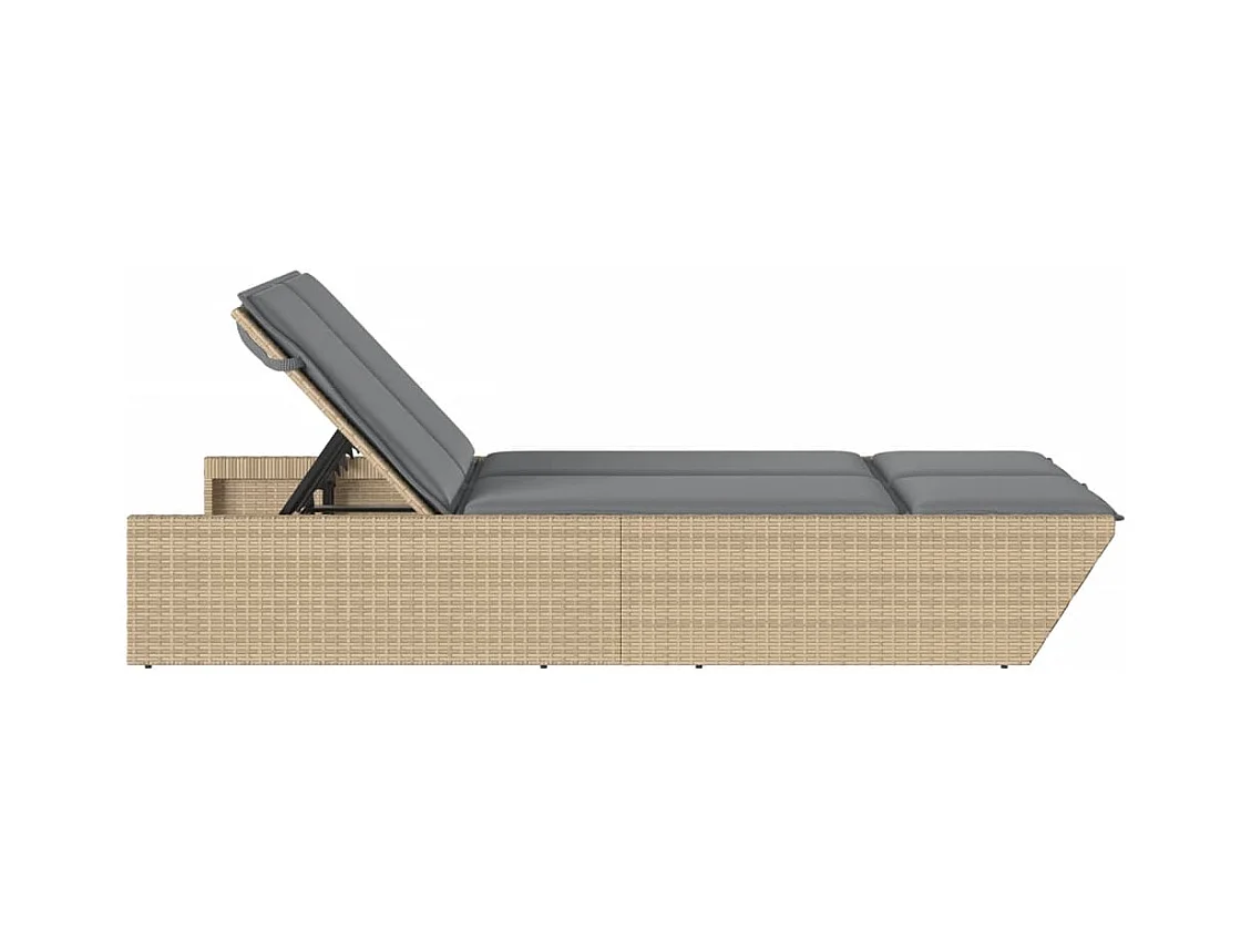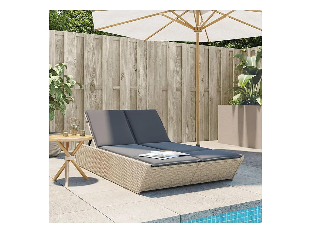 Dubbele chaise longue met beige kunsthars rieten kussens