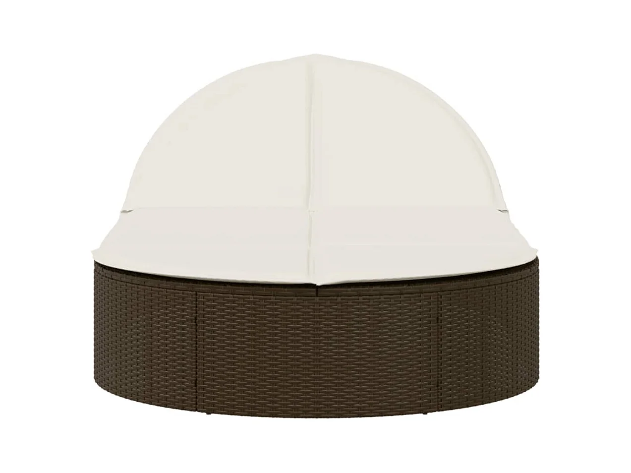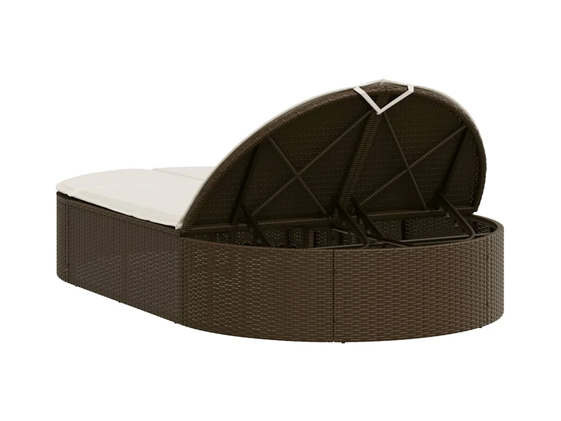 Dubbele loungestoel met baldakijn en bruine polyrotan kussens
