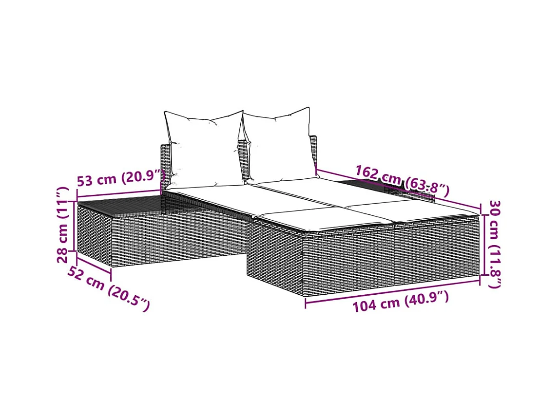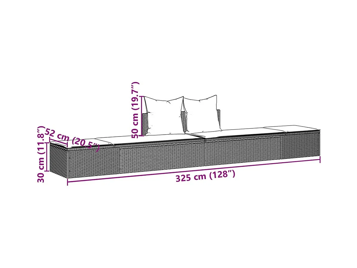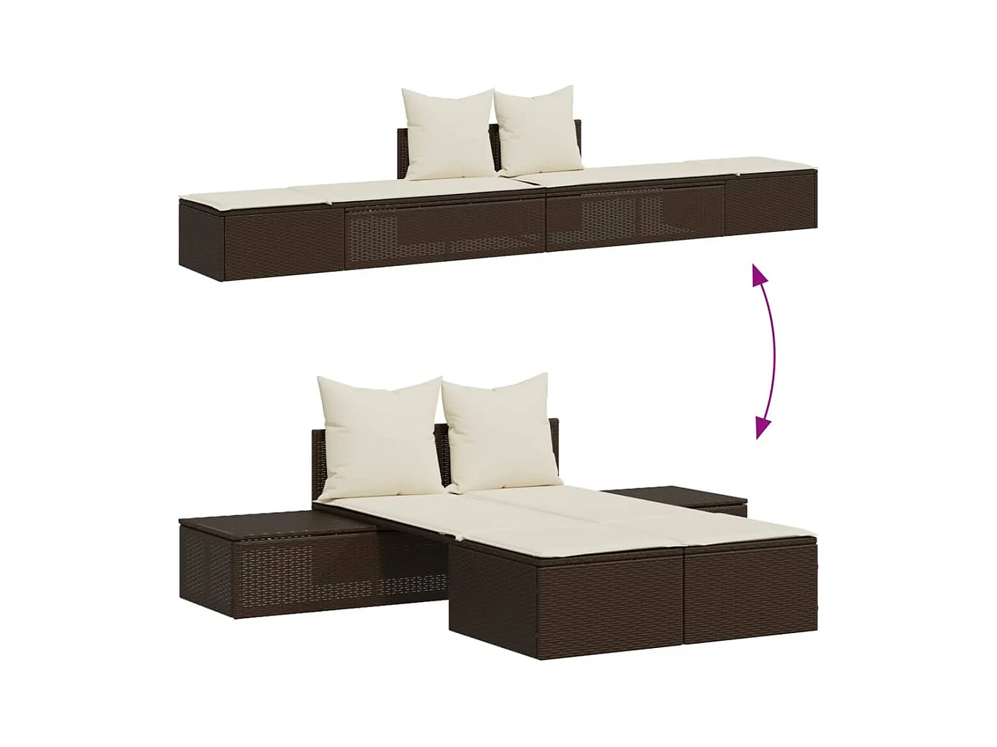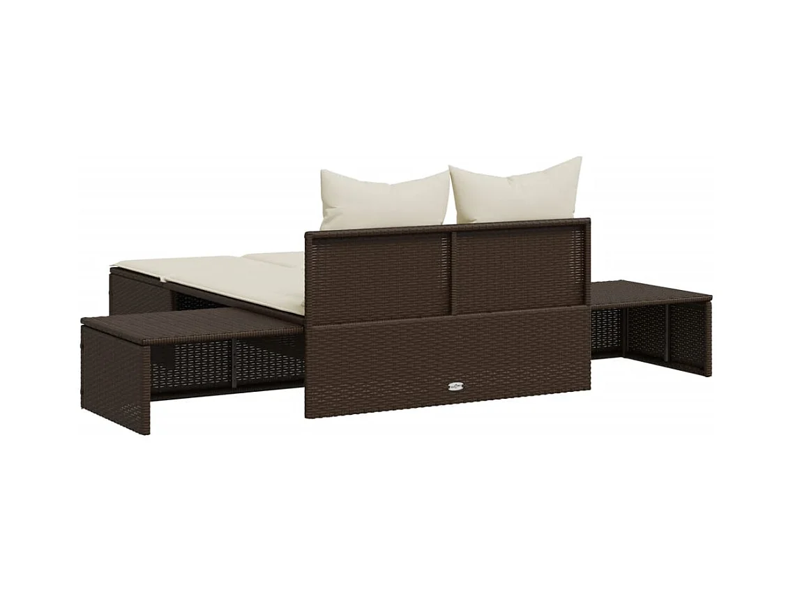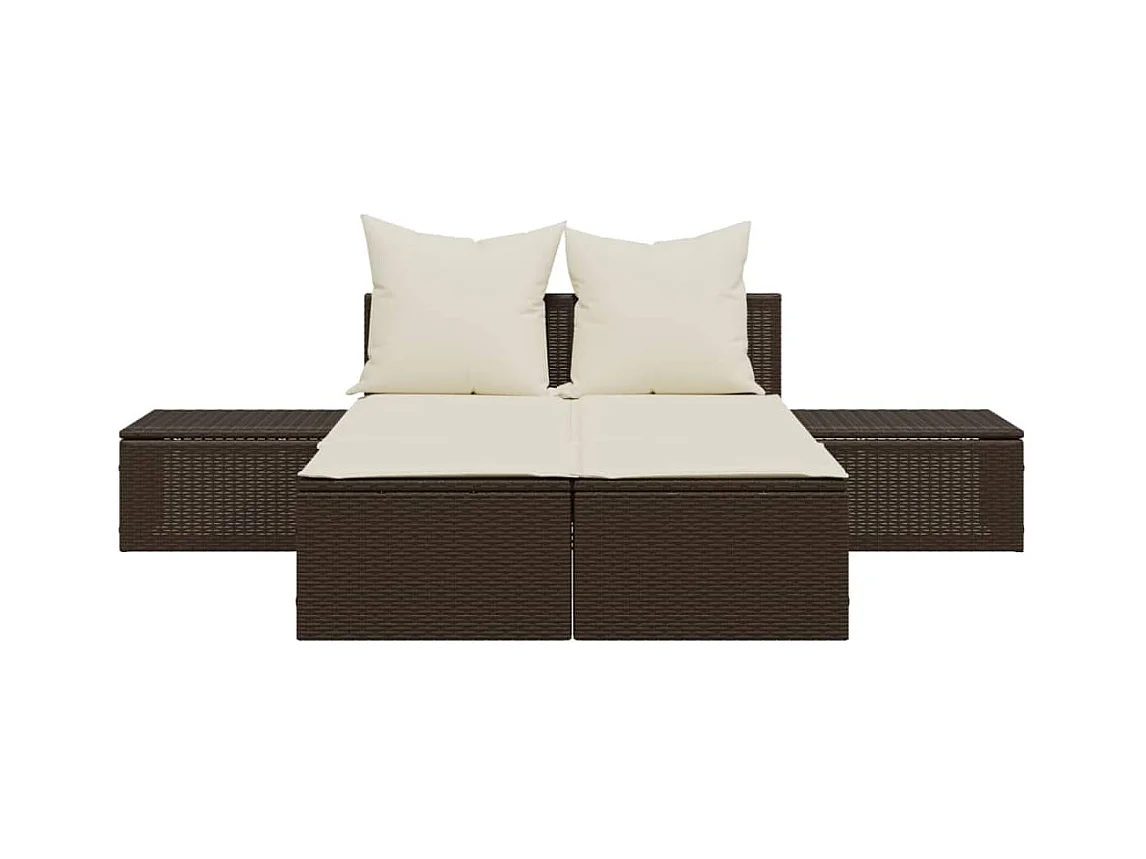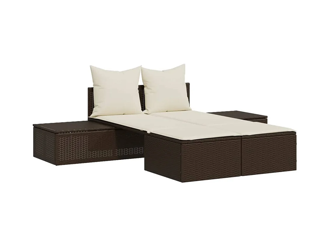 Dubbele chaise longue met bruine kunsthars rieten kussens