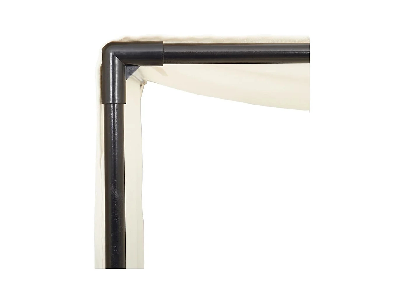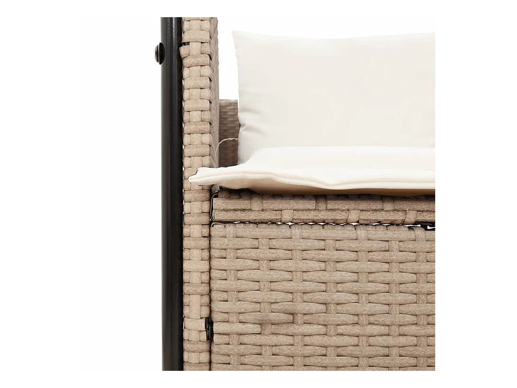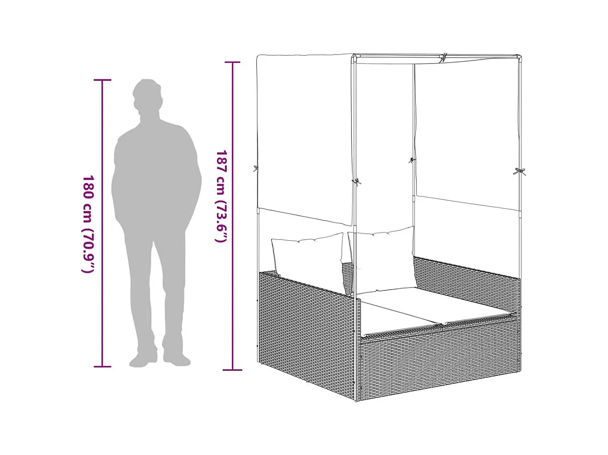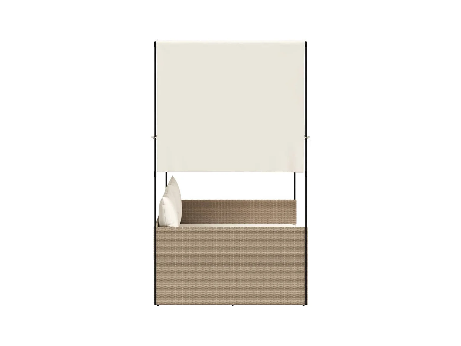 Dubbele chaise longue met dak en beige geweven harsgordijnen