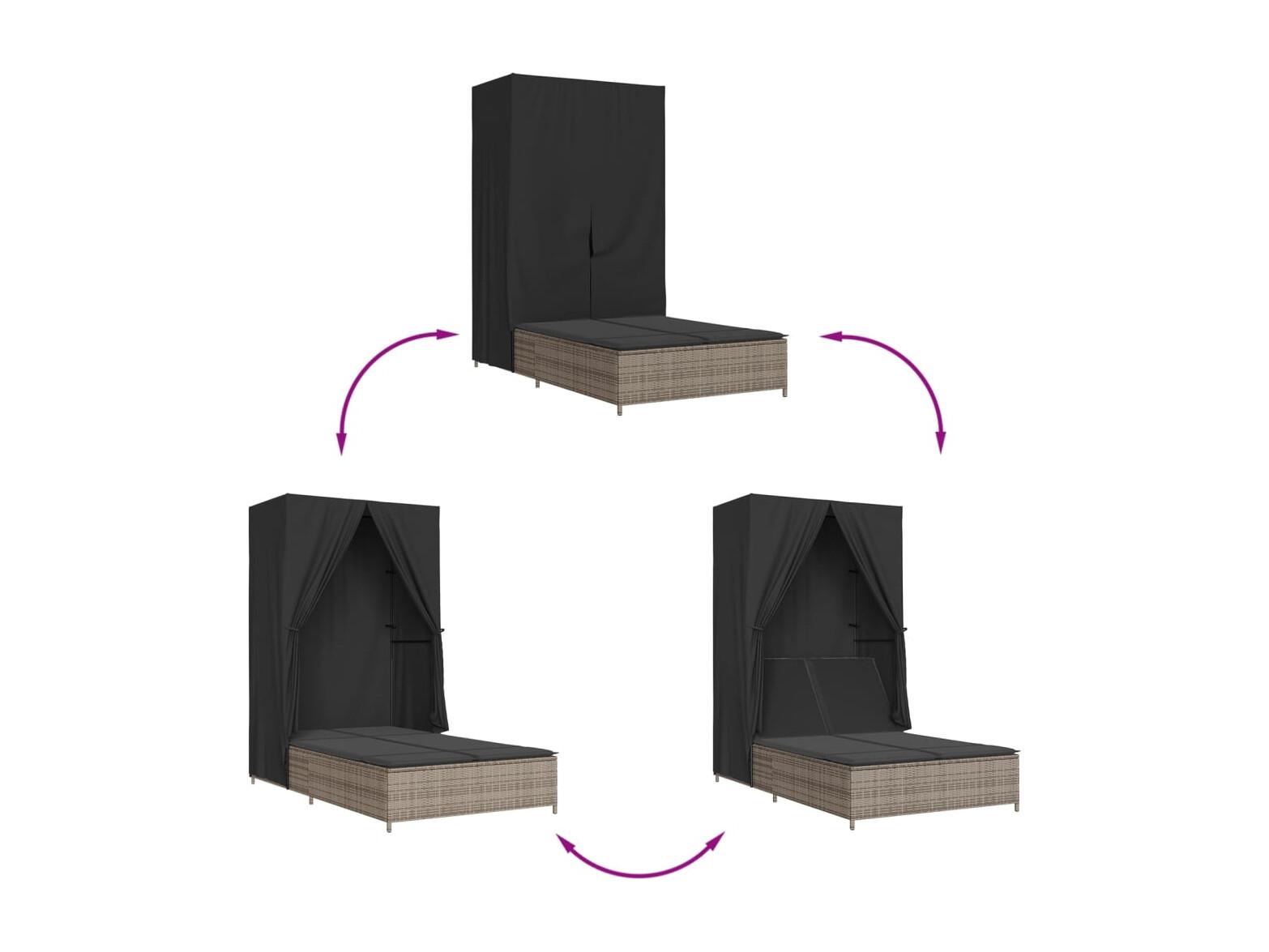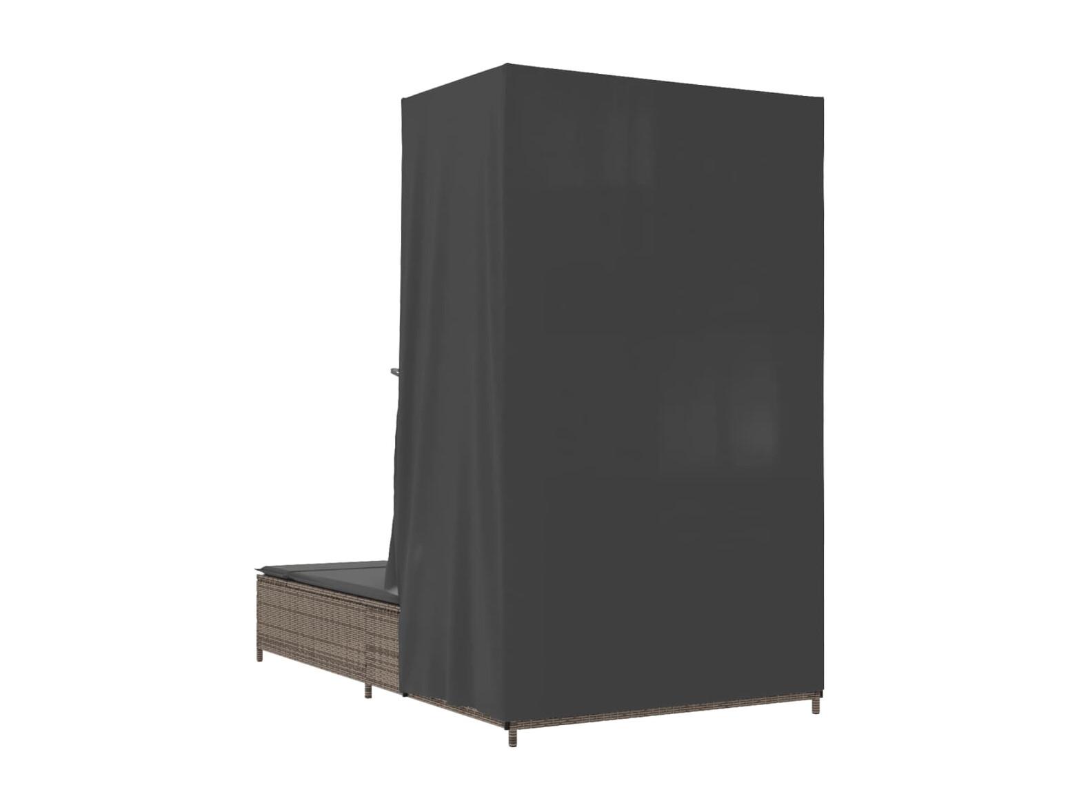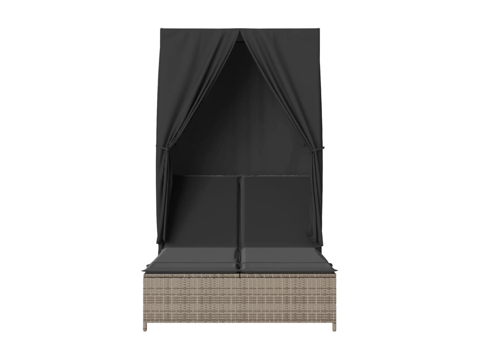 Dubbele chaise longue met dak en grijze geweven harsgordijnen