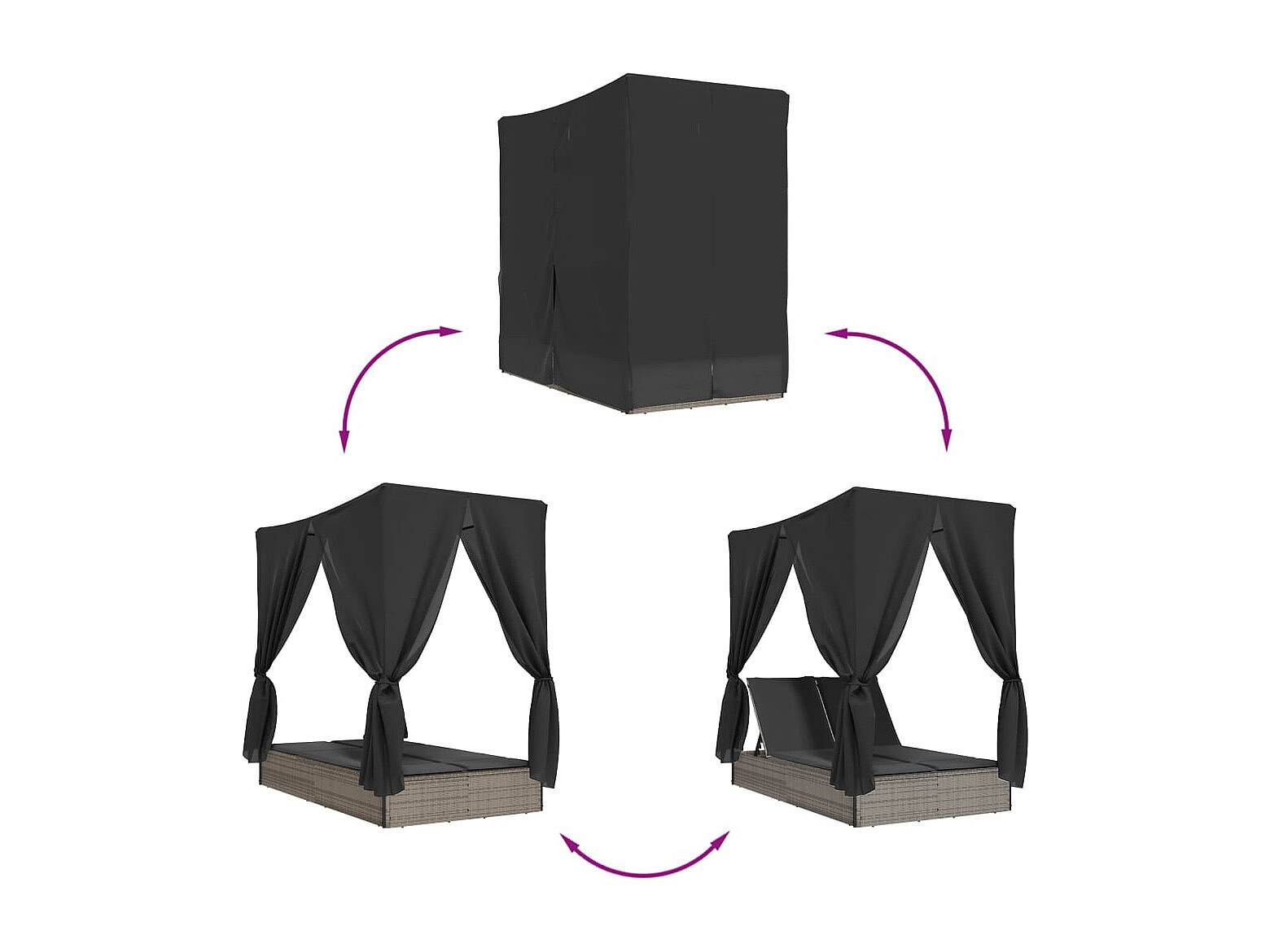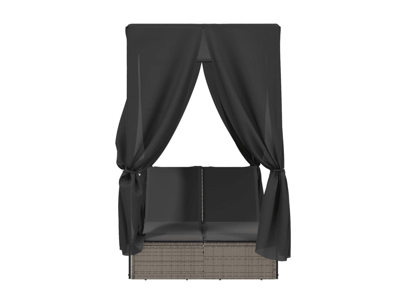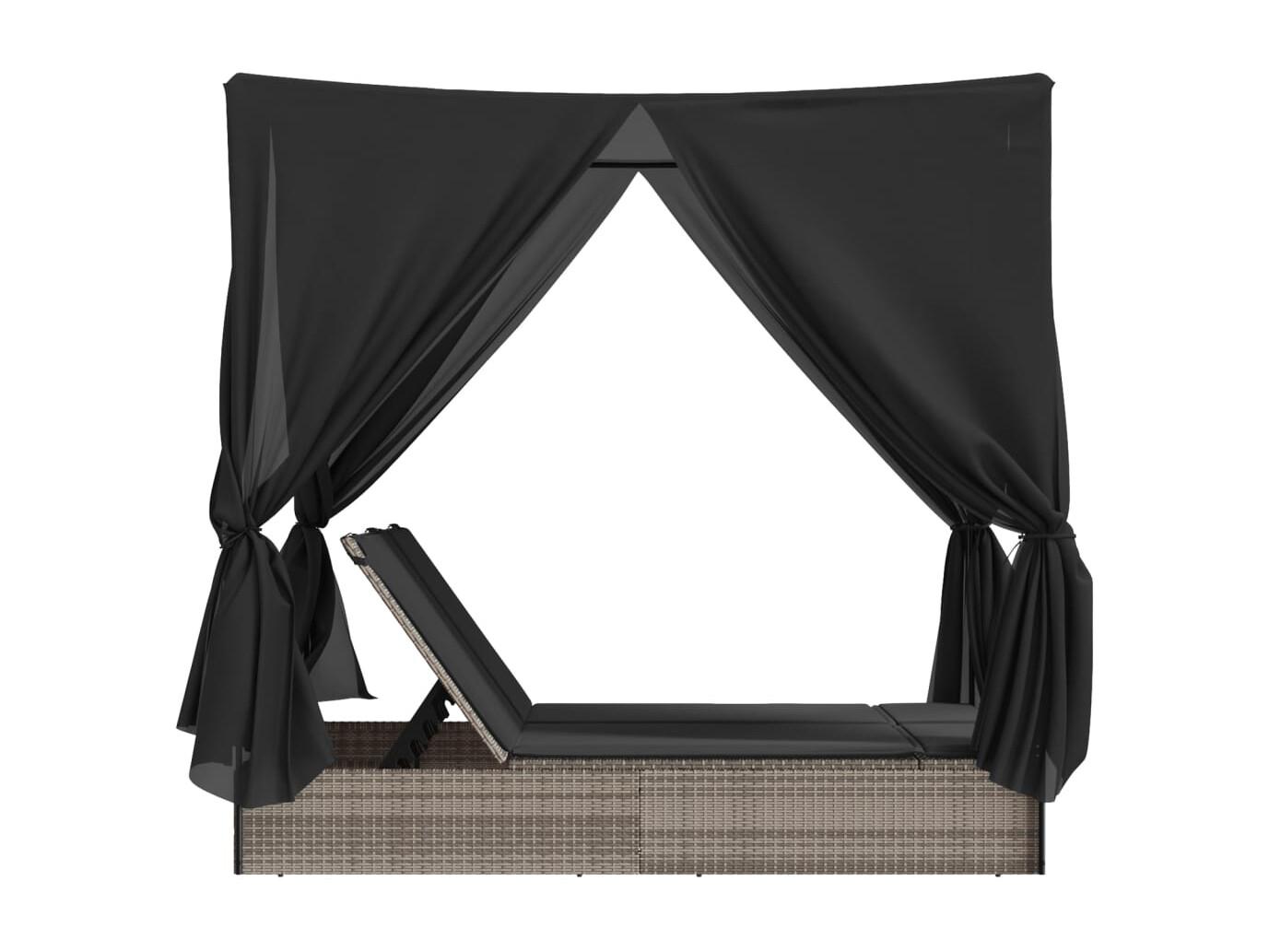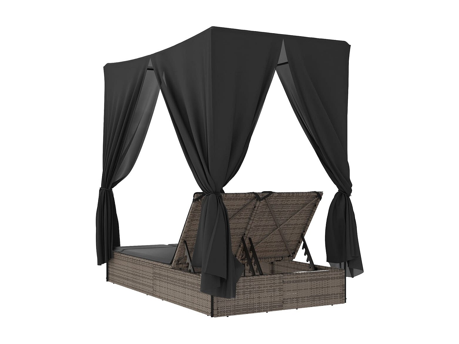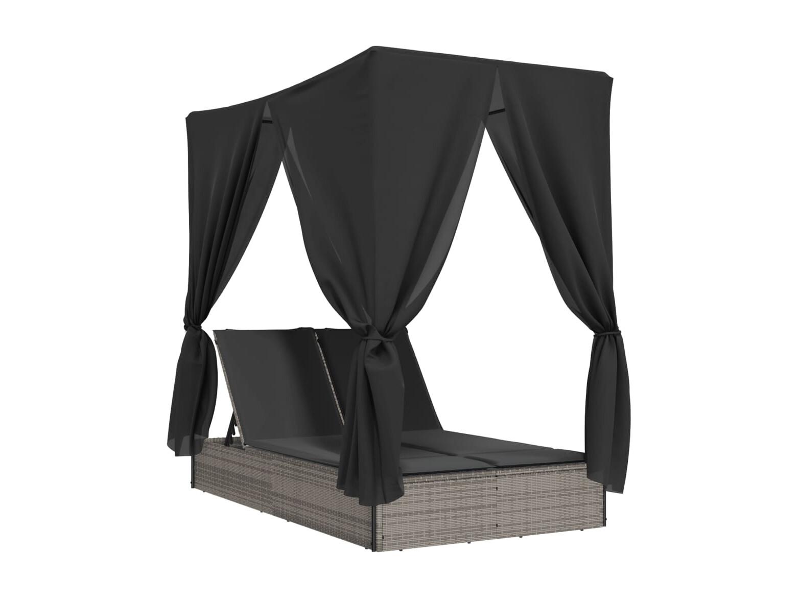 Dubbele chaise longue met dak en grijze geweven harsgordijnen