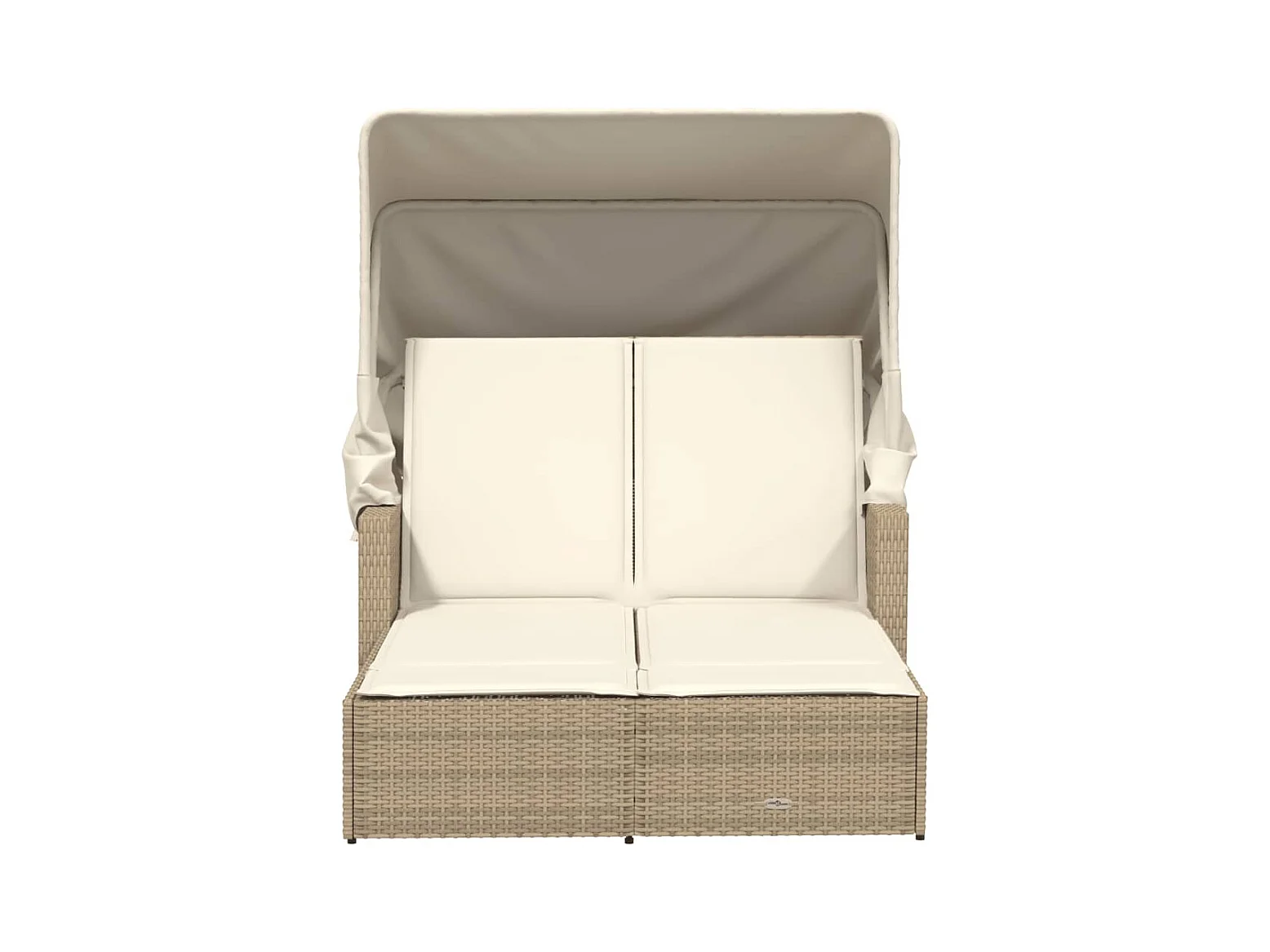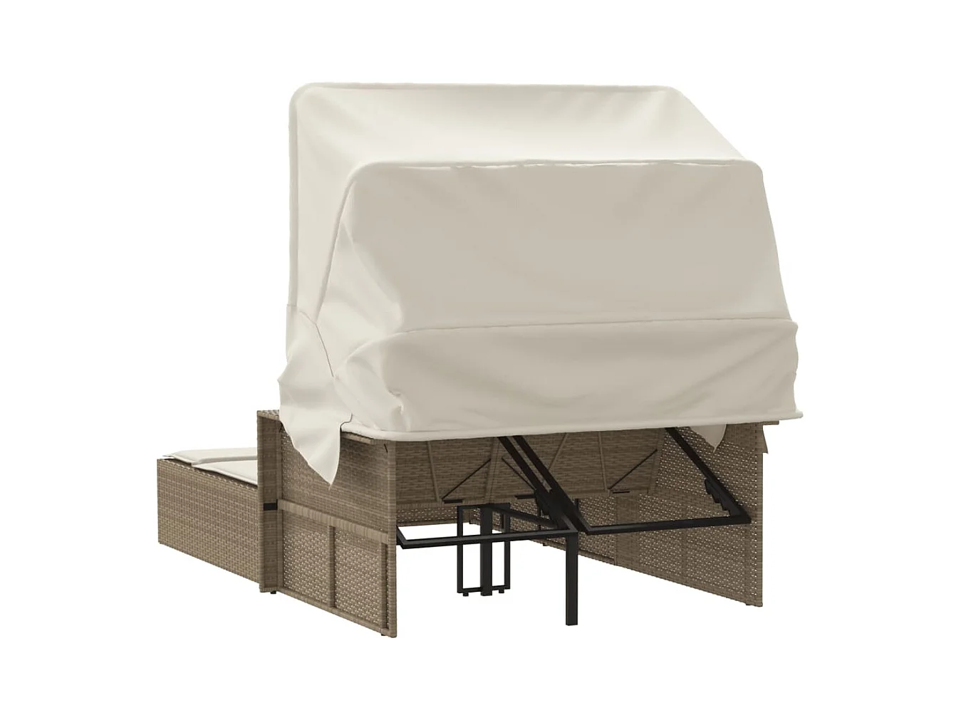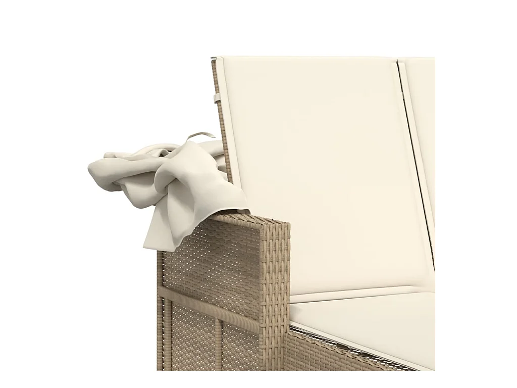 Dubbele chaise longue met hemel en beige polyrotan kussens