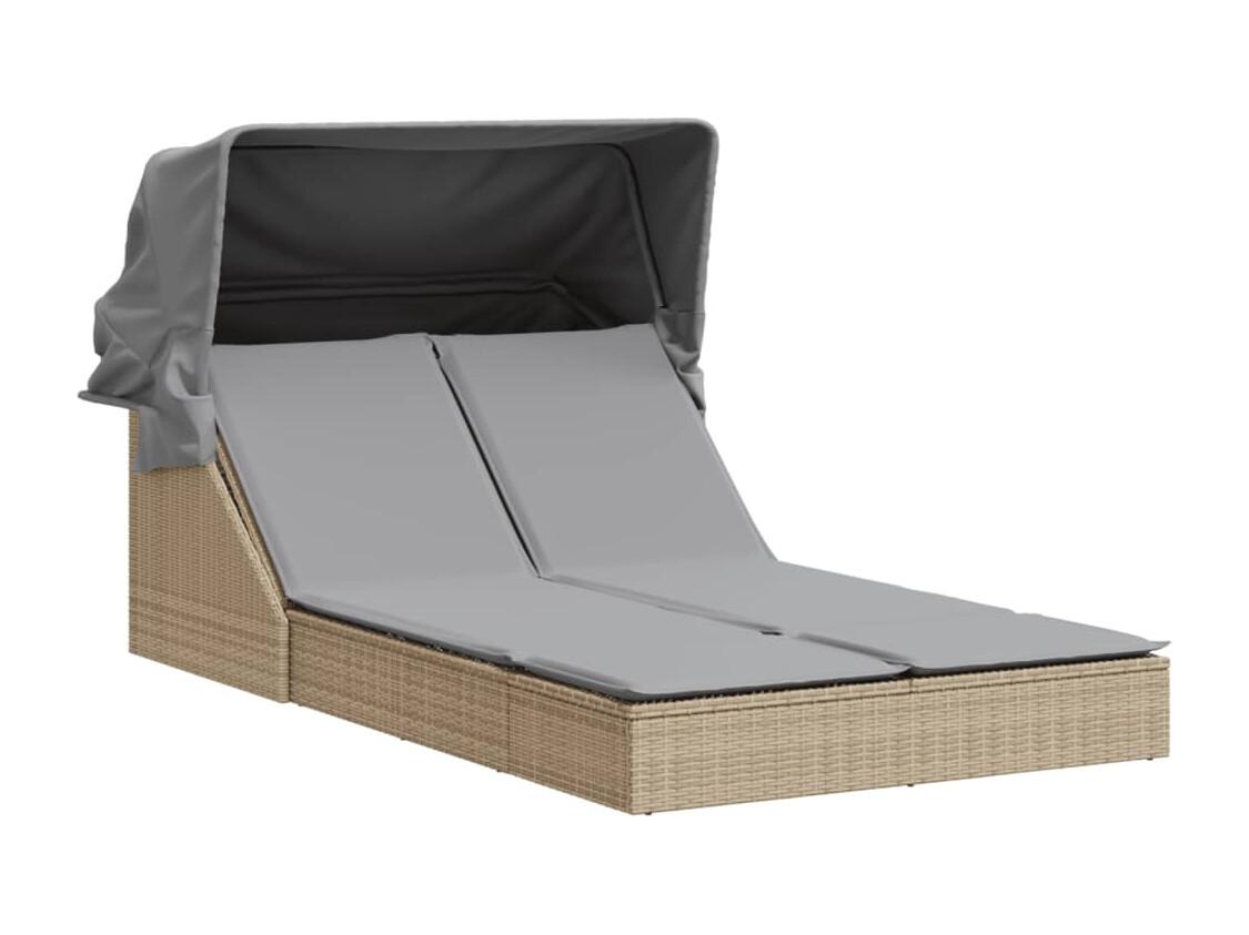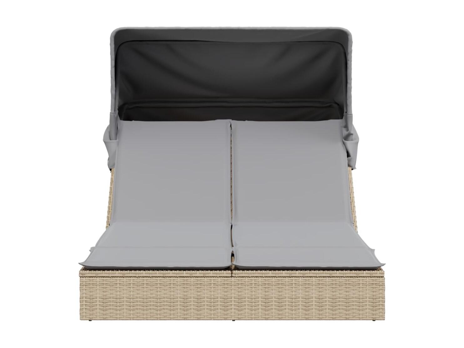 Dubbele chaise longue met hemel en beige polyrotan kussens
