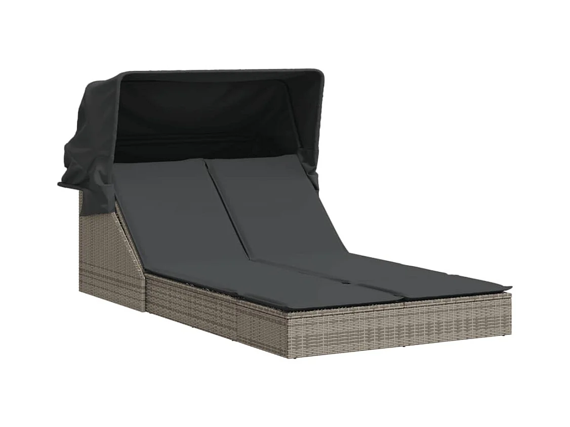 Dubbele chaise longue met grijze kunsthars rieten kussens