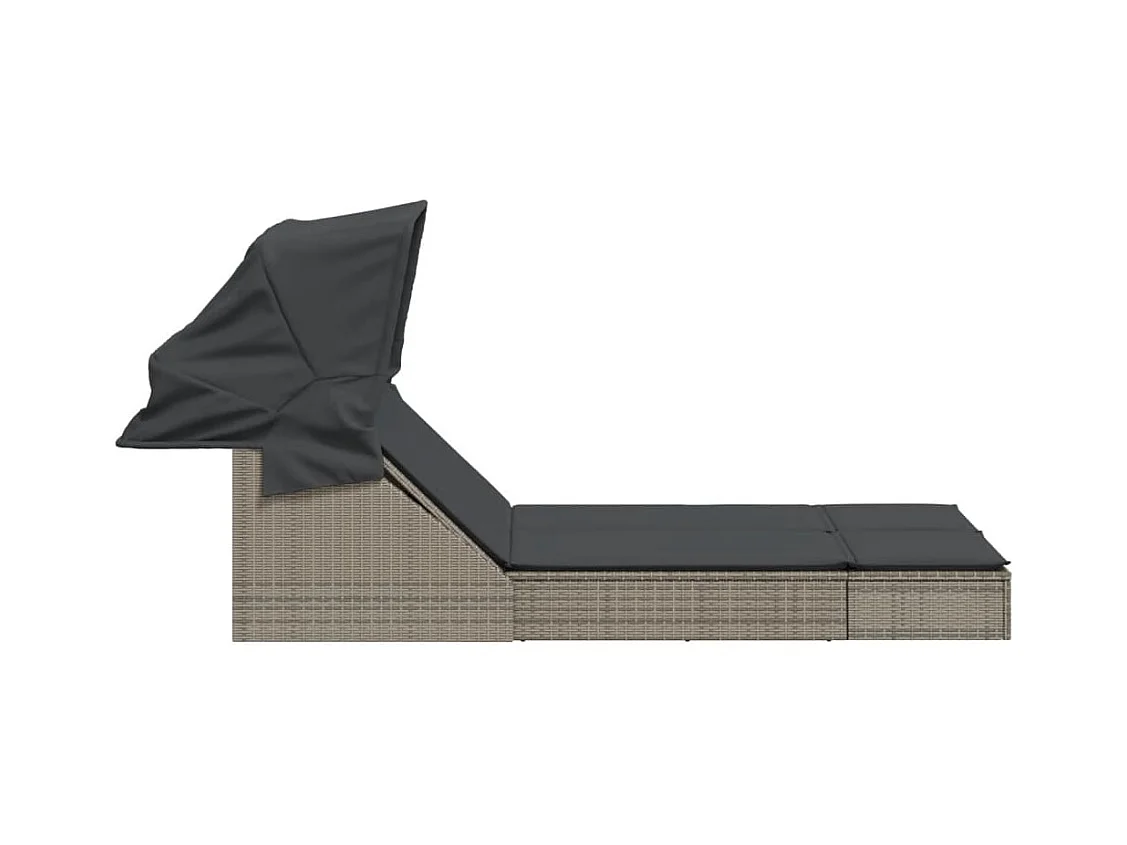 Dubbele chaise longue met hemel en lichtgrijze rotan kussens