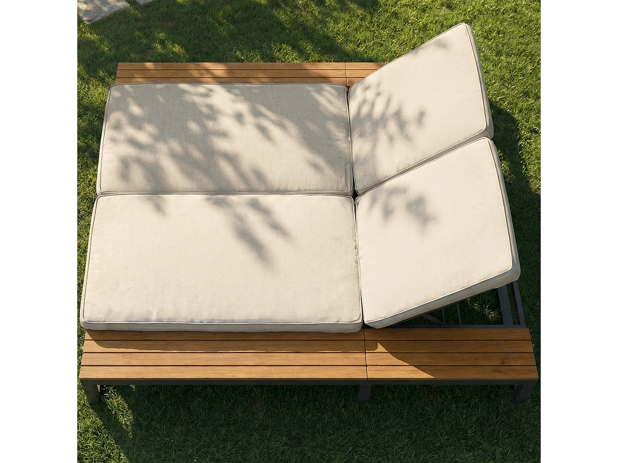 Dubbele ligstoel voor buiten - 184 x 159 x 73 cm - Daybed met planken - verstelbare rugleuning - metaal + hout - beige