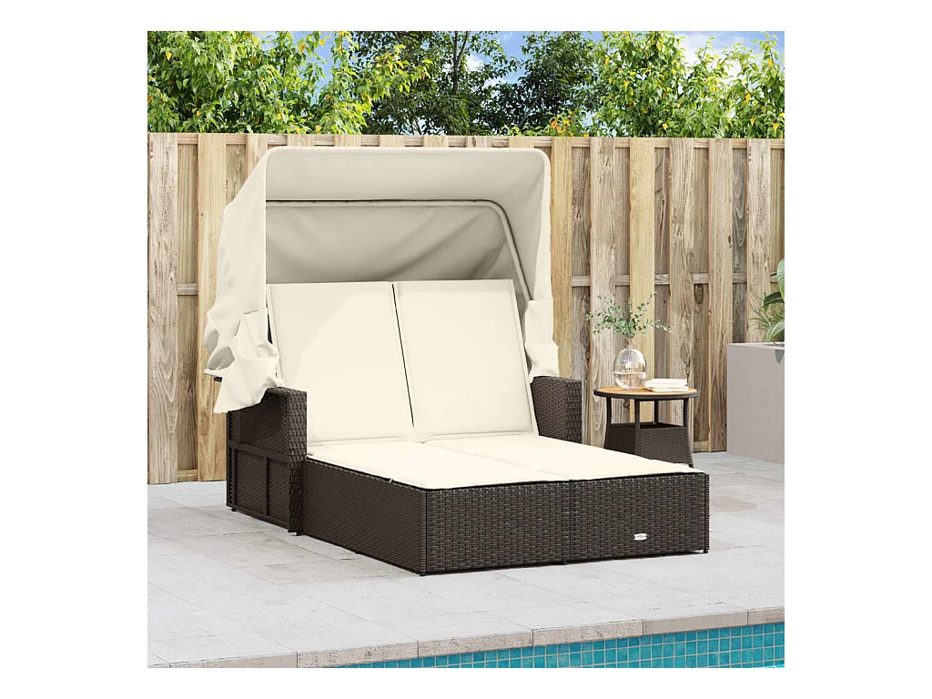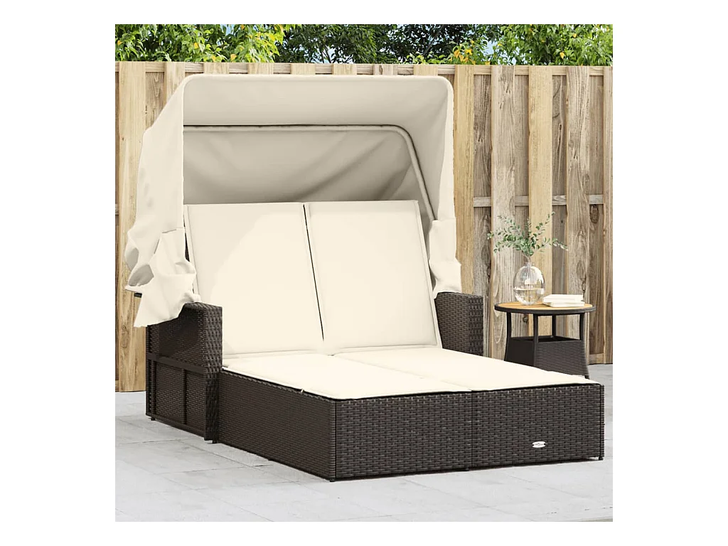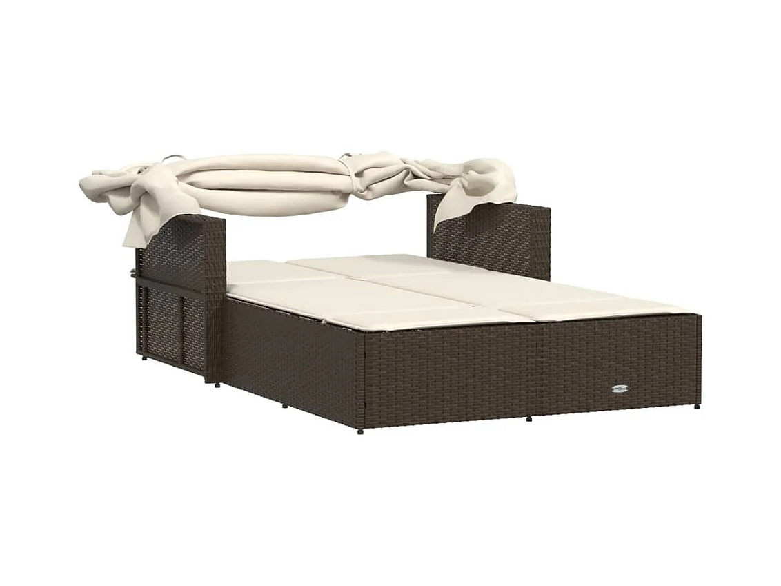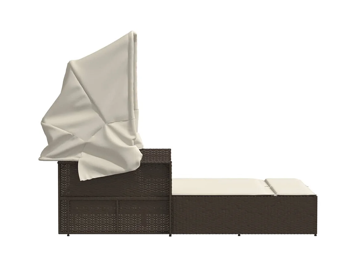 Dubbele loungestoel met baldakijn en bruine polyrotan kussens