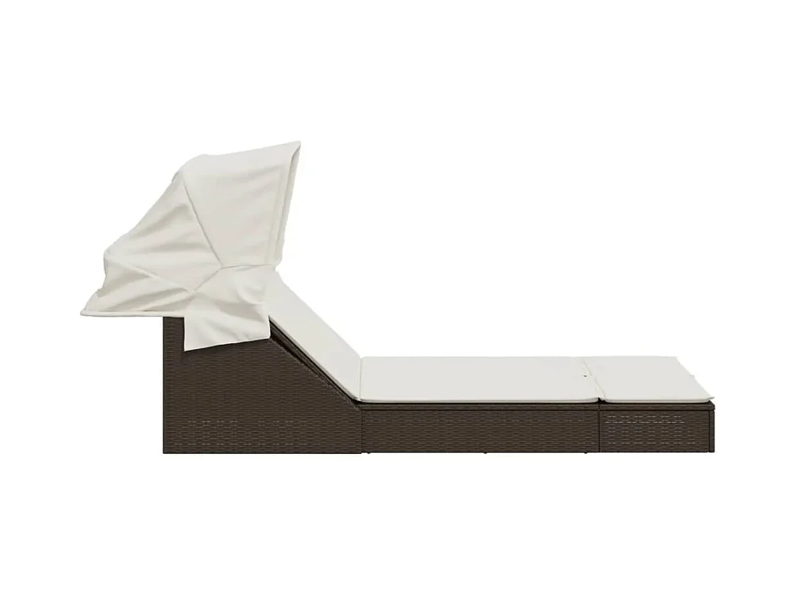 Dubbele loungestoel met baldakijn en bruine polyrotan kussens
