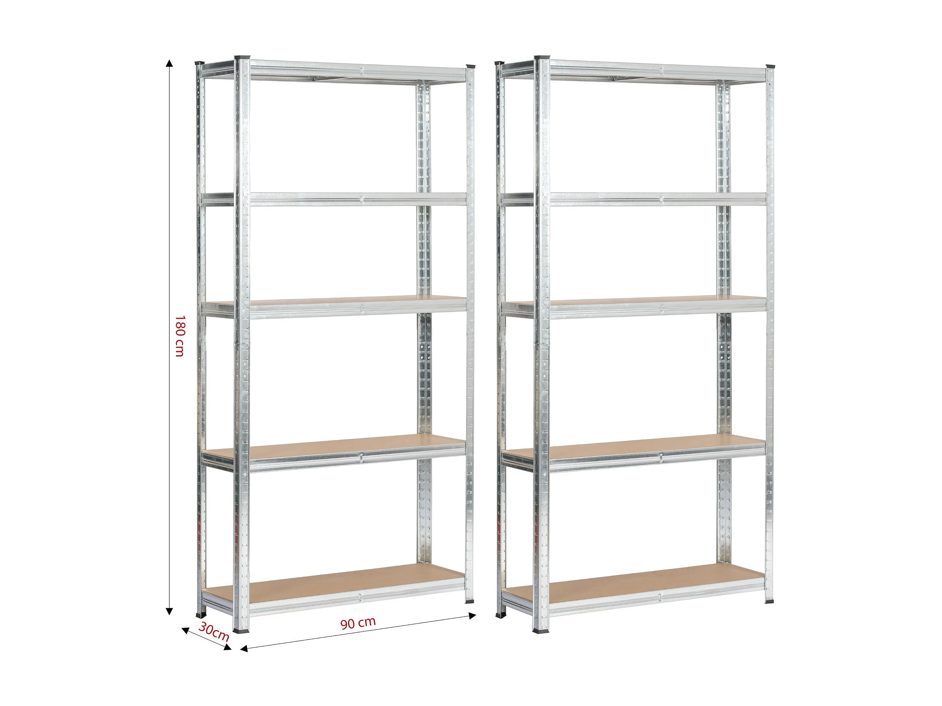Dubbele Metalen Rekken 90x30x180 cm in Zilver – Staande Stalen/MDF Opbergrekken – 10 Planken – Zelfmontage – Max. 175 kg per Plank – Industriële Stijl
