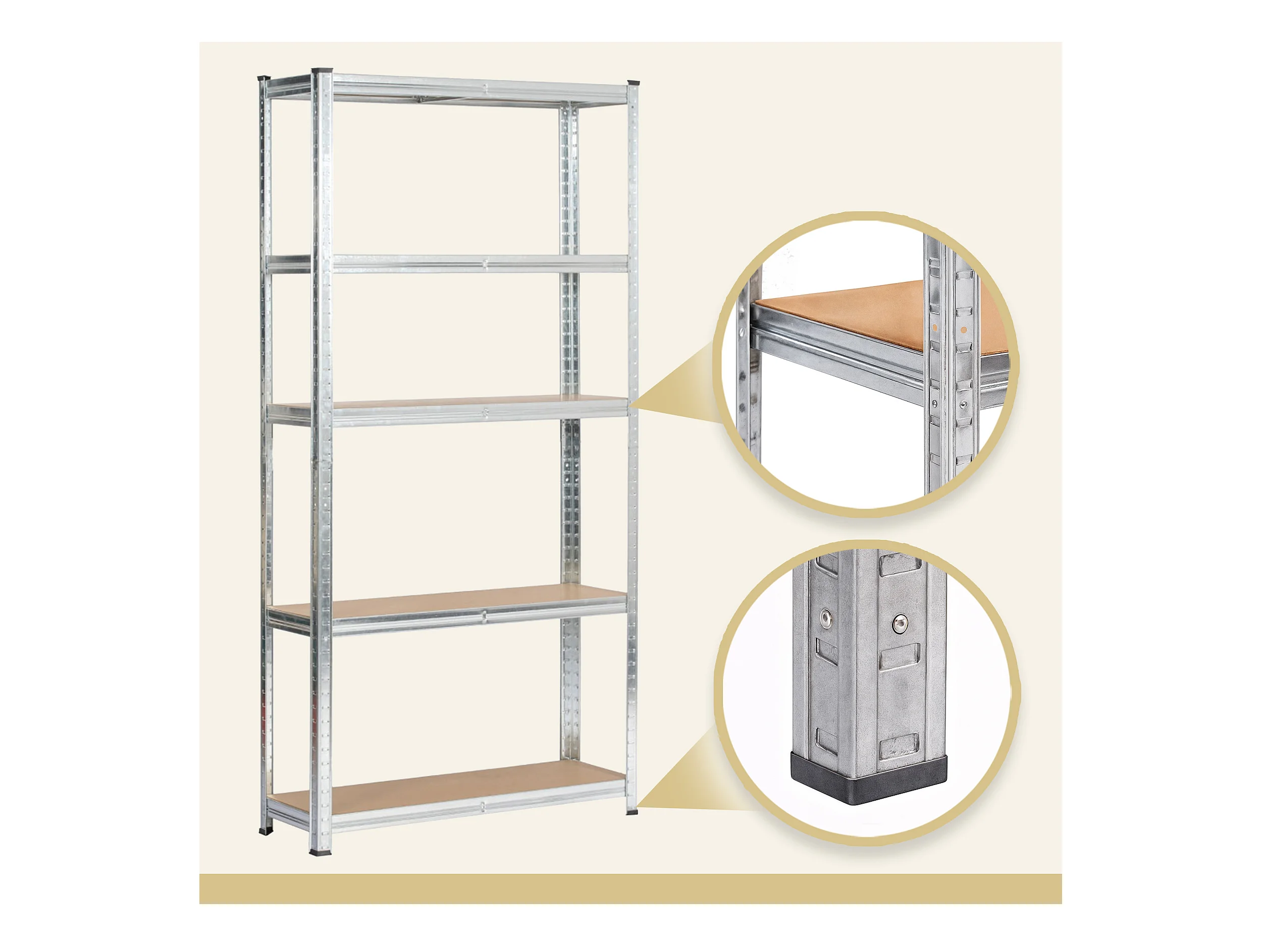 Sierkiaal Stalen Opslagrek 90x40x180 - 5 Planken - Galvaniseerd Zilver - Robuust Metaal en MDF - Max. Draagvermogen 175 kg