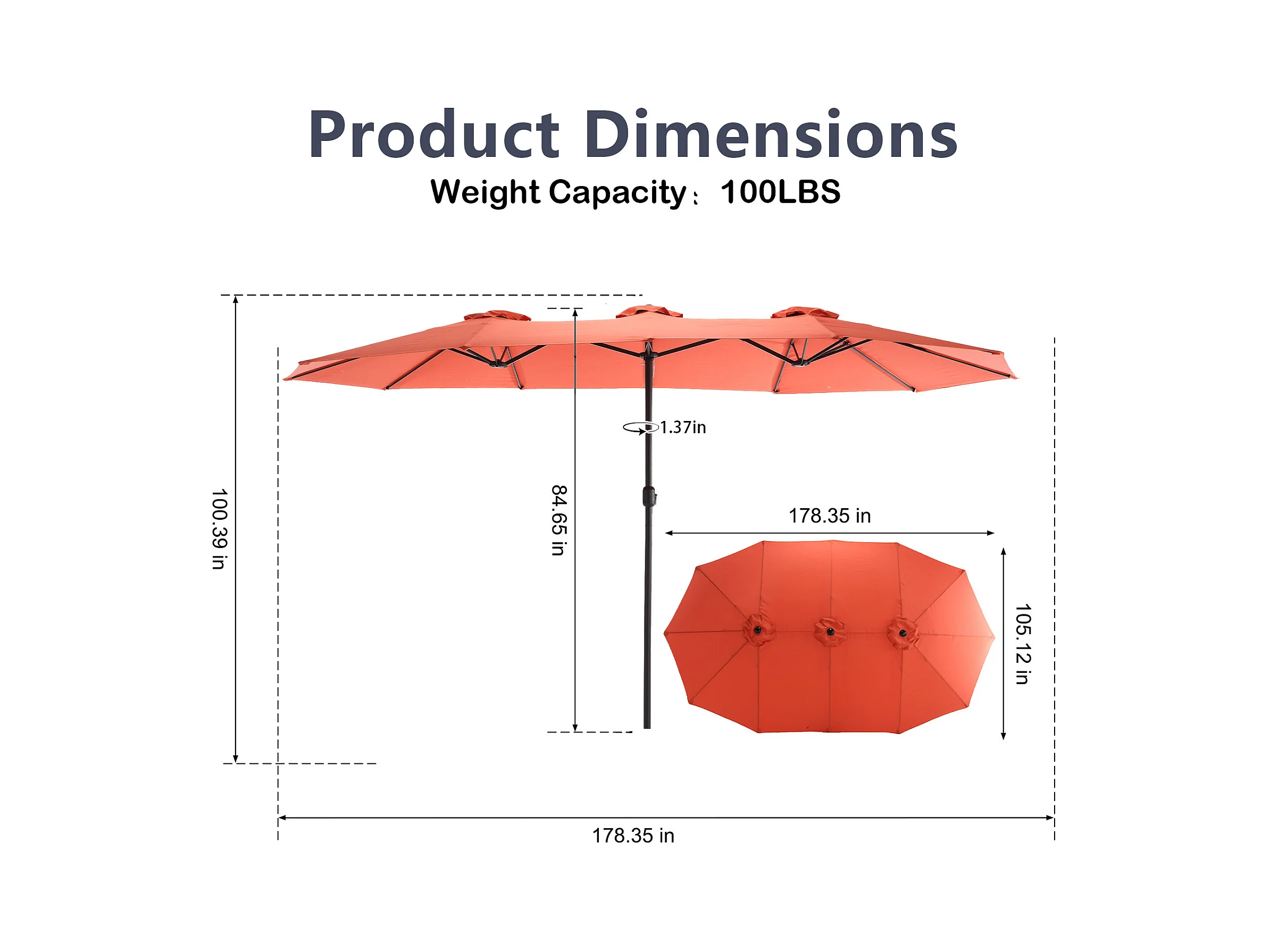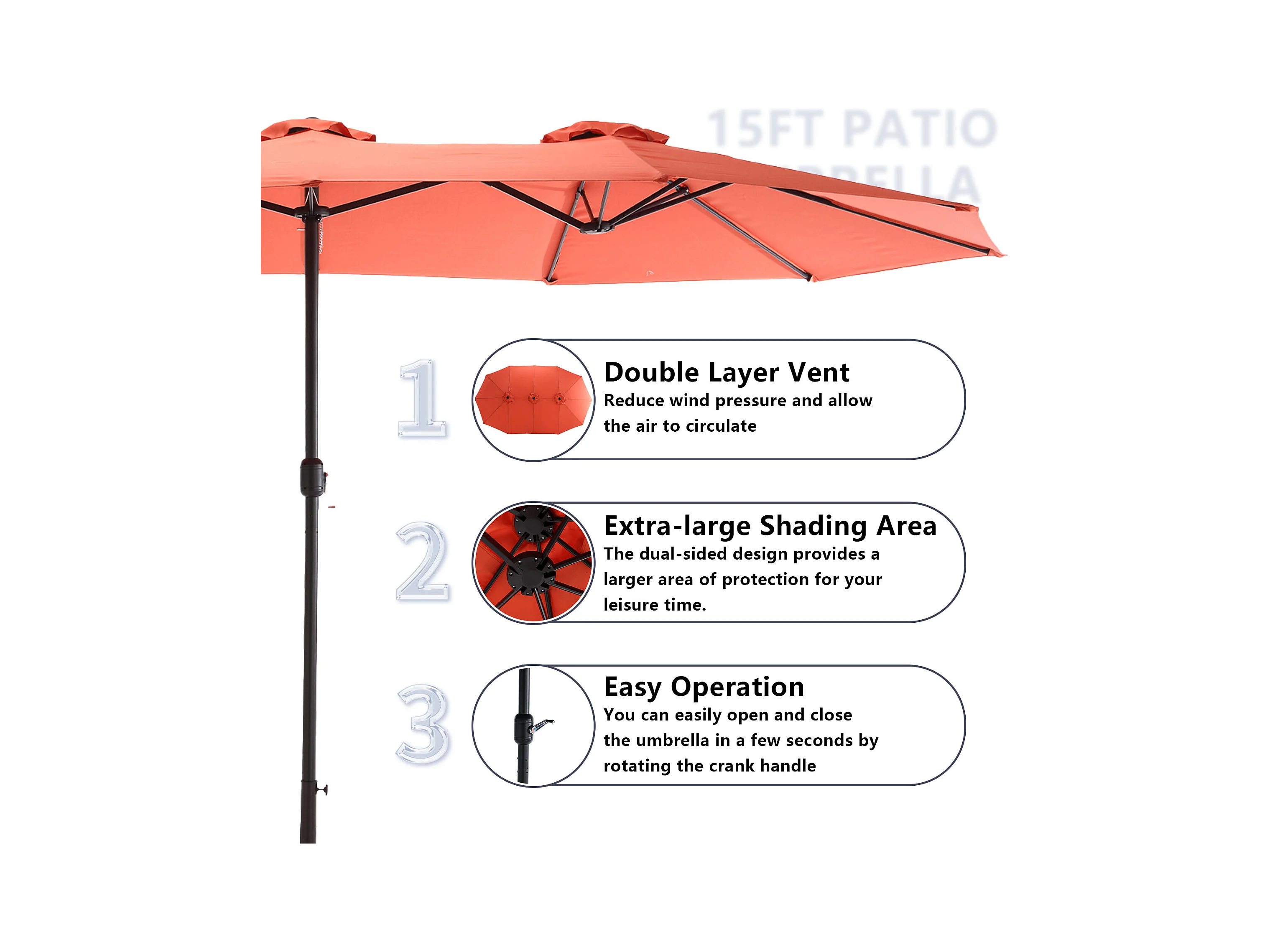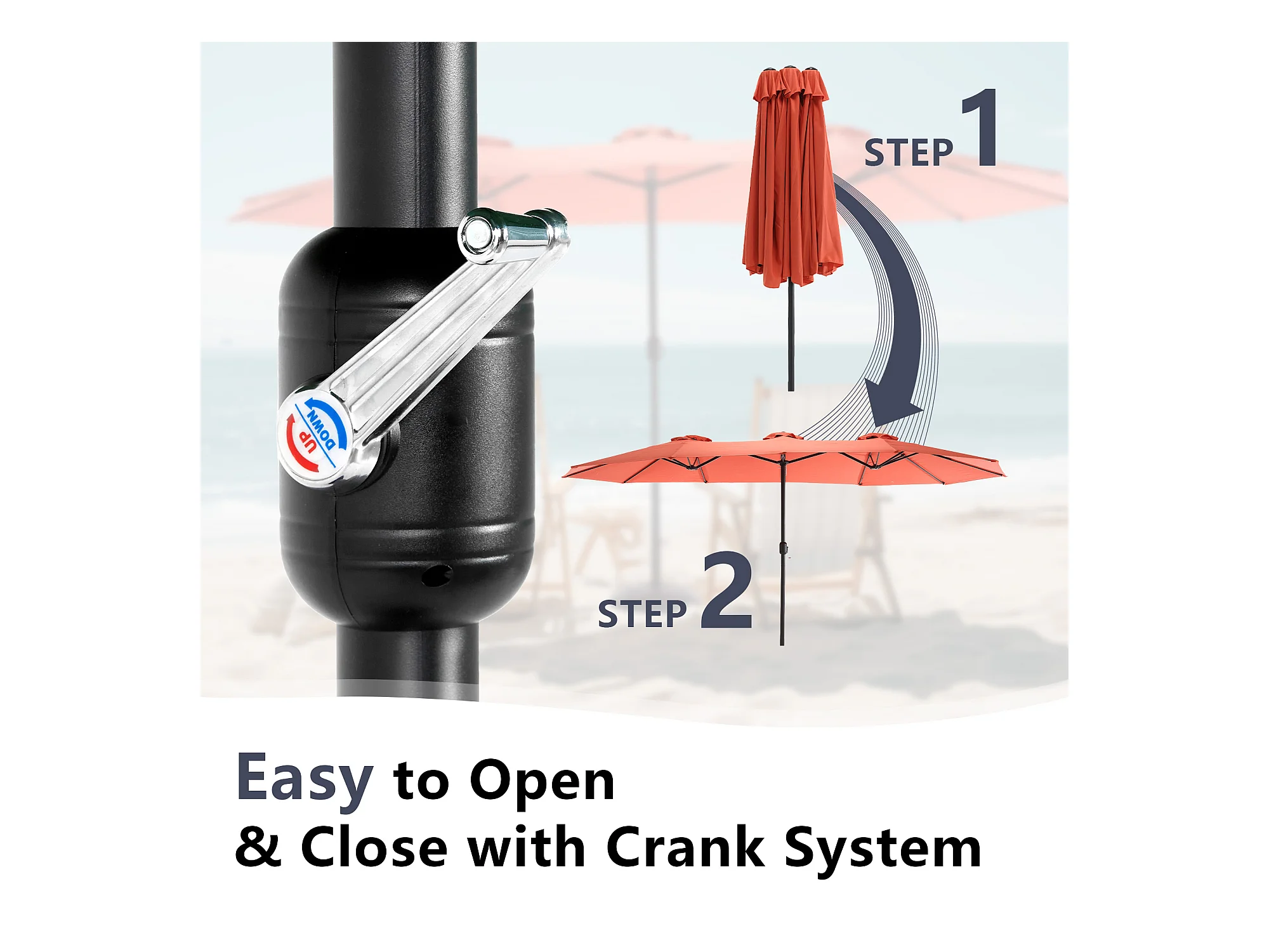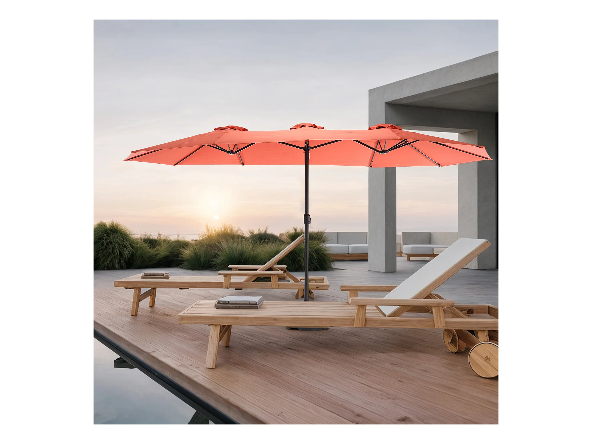 Dubbele parasol (4,53m x 2,67m) - Zwenkbare parasol - Zwengelsysteem - Perfect voor tuin of terras - Optimale zonwering