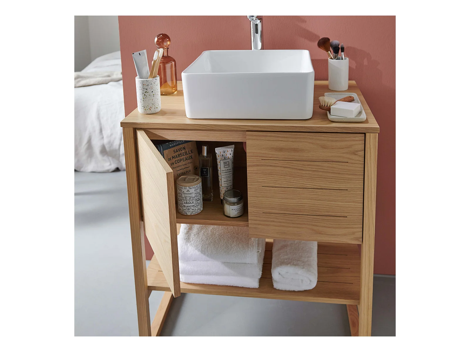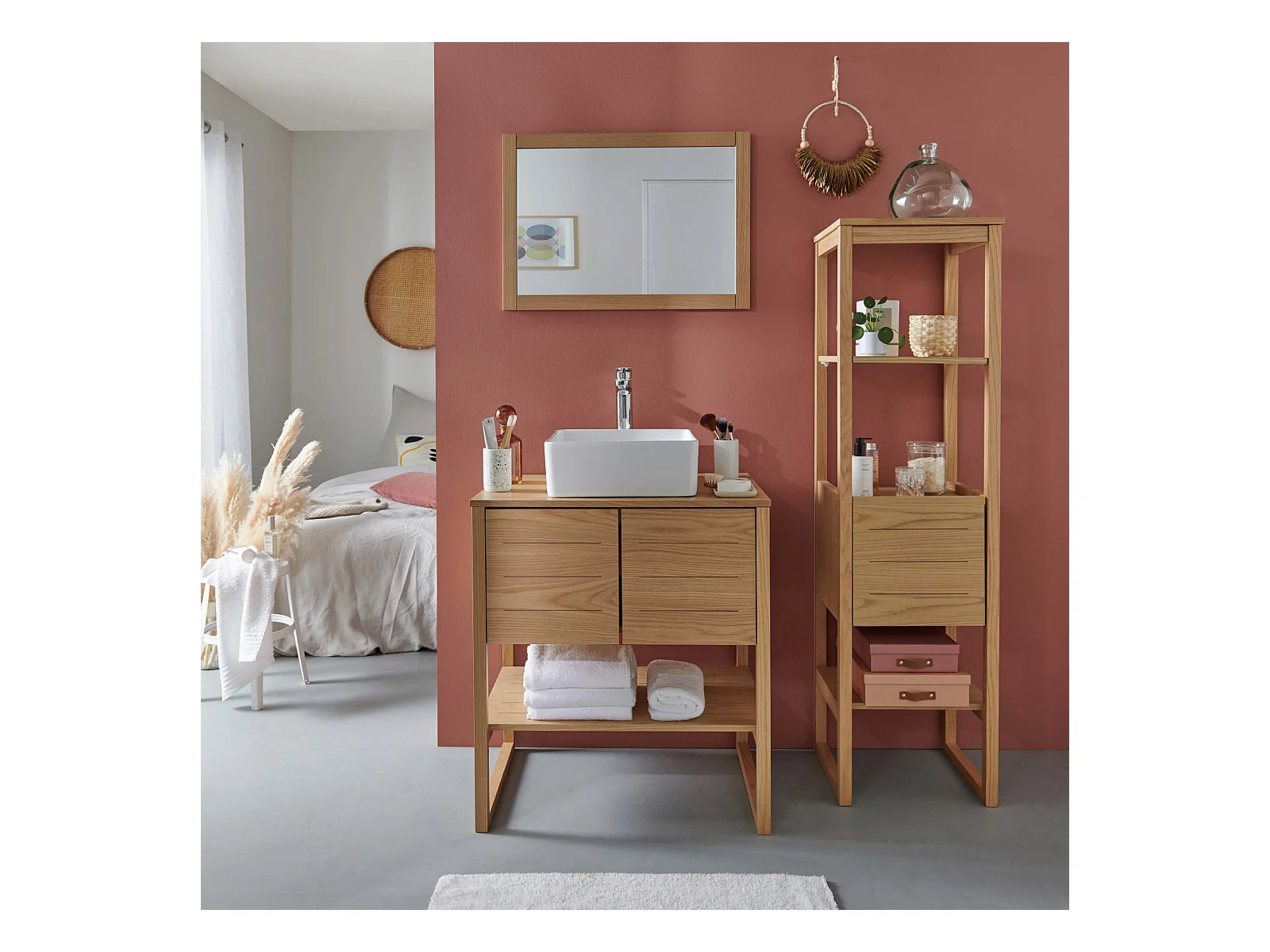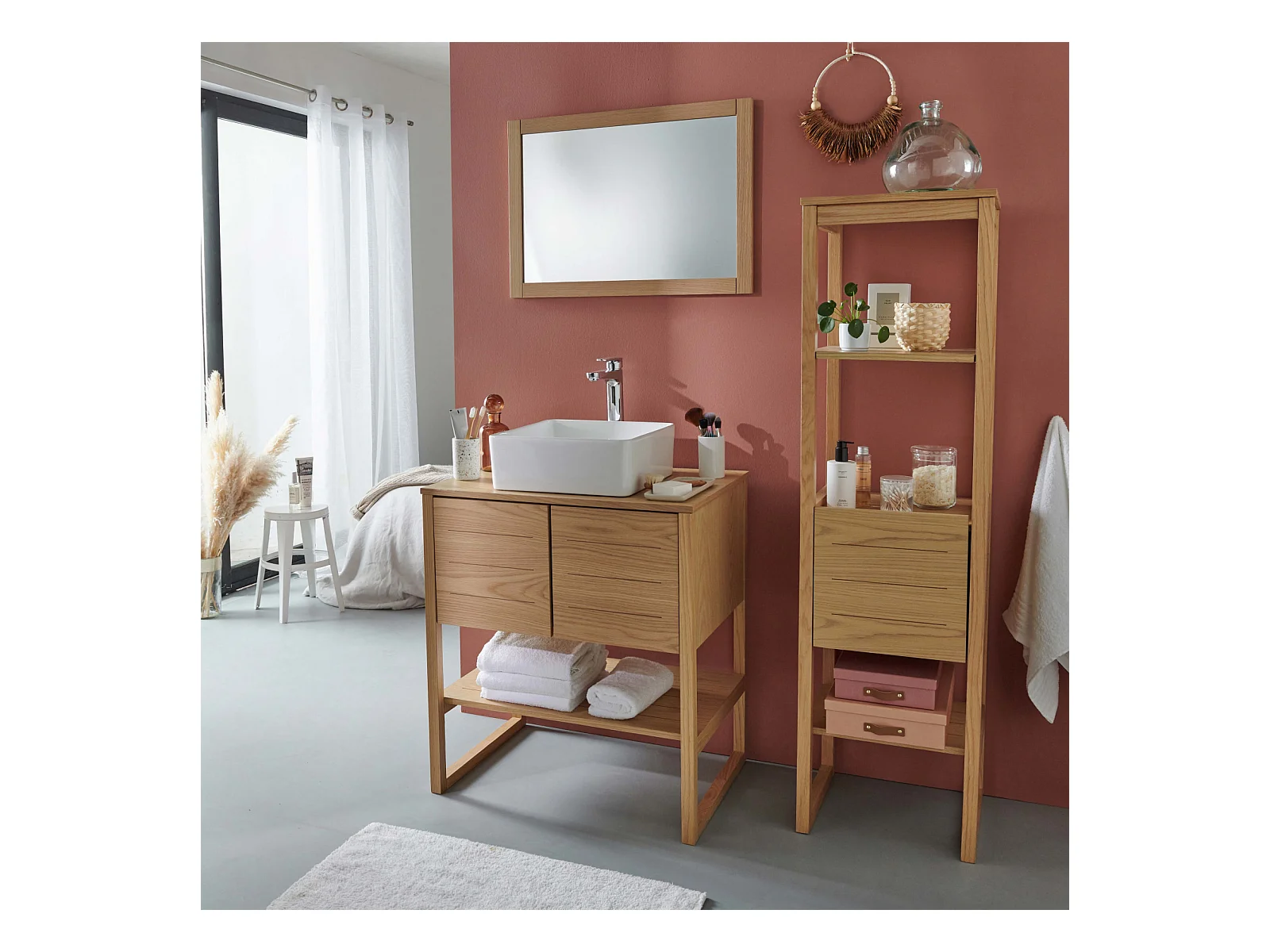 Dmele badmeubel, Badkamerkast met 2 deuren, Hangkast met plank en spiegel, wastafel niet inbegrepen, 80x45h64 cm, Eiken