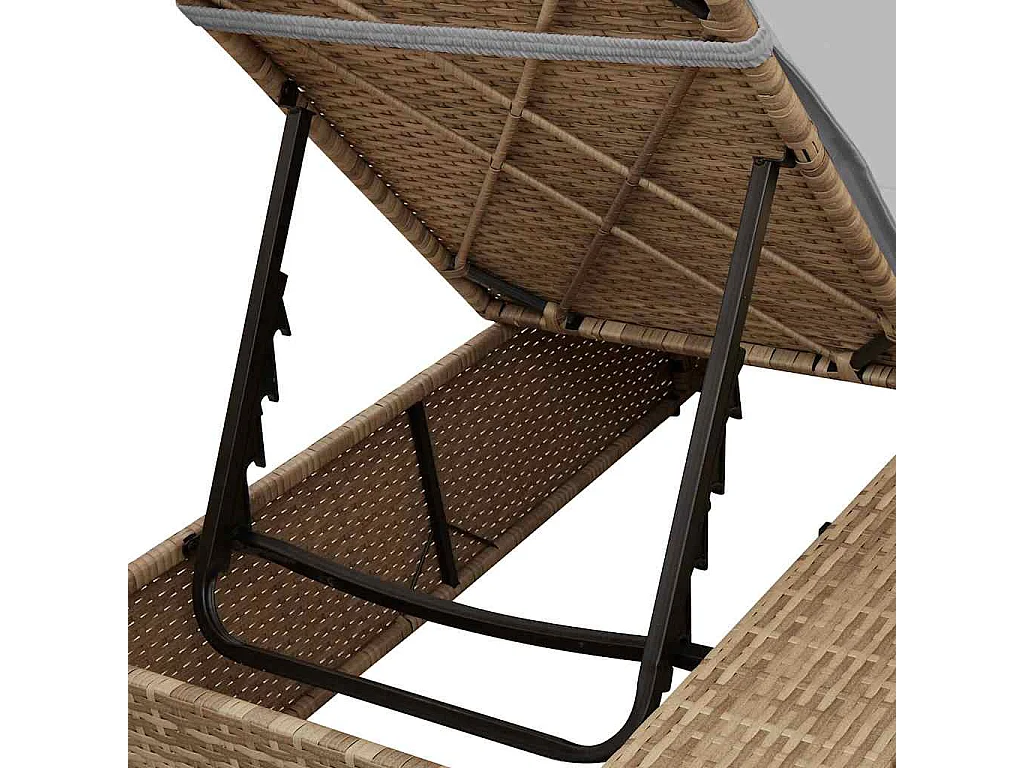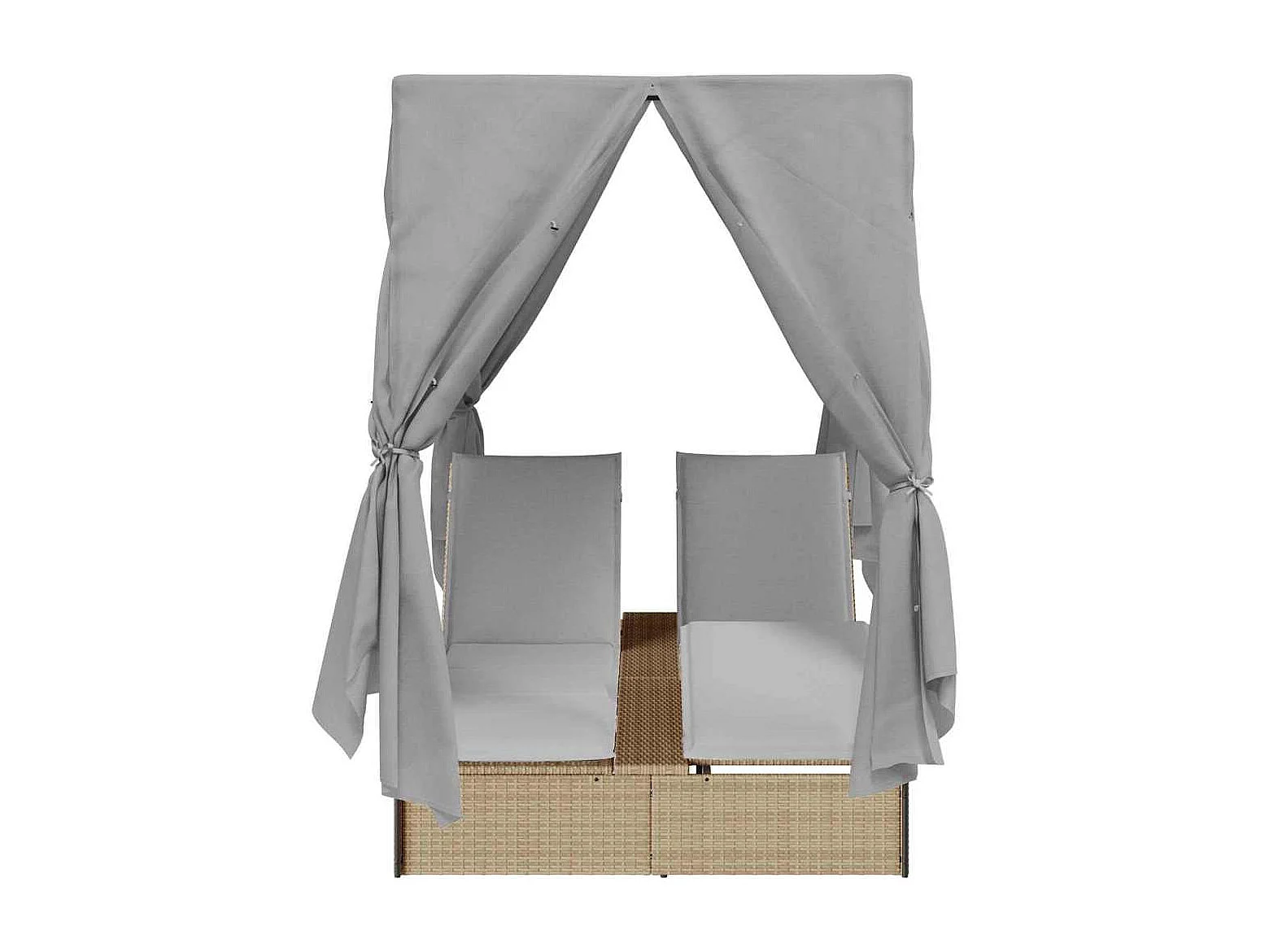 Dubbele Zonnebed met Dak Beige 205 x 129 x 200 cm PE riet