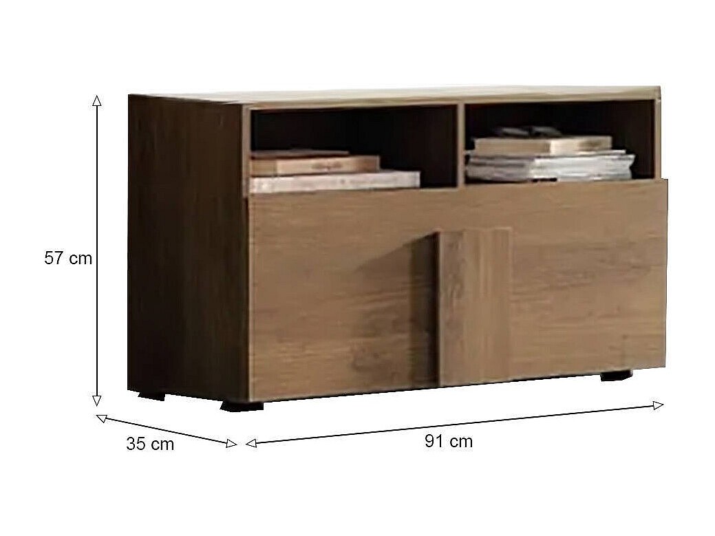 SCARPIERA - Schoenenrek, Multifunctionele entreekast, Schoenenkast, Made in Italy, 91x35 h57 cm, Eikenhout. STRUCTUUR EN GEBRUIK - Modern en ruimtebesparend schoenenrek, ideaal voor het opbergen van elk type schoenen - Multifunctioneel, elegant en functioneel meubelstuk, perfect voor plaatsing in de entree, gang, wasruimte, badkamer, kast, garage, slaapkamer , balkon, terras of entree - Multifunctionele kast, ook perfect voor het opbergen van voorwerpen en gereedschap - Praktisch en netjes schoenenrek, een comfortabel toevluchtsoord voor uw schoenen, ontworpen om de orde en elegantie in uw entree te behouden. MADE IN ITALY - Het artikel wordt geproduceerd in Italië, met gebruik van de beste materialen en de hoogste kwaliteit en aandacht voor detail - De zorg voor de productieprocessen staat synoniem voor betrouwbaarheid, weerstand en verfijning voor een essentieel en kostbaar ontwerp - The Made in Italië is certificering een garantie voor volledige naleving van de regelgeving van de Europese Unie. TECHNISCHE EIGENSCHAPPEN - Veelzijdig meubelaccessoire, ontworpen voor eenvoudige integratie met ander meubilair - Stevige verpakking, ontworpen voor e-commerce - Materiaal: FSC-gecertificeerd laminaat, Metaal - Extra informatie: Eén vouwdeur met twee interne compartimenten - Twee compartimenten met open opbergruimte - Metalen scharnieren - Gedemonteerd - Paneeldikte 16 en 22 mm AFMETINGEN IN CM - Schoenenrek: Lengte: 91 Breedte: 35 Hoogte: 57