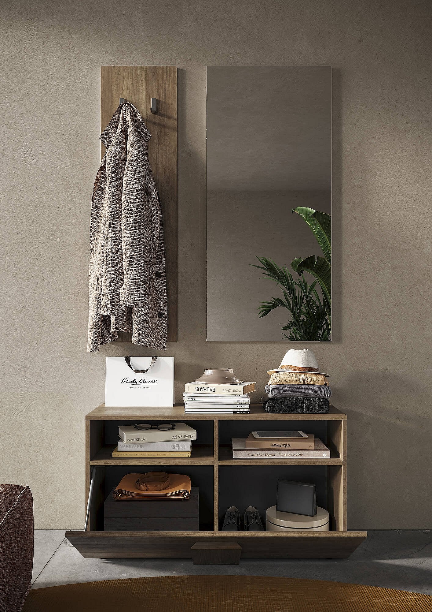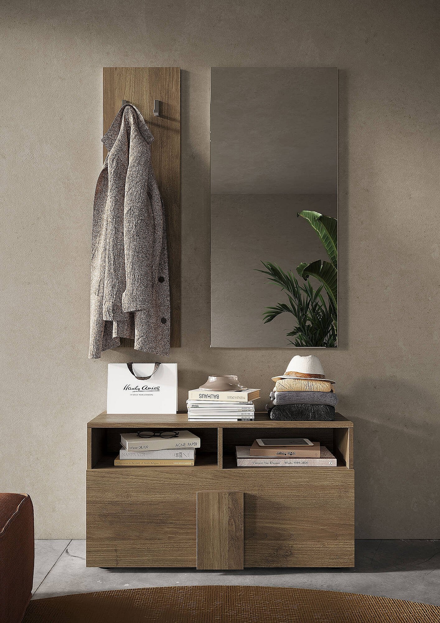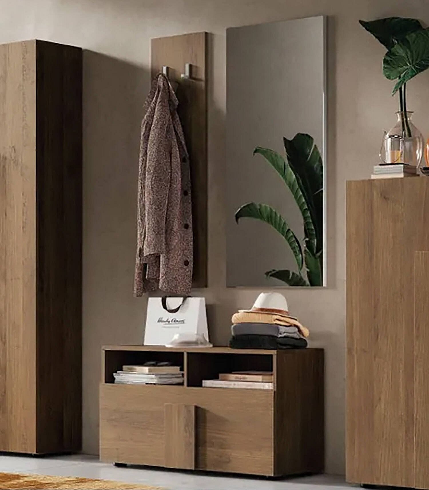 Dvanvlee schoenenrek, Schoenenkast, Multifunctionele entreekast, Schoenenkast, Made in Italy, 91x35 h57 cm, Eikenhout