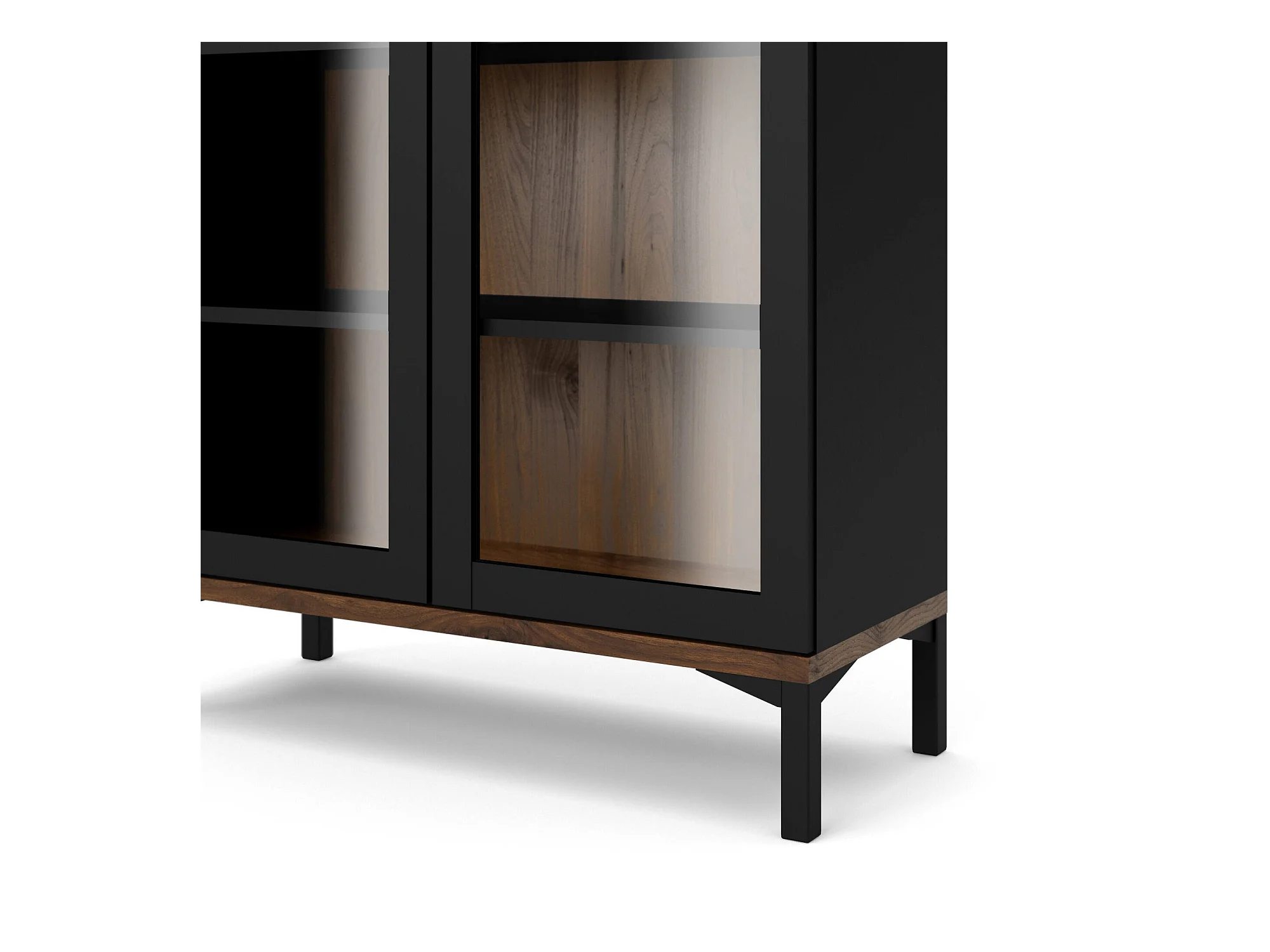 Vitrine 2 deuren en gelaagd zwart met raam 97x122 cm