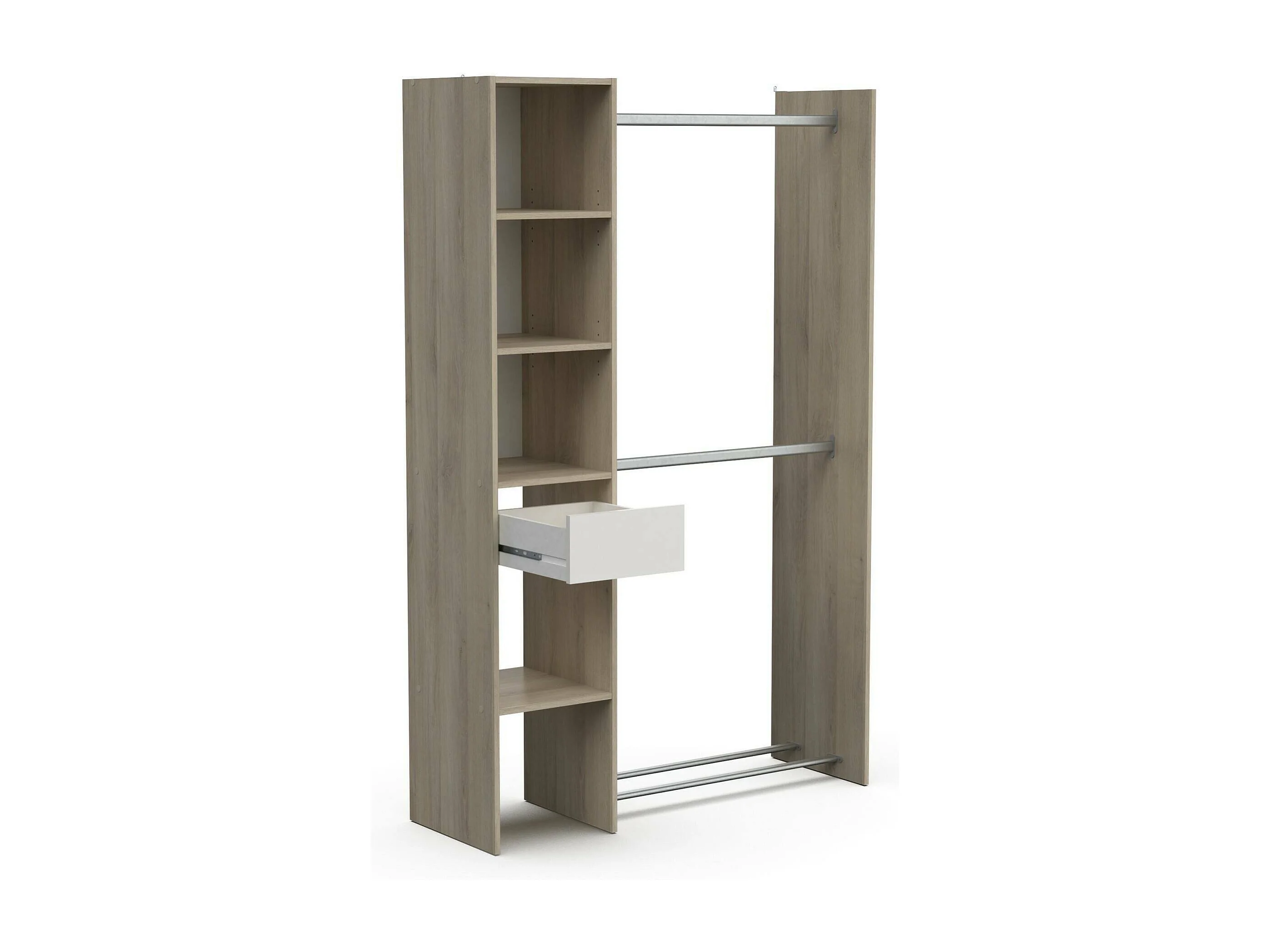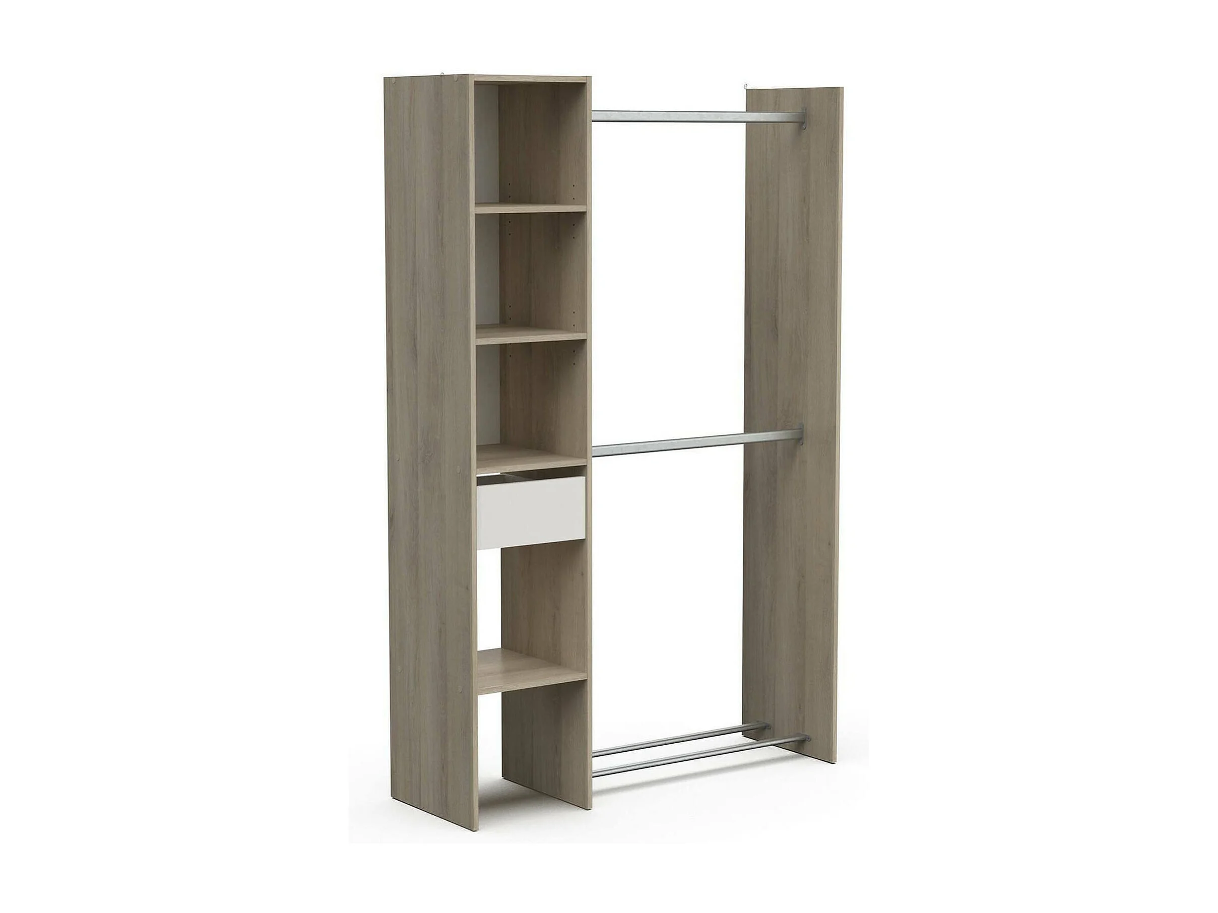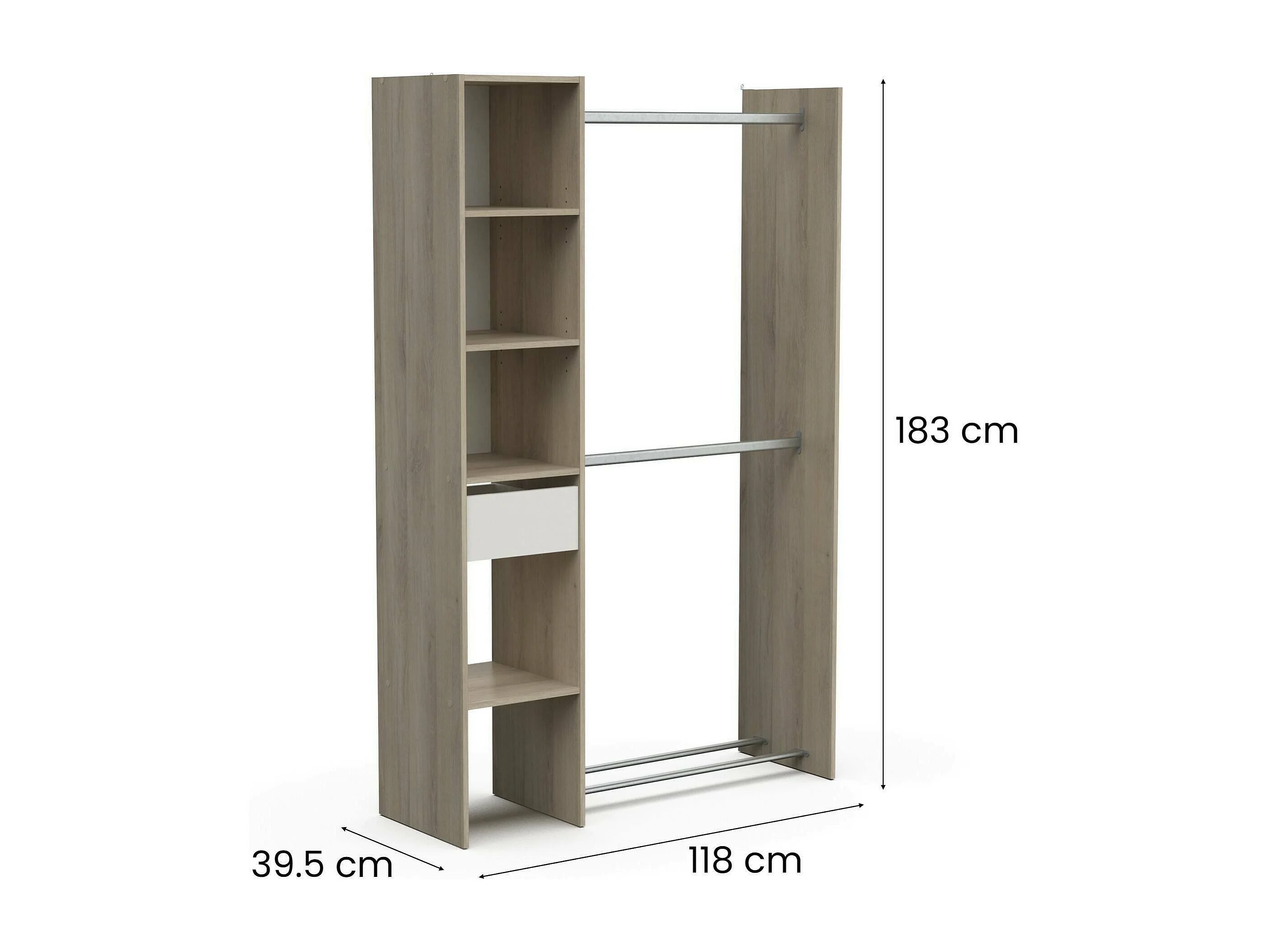 Dyamashit grote kledingkast, Slaapkamermeubel, Inloopkast, Kledingkast, 118x40 h183 cm, Eiken en mat wit