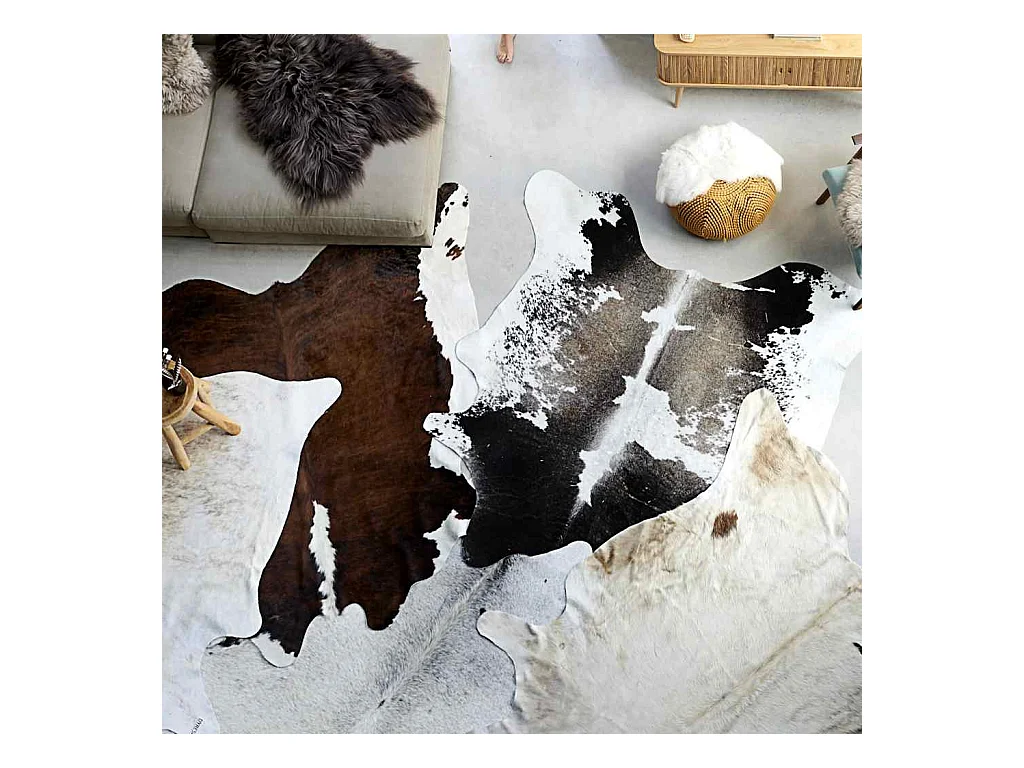 Echt koeienhuid vloerkleed zwart wit 180x220 cm