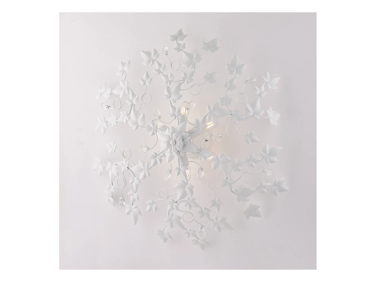 Edera Plafonnier en fer laqué blanc décoration effet shabby chic et strass cristal 6 lumières H.22 d.80 BL50-PL6-BCO