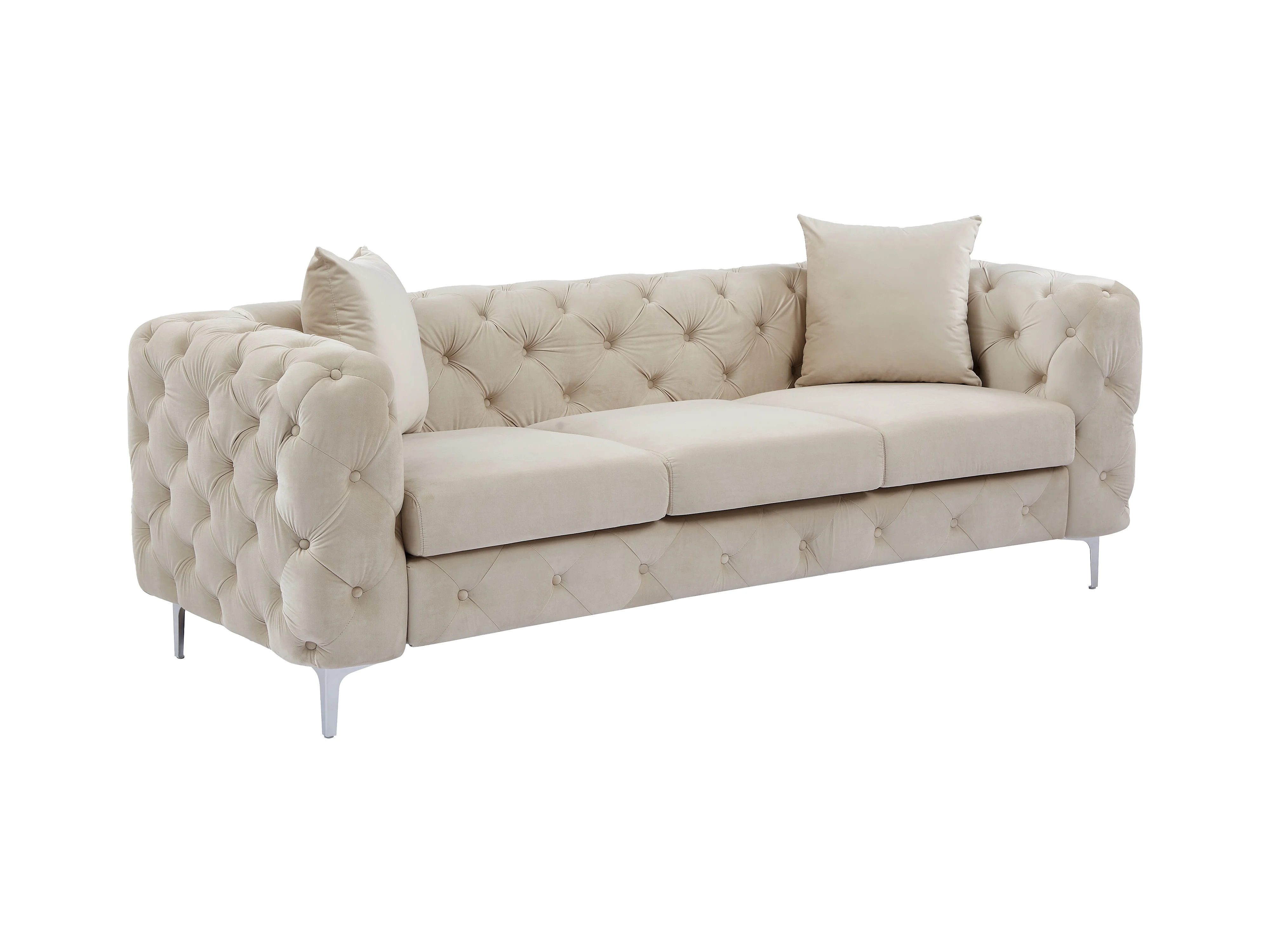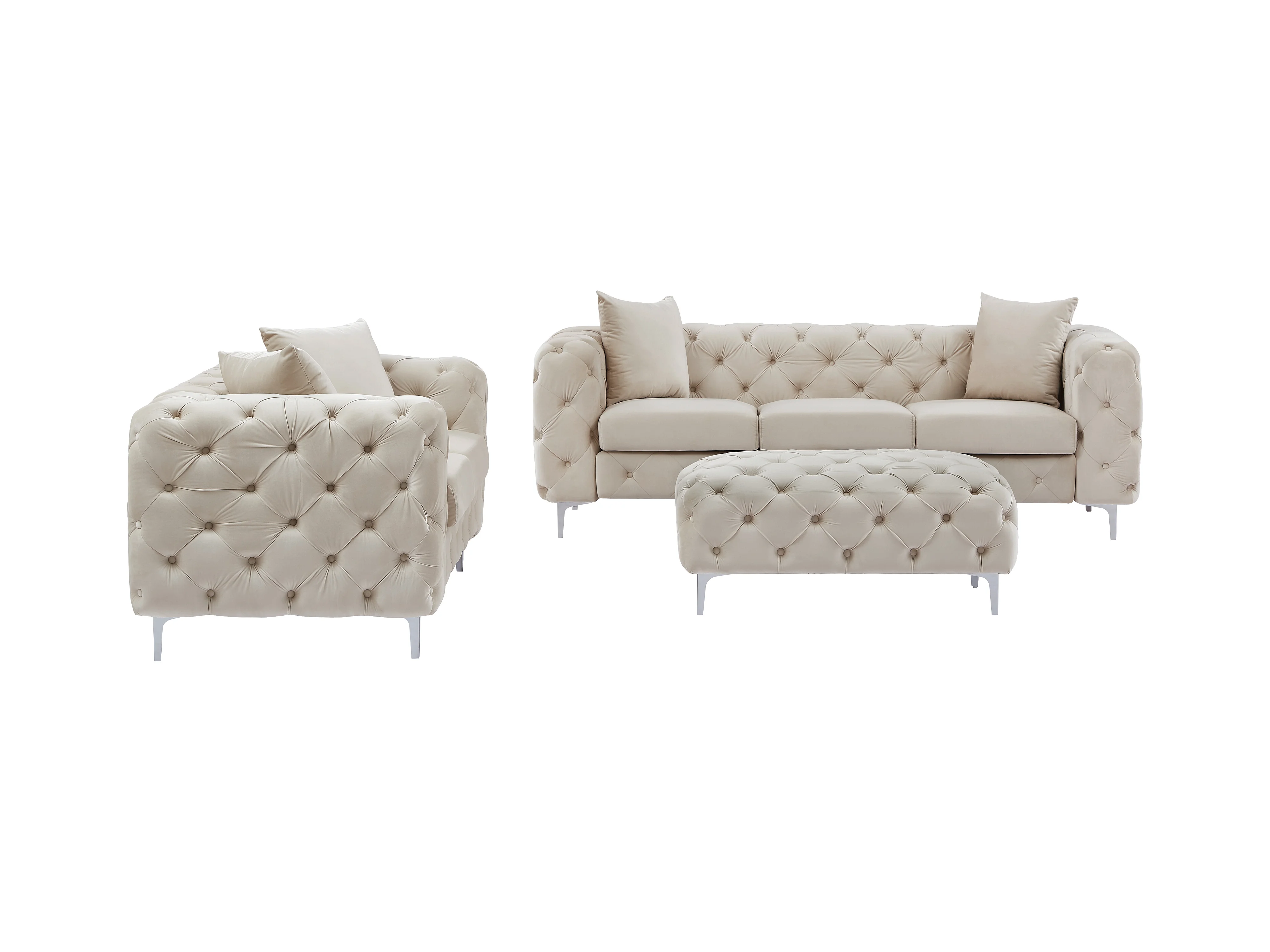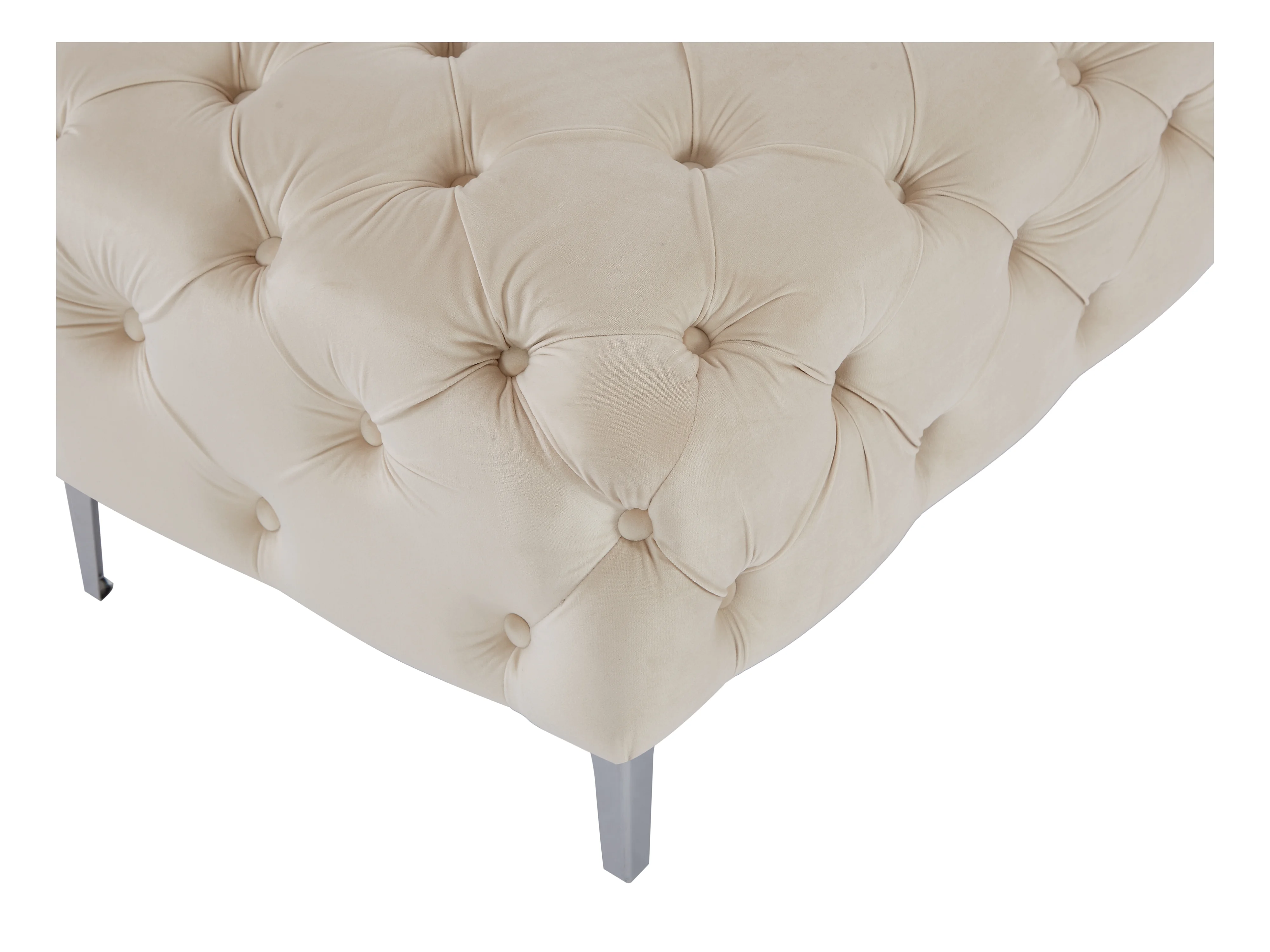 Drie- en tweezits-Chesterfield-bank en -poef van beige velours EDWINA
