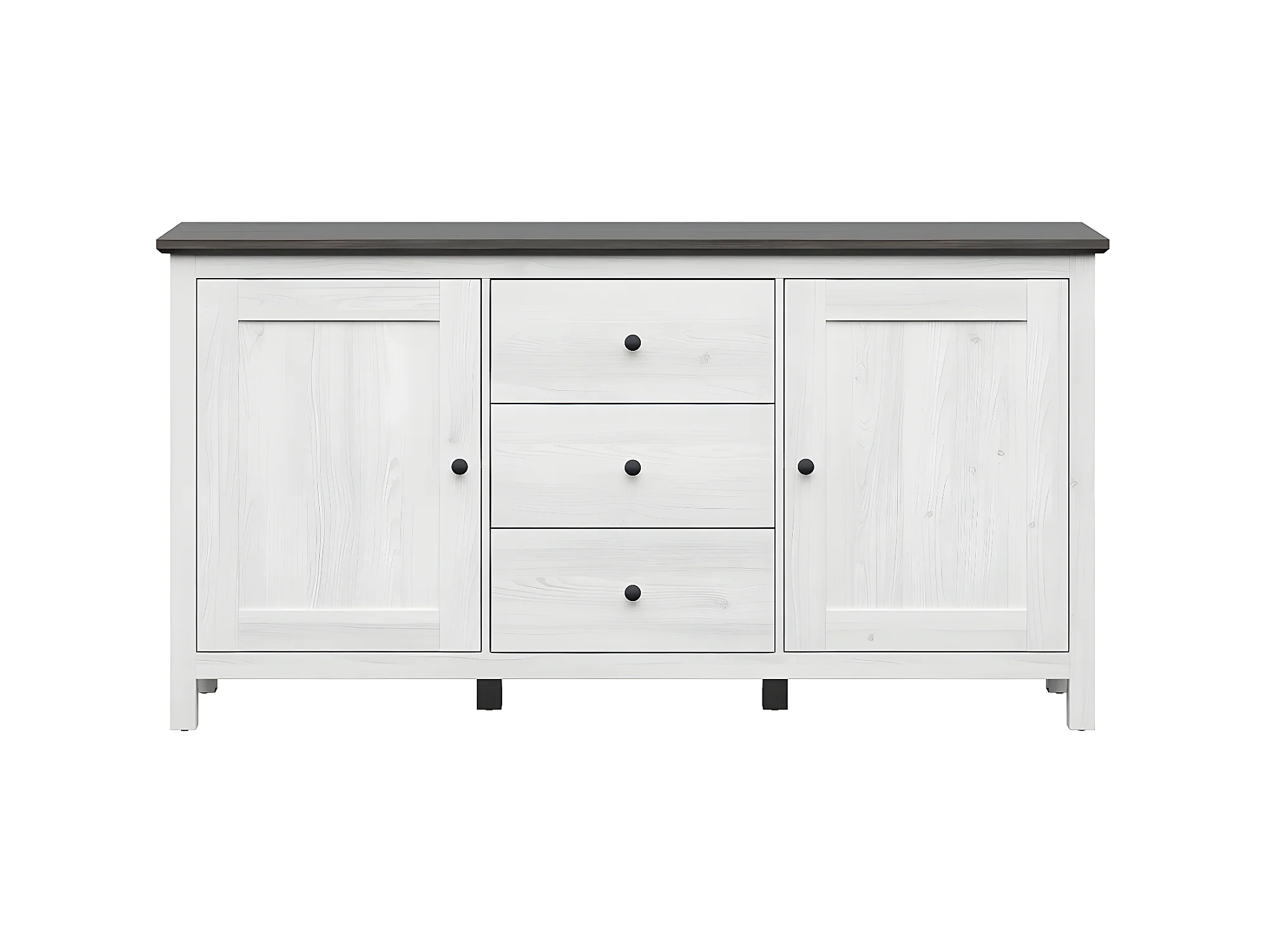 Eend Wit en donker houten 2-deurs dressoir met 3 laden