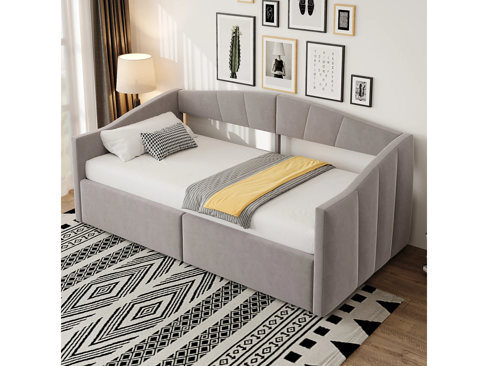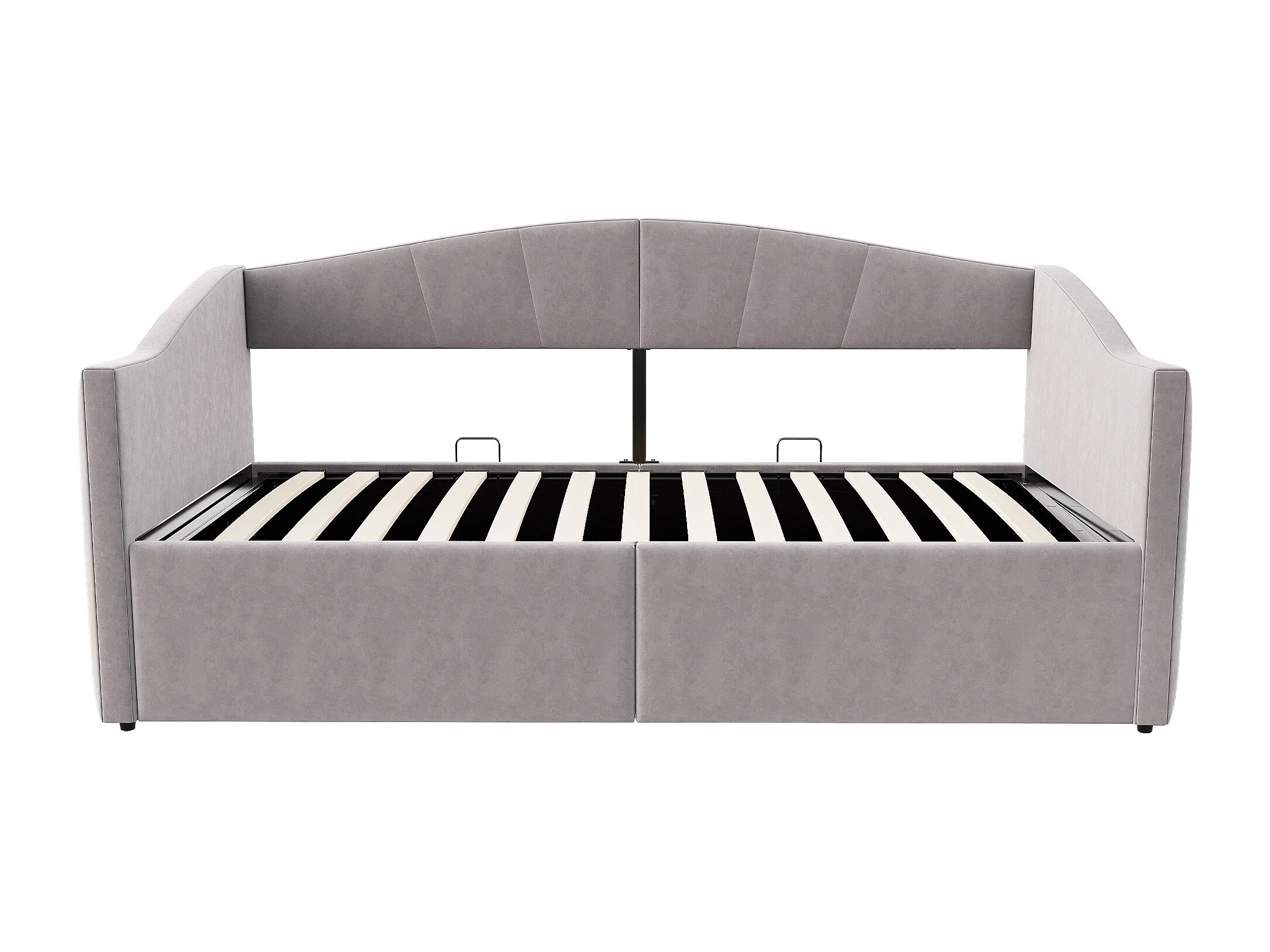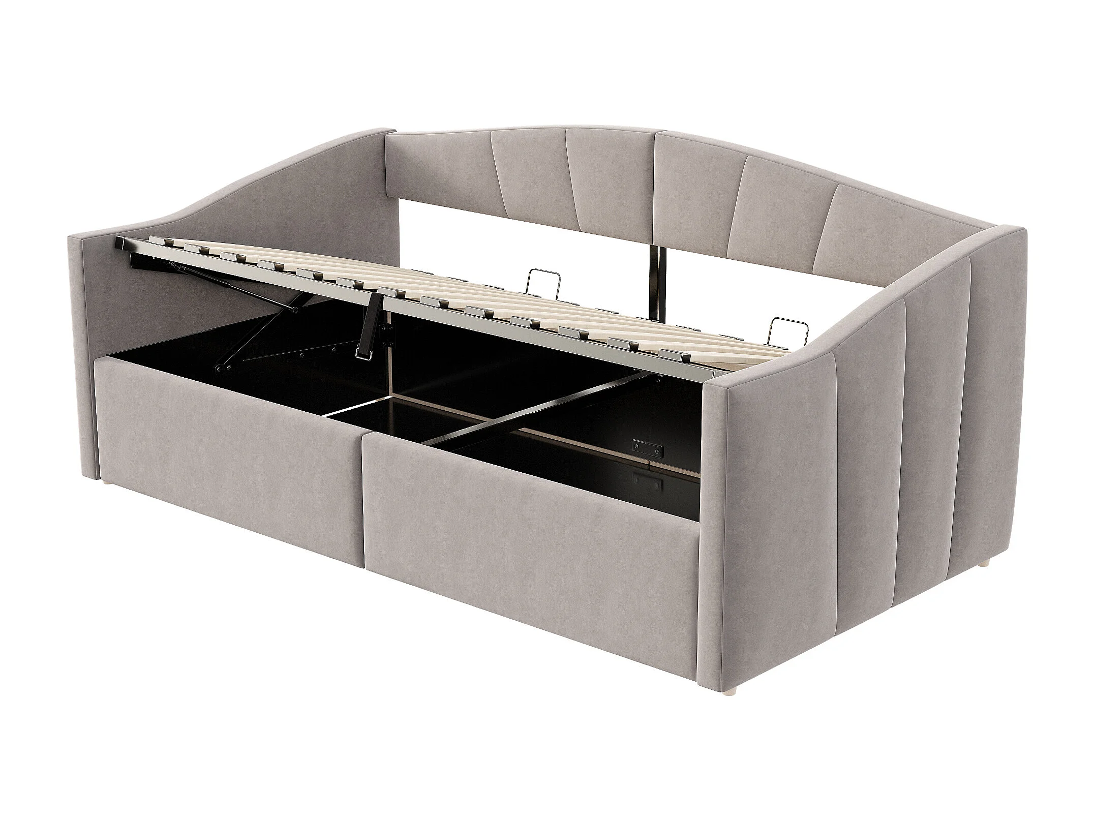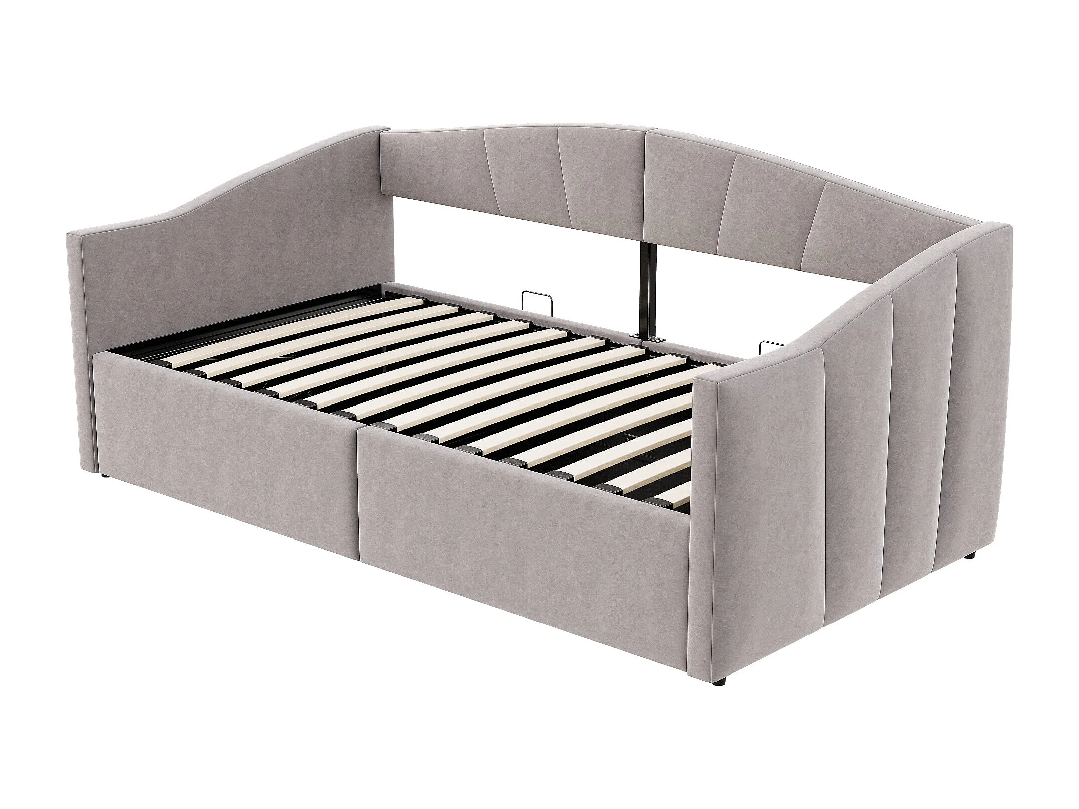 Eenpersoons opbergbed 90x200cm in lichtgrijs fluweel - Dagbed met armleuningen