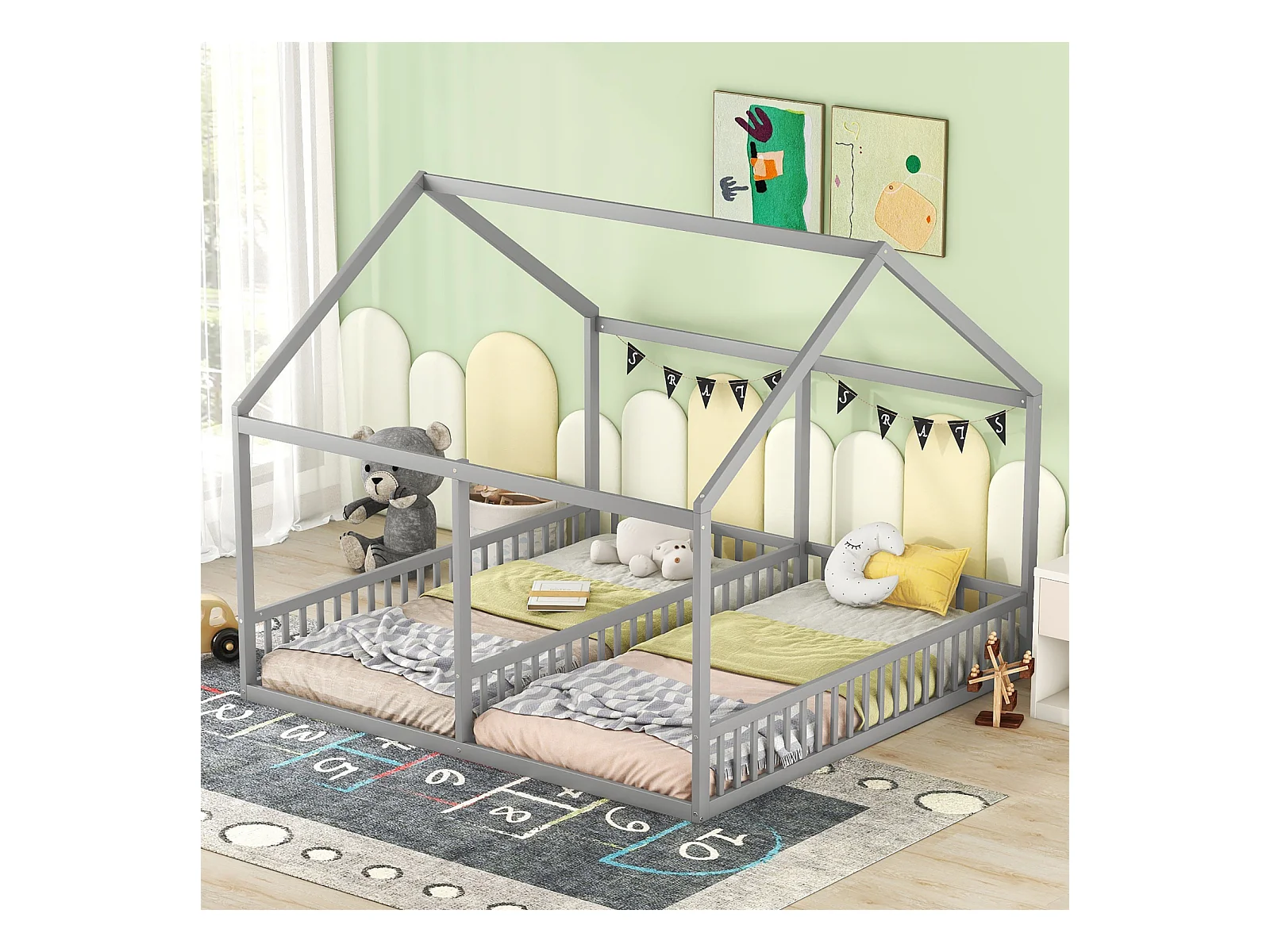 Eenpersoonsbed 90x200 cm grijs – Multifunctioneel laag bed voor thuis, 2-in-1 model