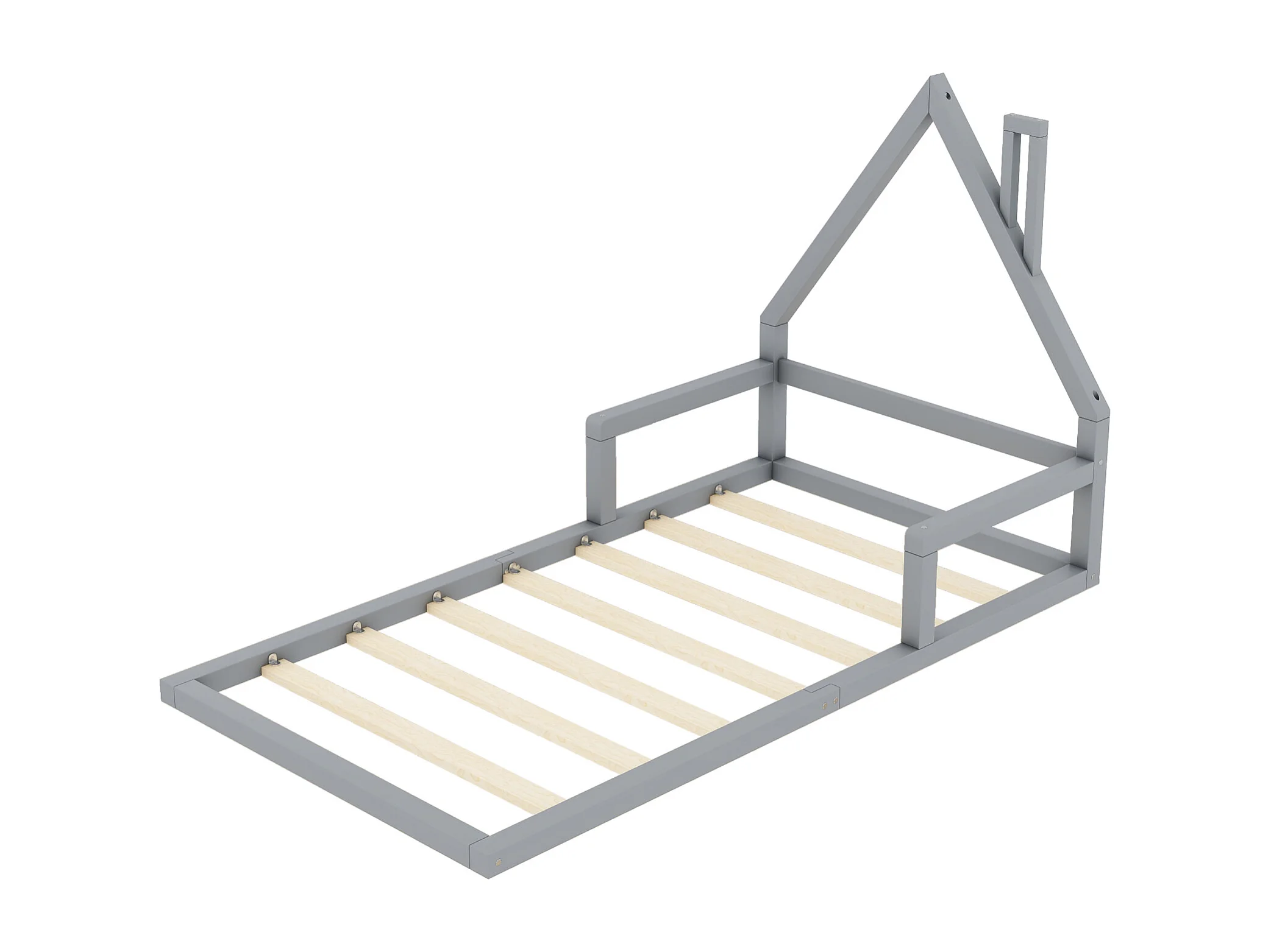 Kinderbed 90x200 cm met lattenbodem, in huisvorm, grijs - zonder matras