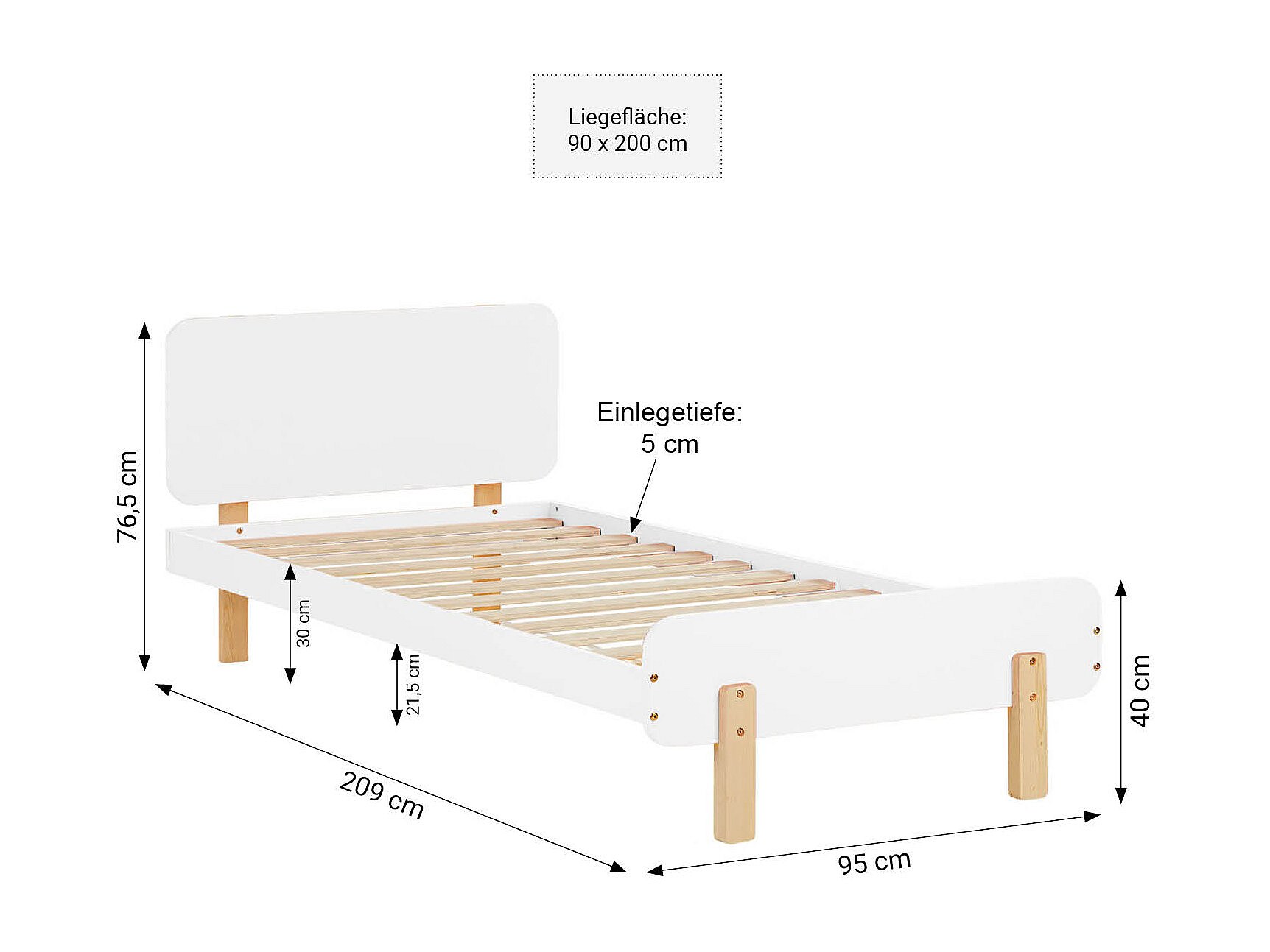 Eenpersoonsbed 90x200 cm wit