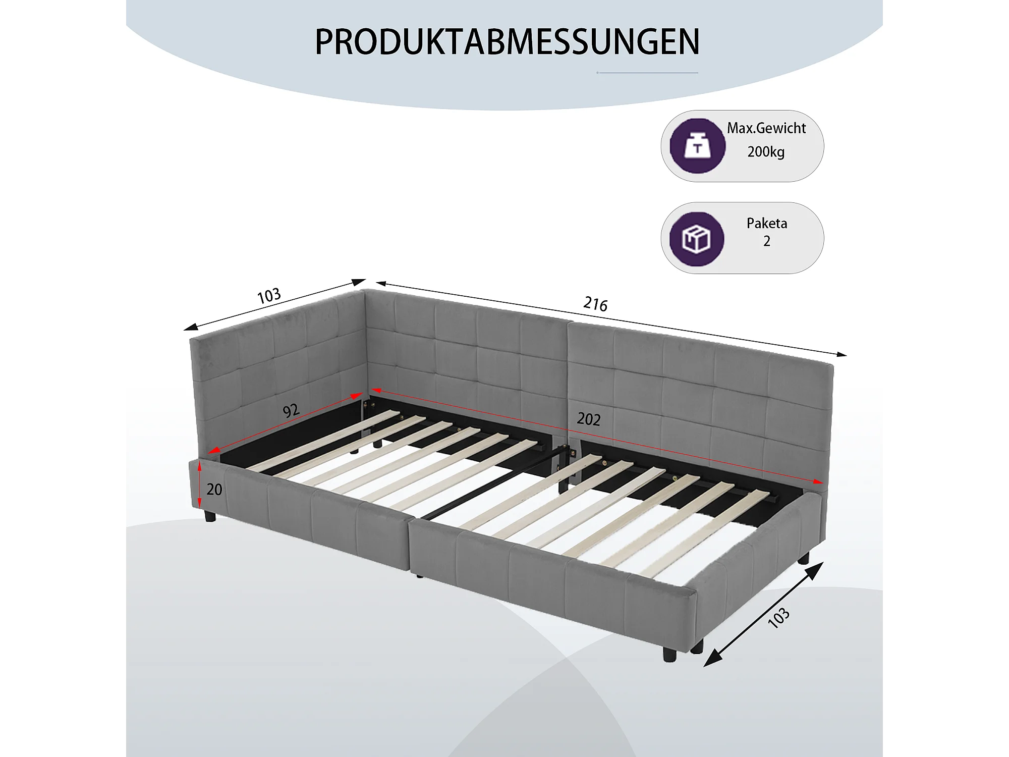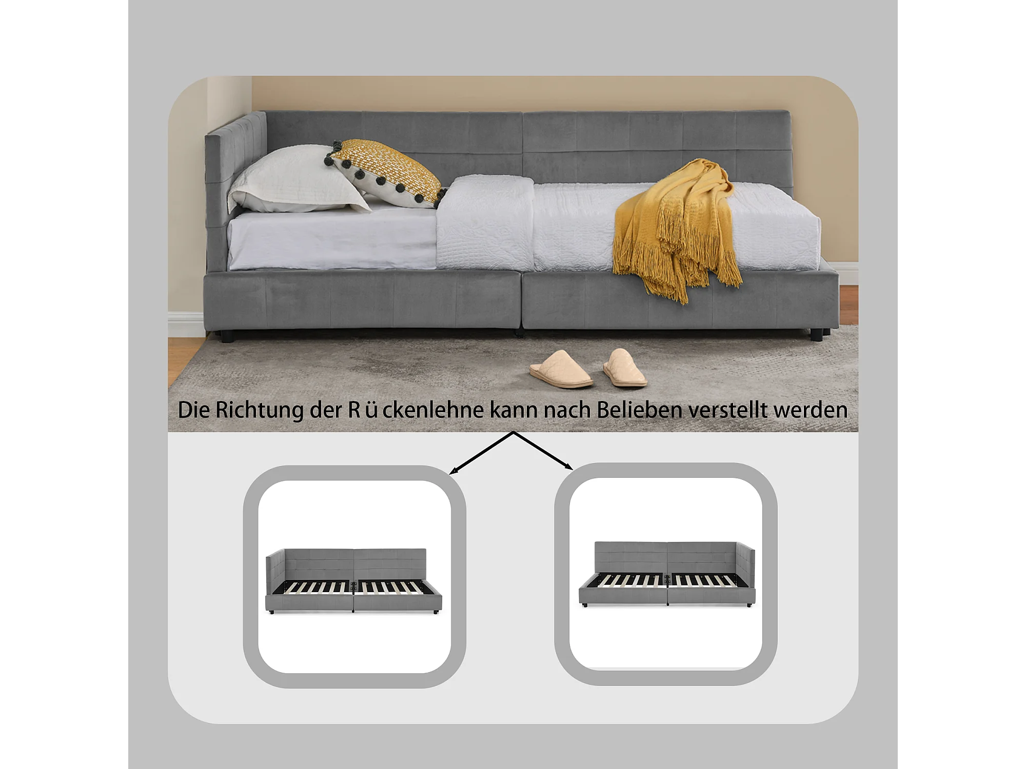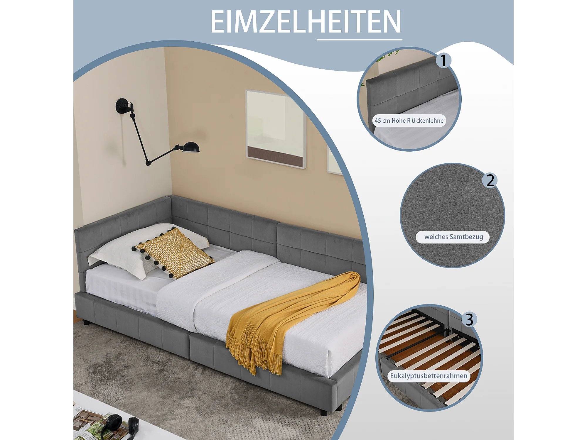 Eenpersoonsbed 90x200 cm, zacht fluwelen design, hoog hoofdeinde, eucalyptus frame, donkergrijs (90x200x70 cm)