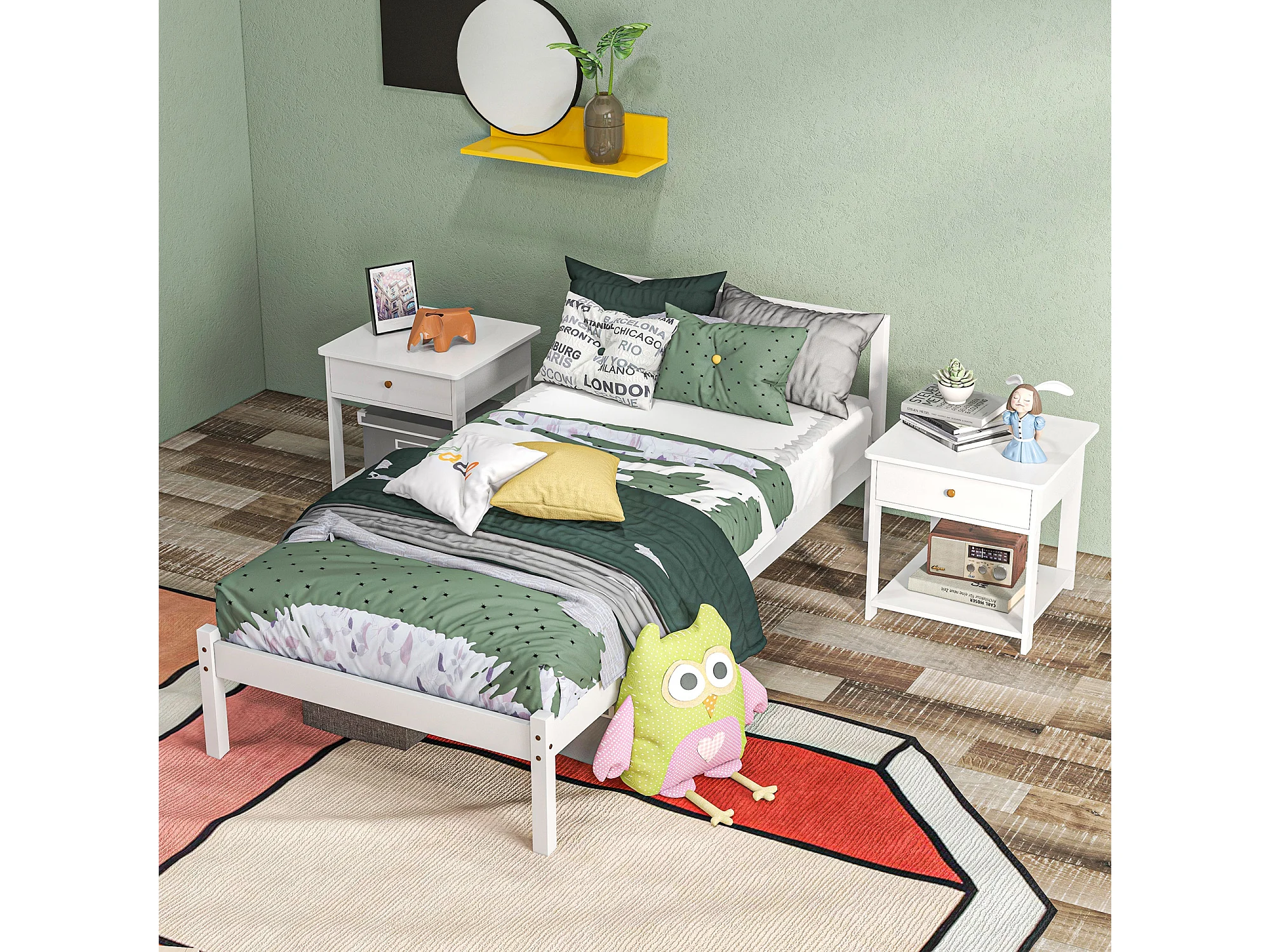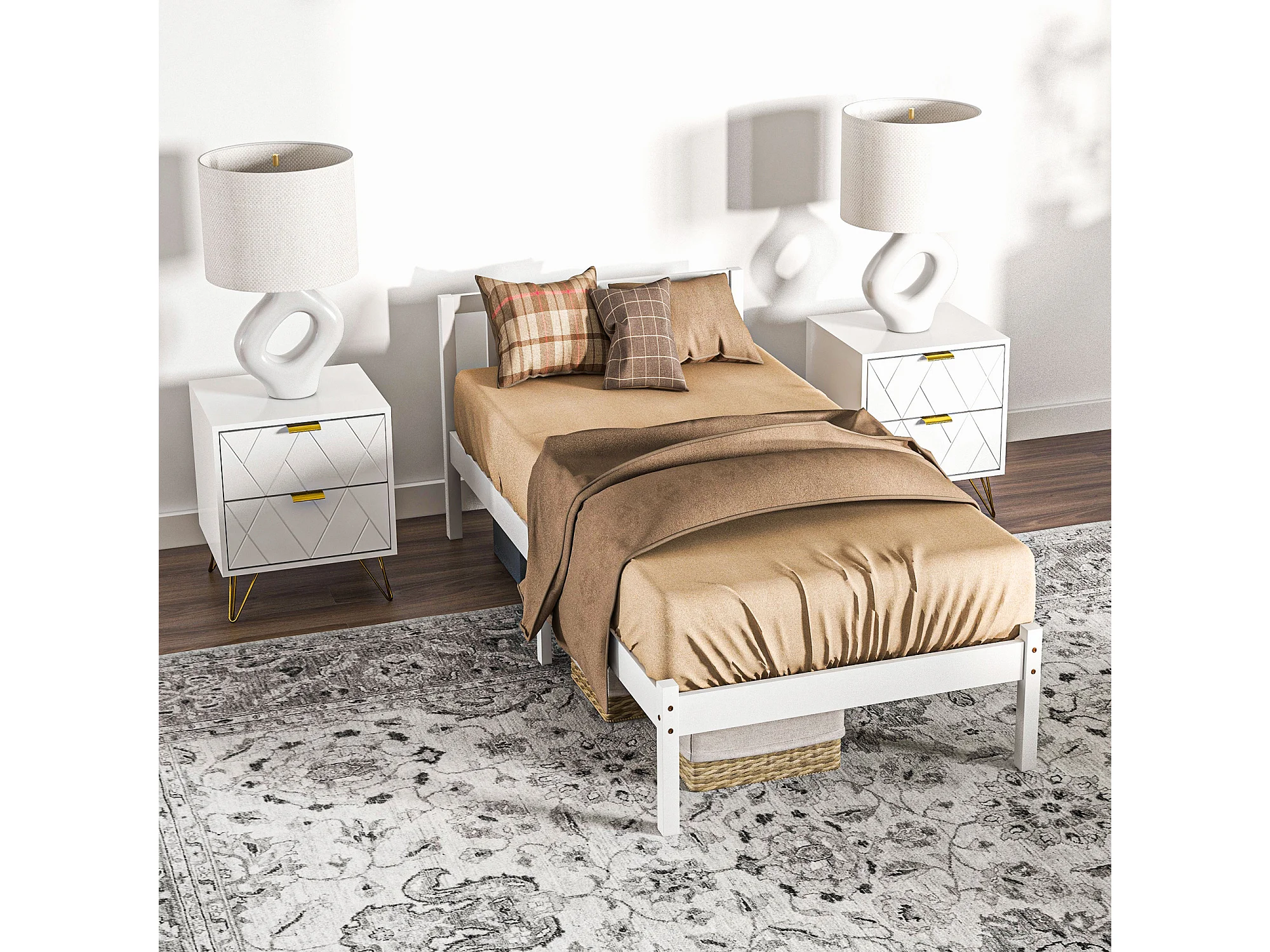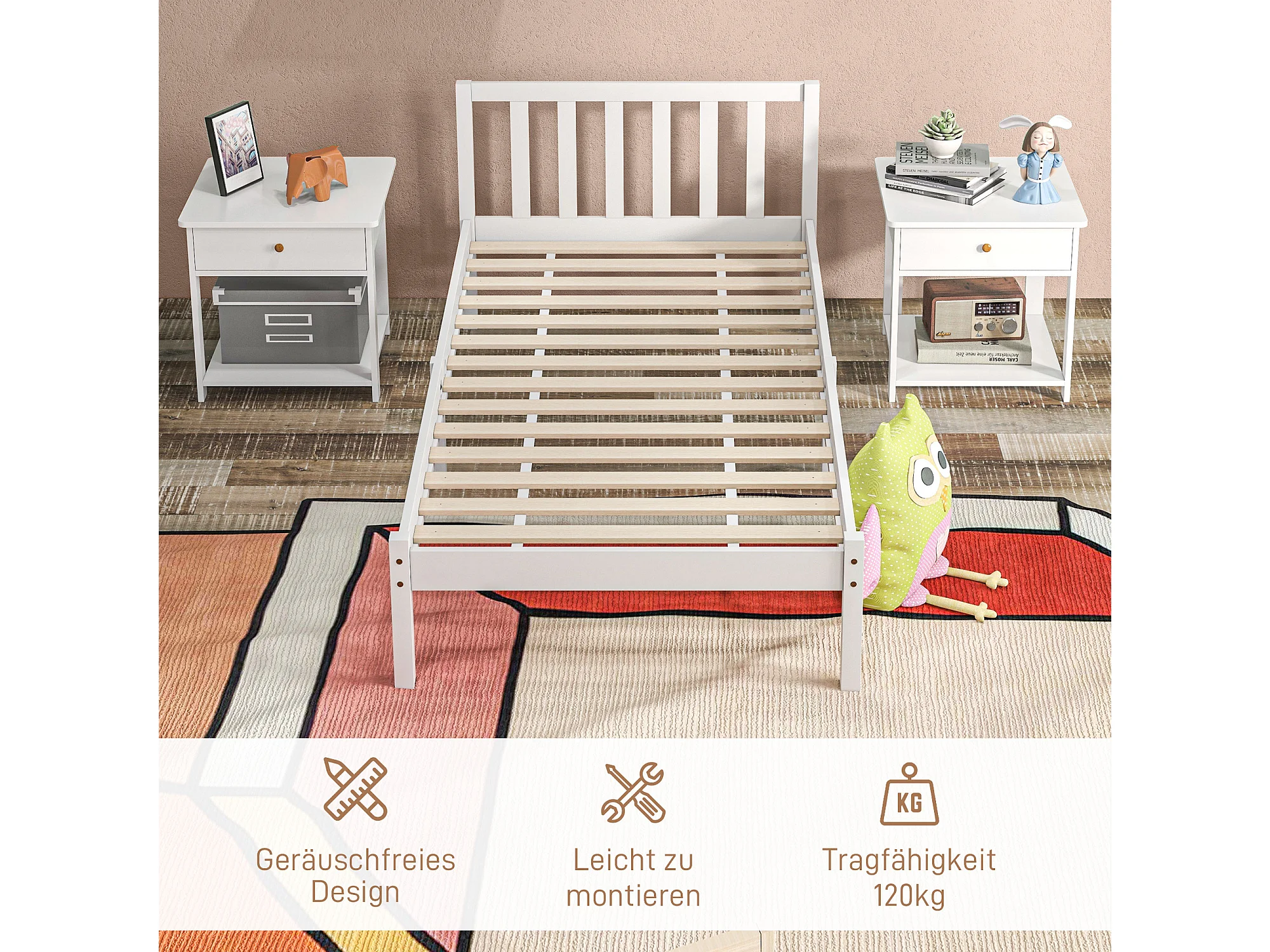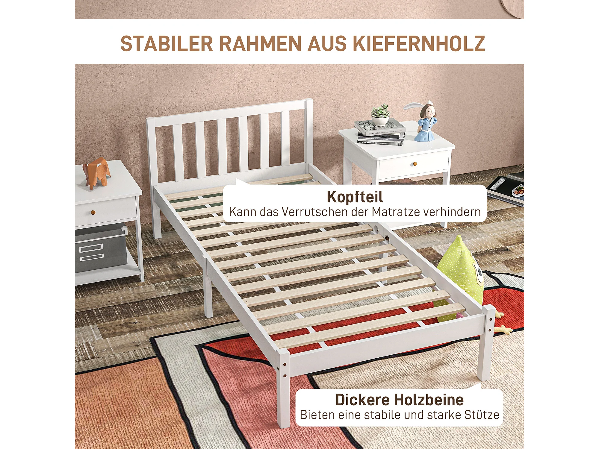 Eenpersoonsbed met hoofdbord, massief grenen, wit (208x96x70 cm)