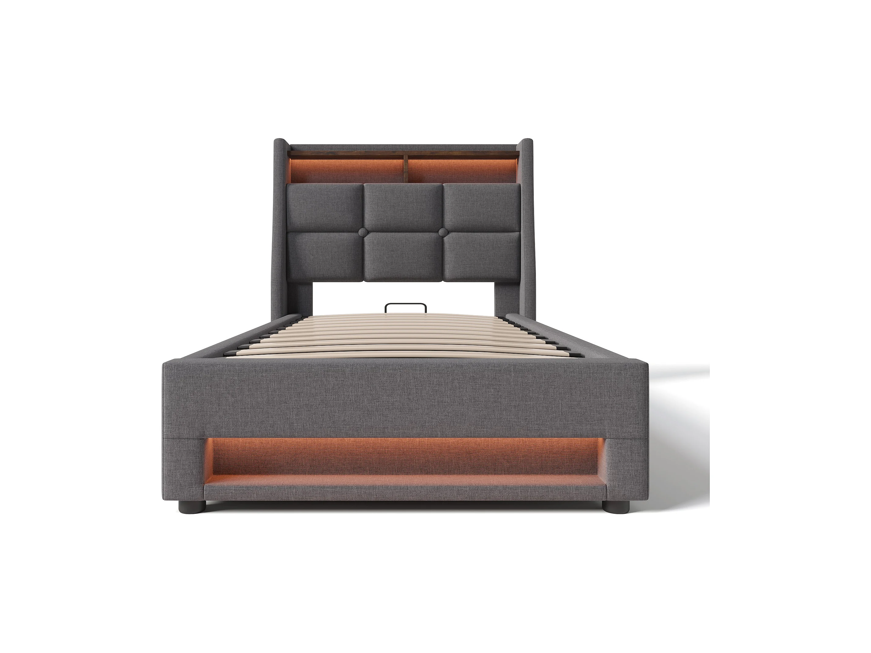 Gestoffeerd bed 90 x 200 cm, met afstandsbediening LED, USB en Type-C, kleine opbergvakken, zonder hoofdeinde, hydraulische opbergfunctie (203x91,5x32 cm)