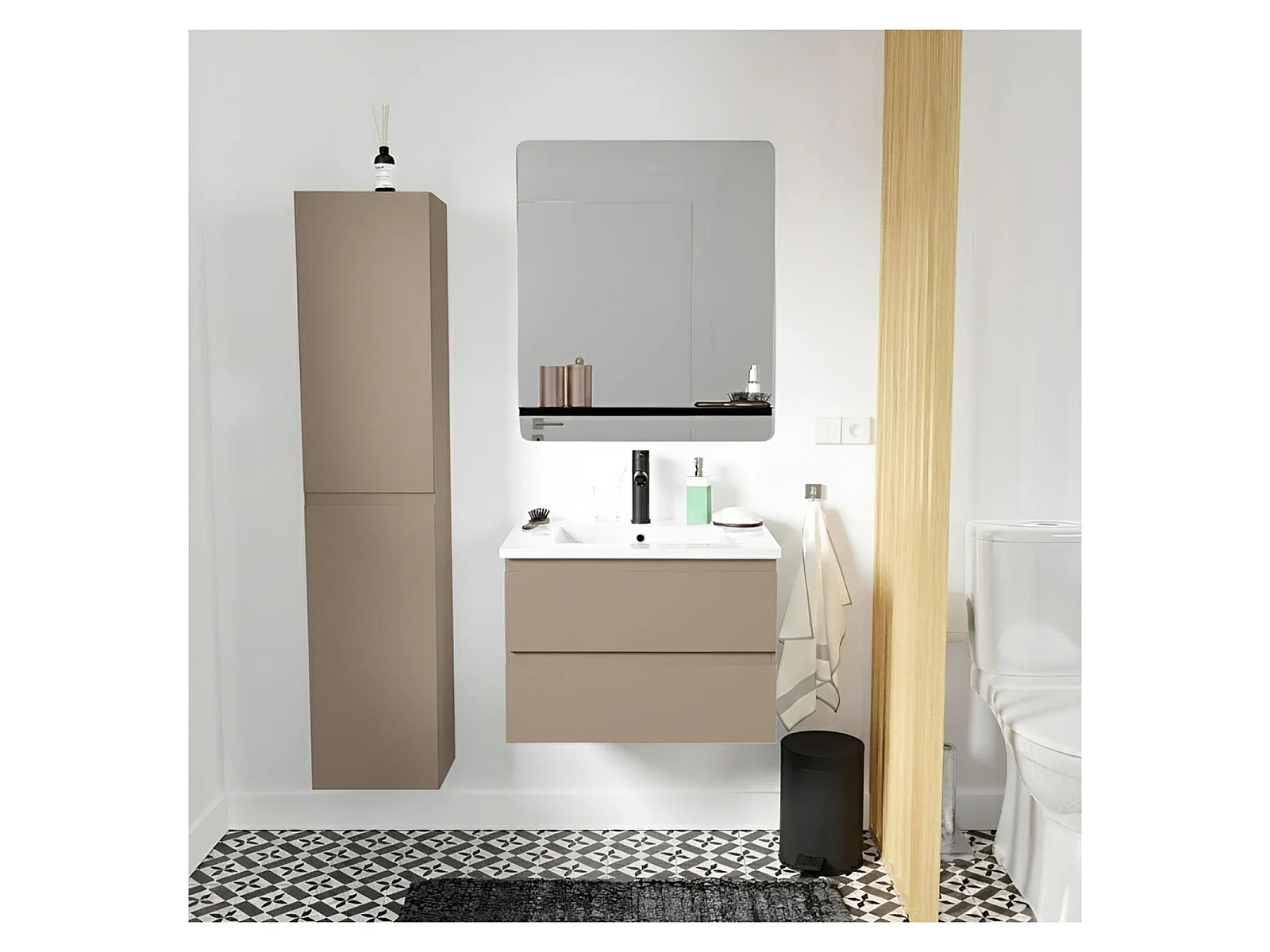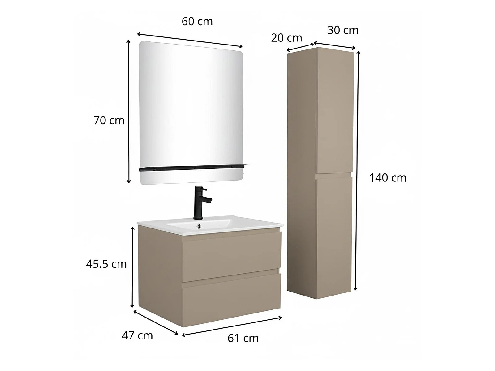Eenvoudig meubel + kraan + spiegel + SORRENTO-kolom